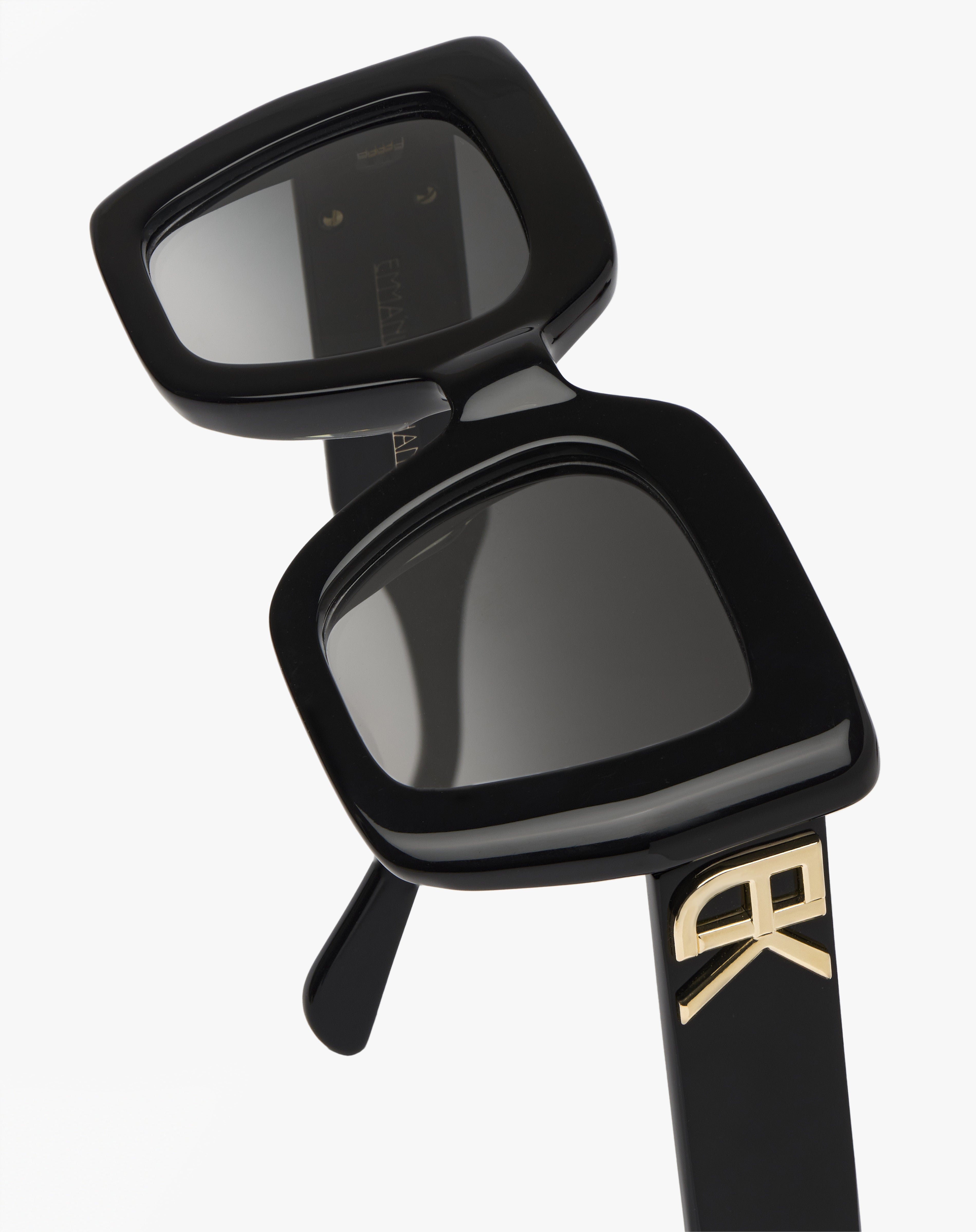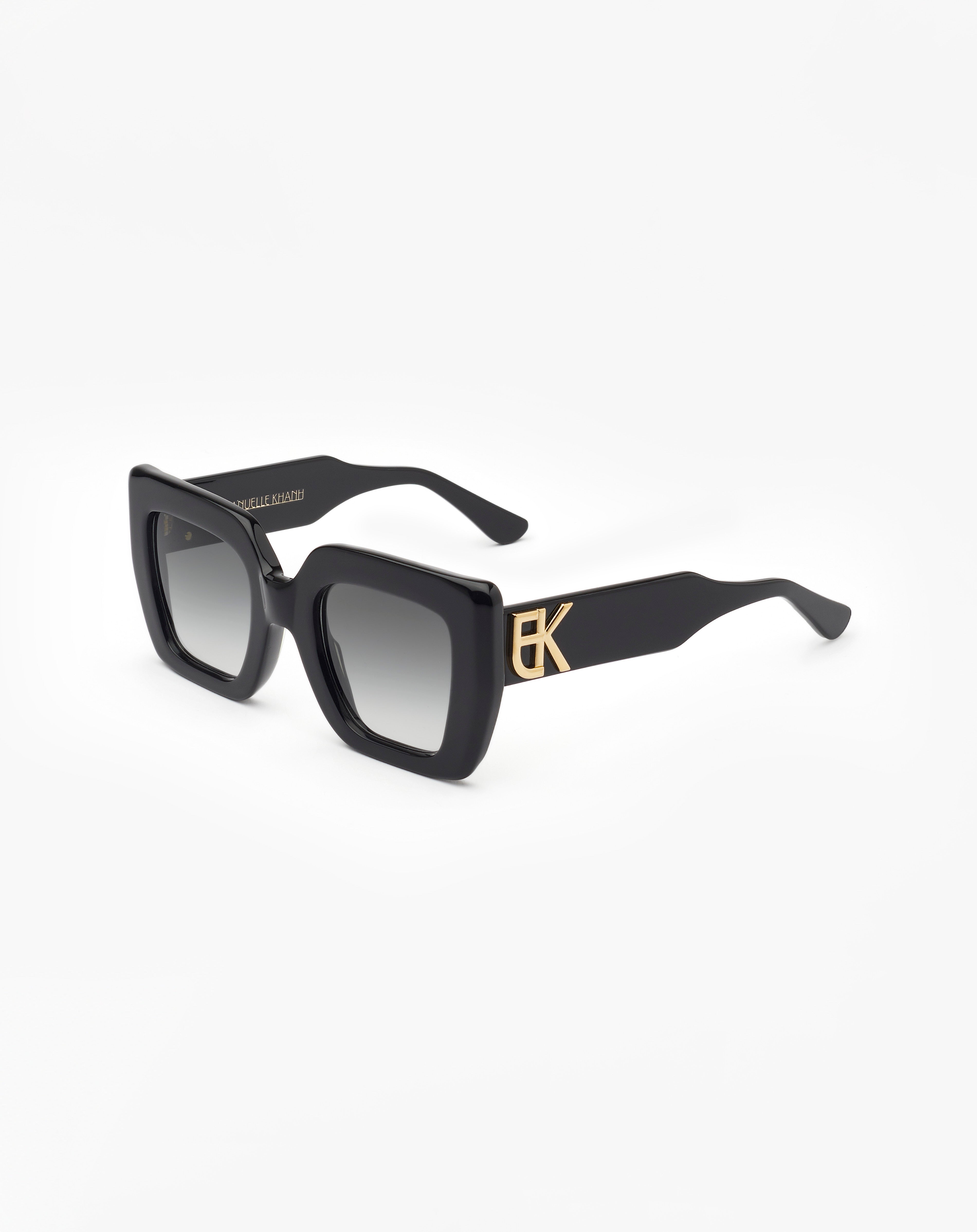 Monture en acétate carrée, fabriquée main en France d'un savoir-faire lunetier authentique. Ligne Initiales Pièce logo monogramme 3D XL plaquée or 18 carats. Les acétates et les verres sont fabriqués en France ou en Italie, selon le coloris.