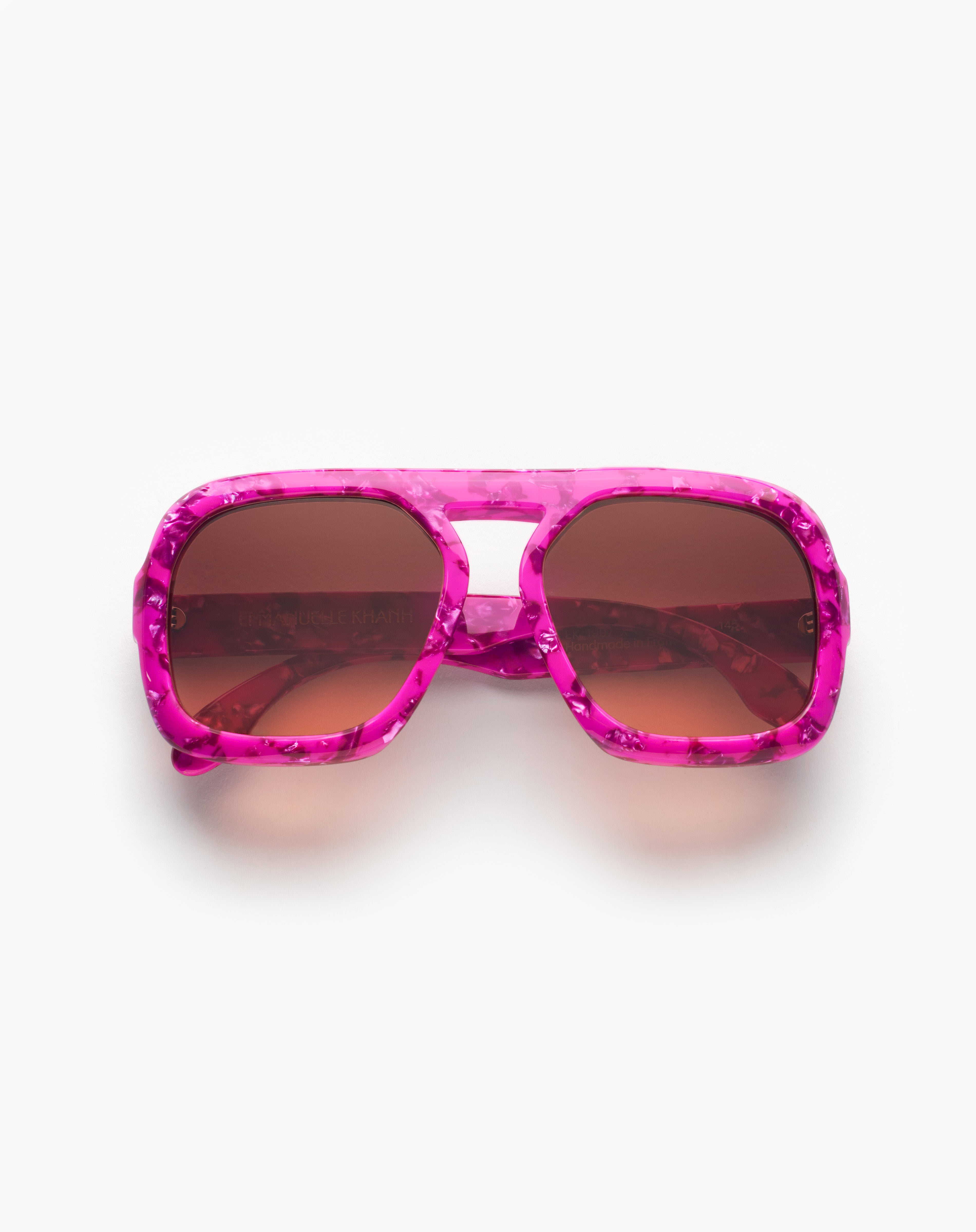 Lunettes XXL aux lignes joyeusement sportives et vintage, le modèle EK 1997 marque la rencontre entre la femme et l'homme. Combinant des courbes oversize et arrondies, il offre un look à la fois affirmé et confortable. Les couleurs pleines, les surfaces laquées ultra-brillantes contrastent avec les verres joyeusement colorés ou subtilement dégradés. Les volumes sculptés dans l'acétate créent un caractère nouveau et hybride, résolument en phase avec l'époque. Conçues et fabriquées en France dans le respect du savoir-faire authentique de la lunetterie.