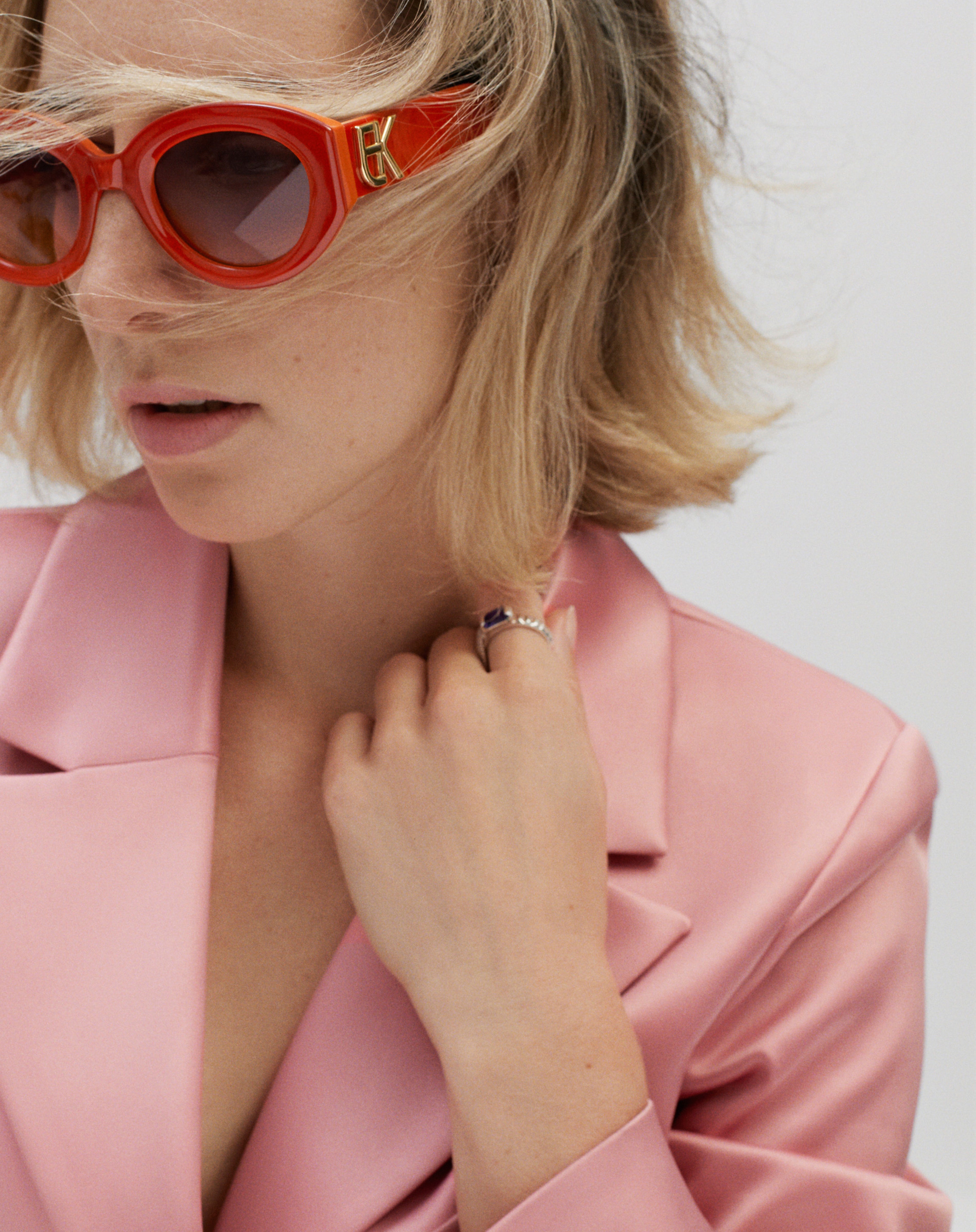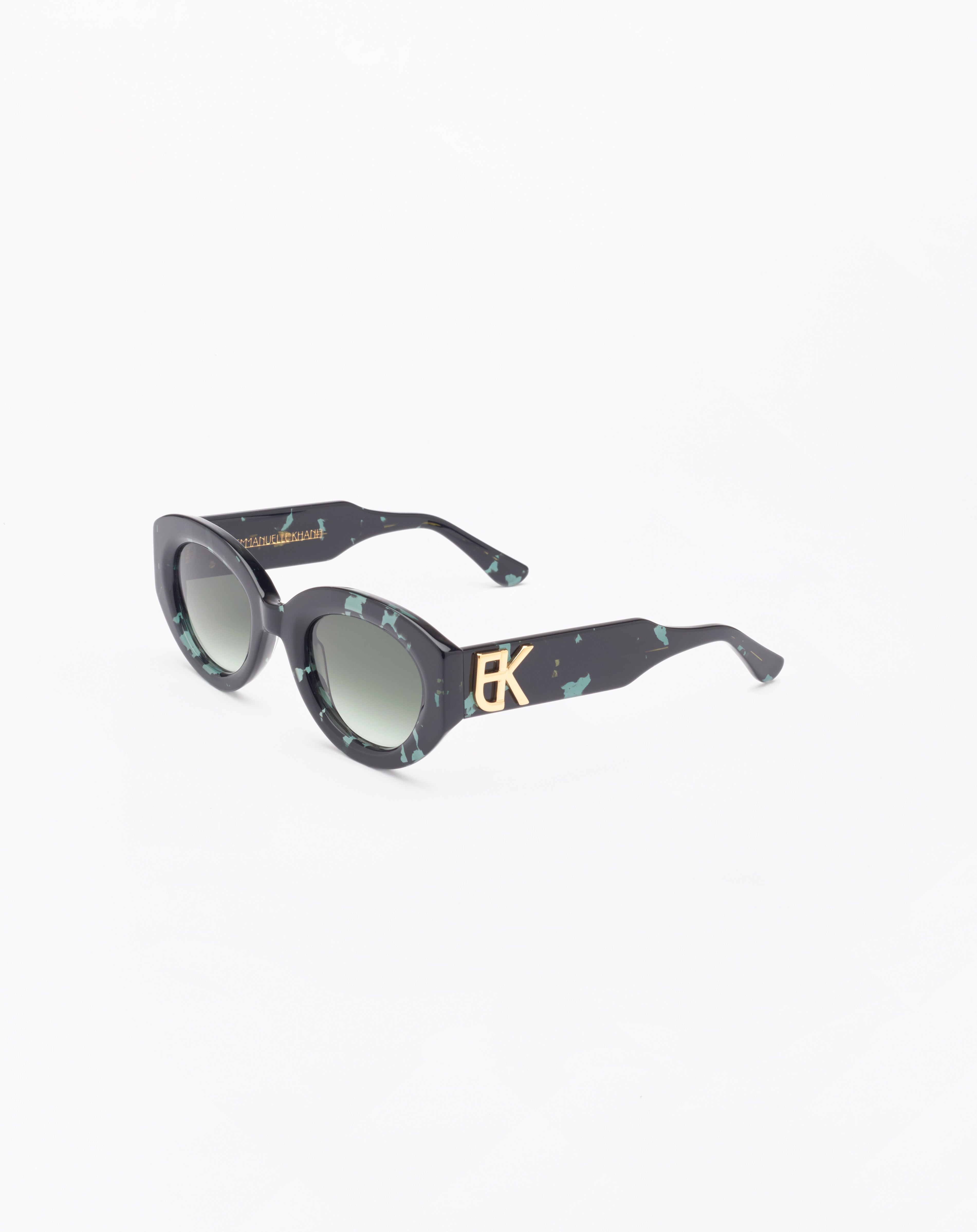 Initiales line - Oval acetate frame, handmade in France with an authentic eyewear know-how. 3D XL monogram logo piece, 18-carat gold plated. Acetates and lenses are made in France or Italy, depending on the colour.