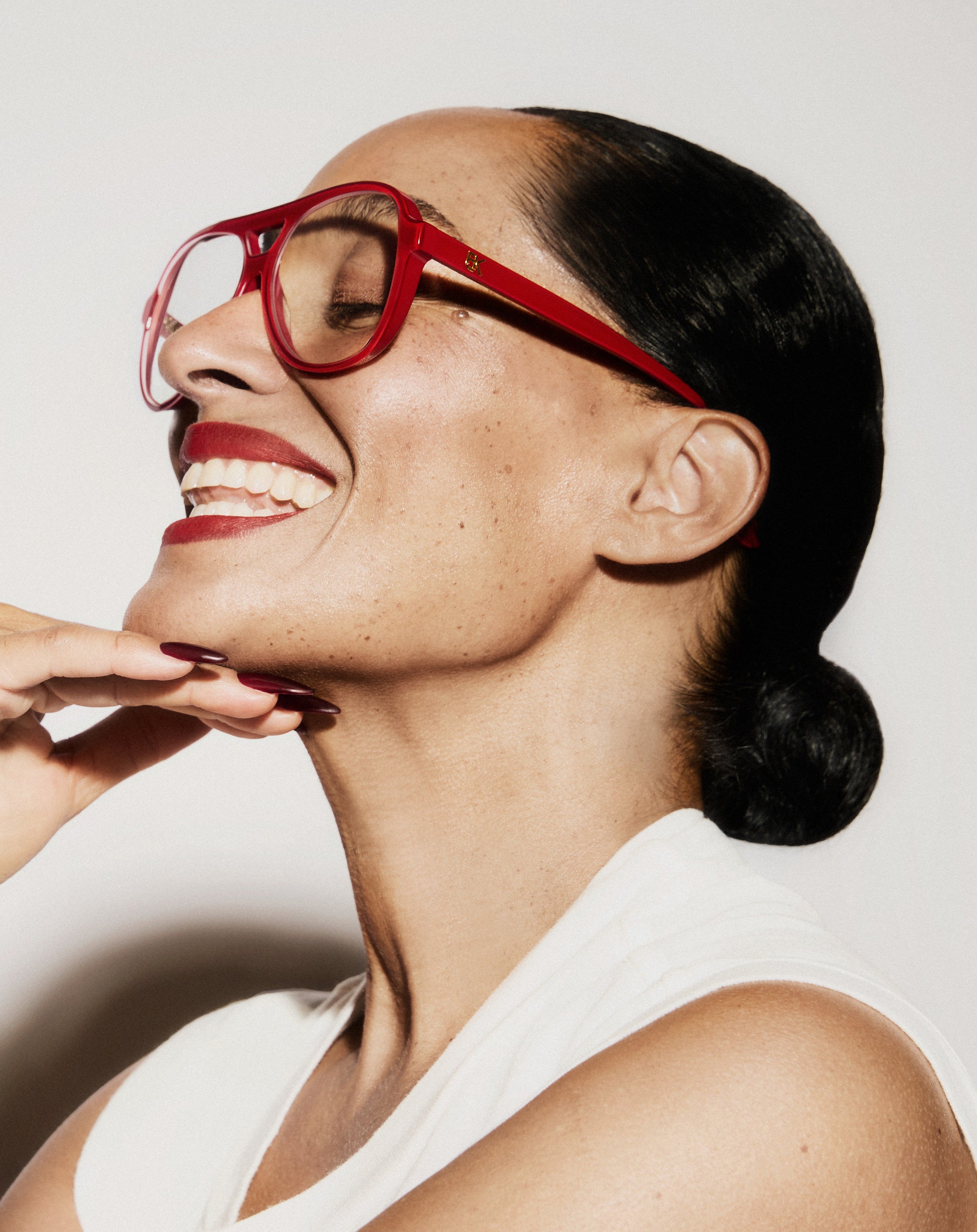 “These are a revamp of a vintage frame that is the EK interpretation of an aviator. I love an aviator because I think they look good on everybody. For the colors, we went vibrant and joyful...just like me.” - Tracee Ellis Ross