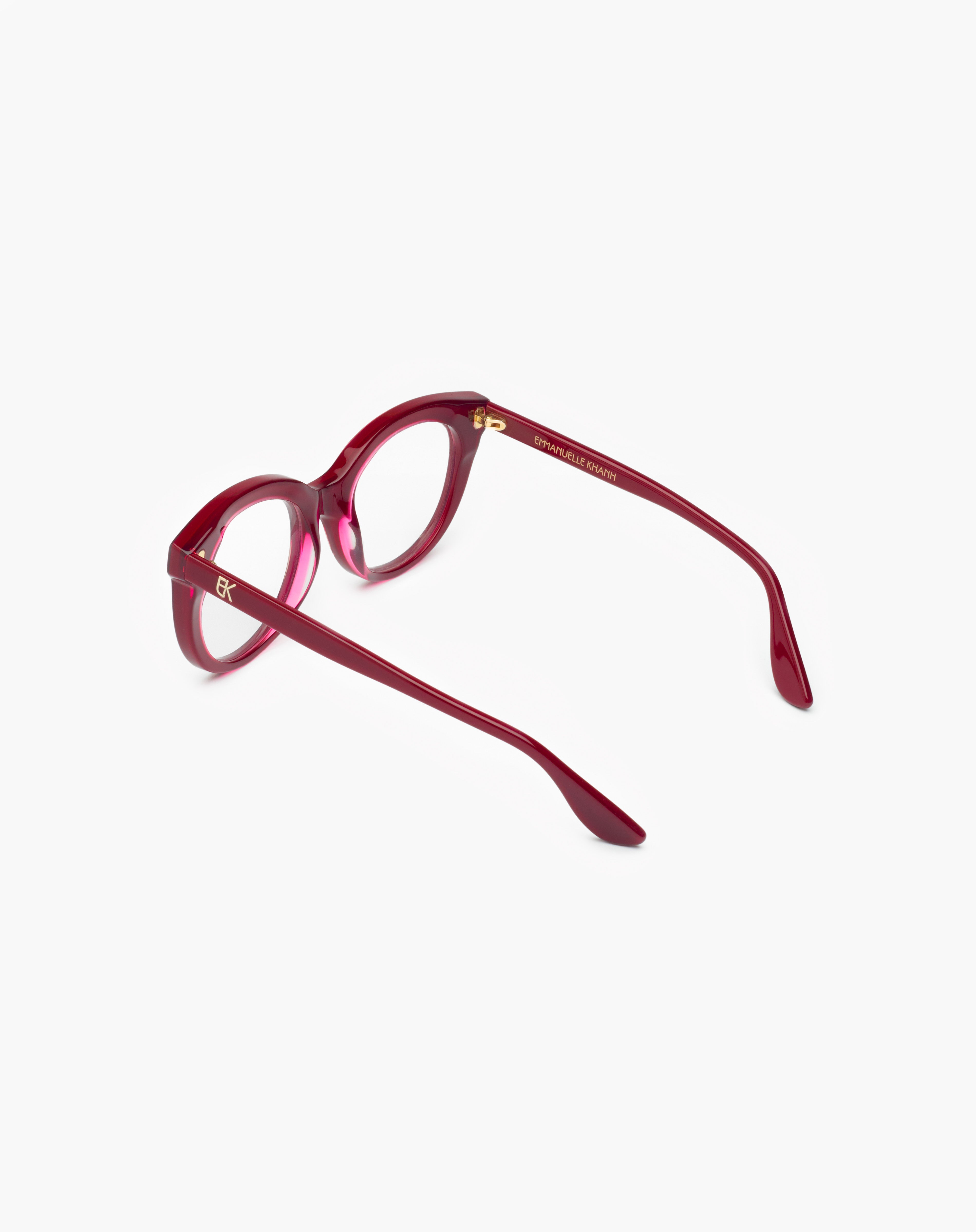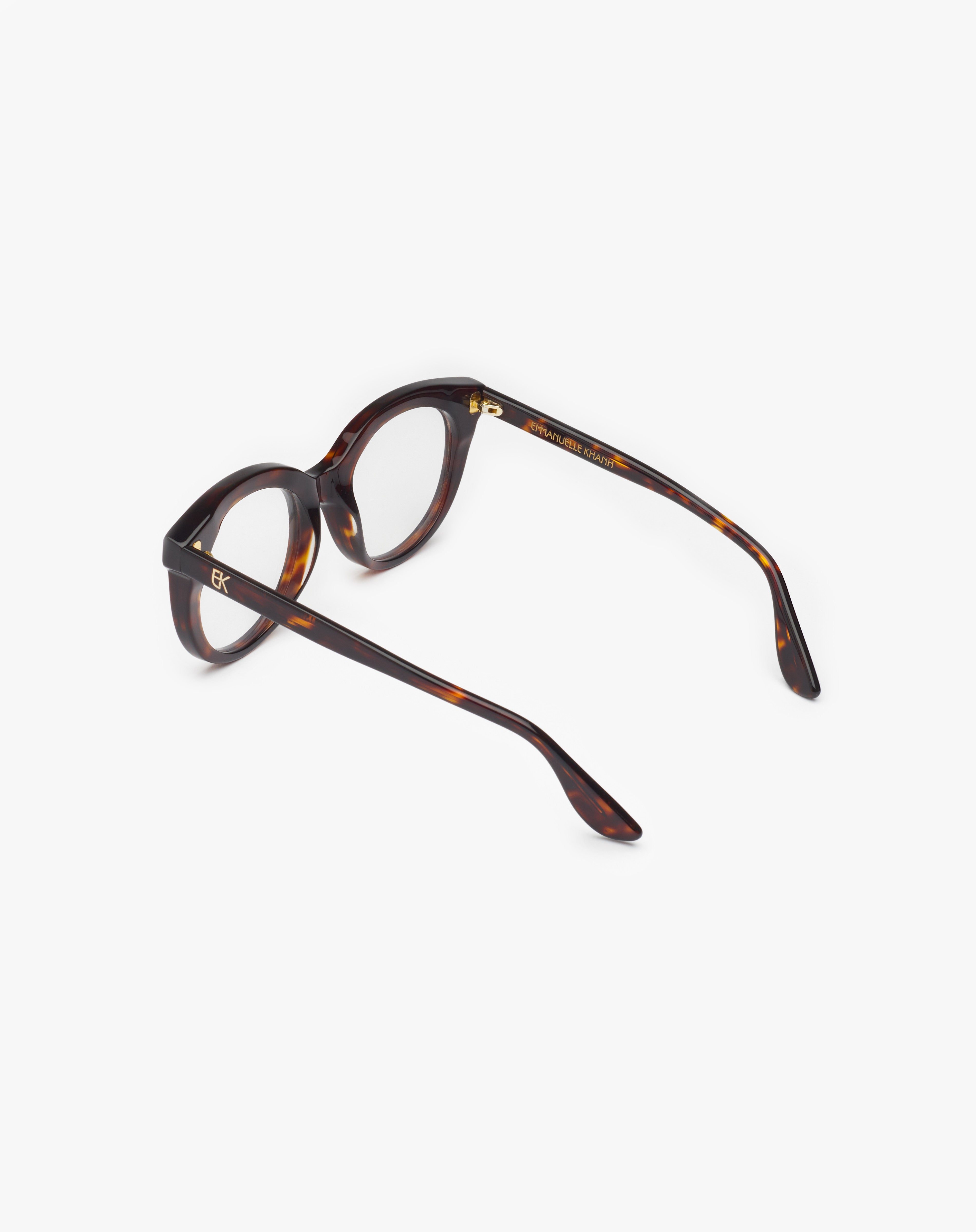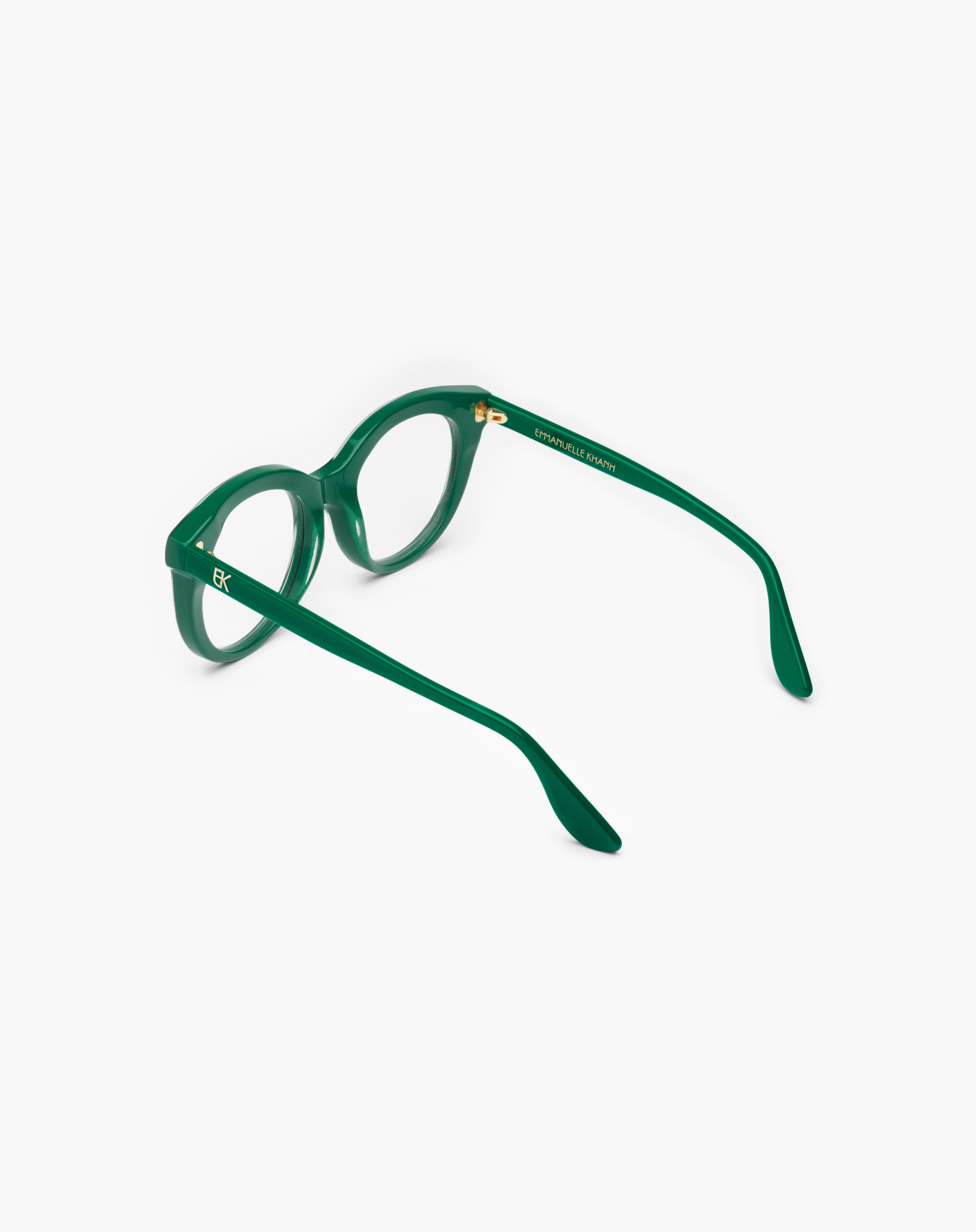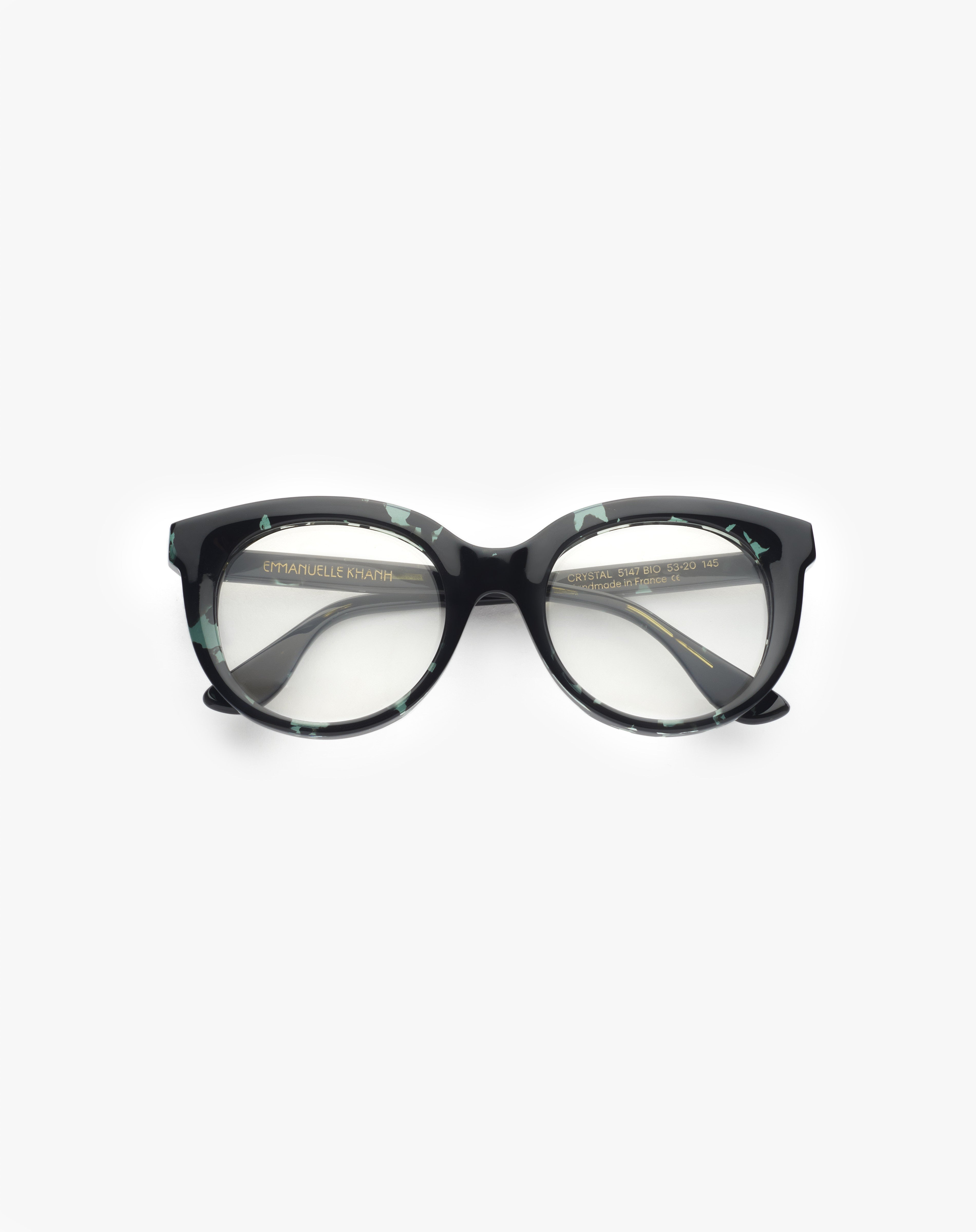 Quotidiennes Line Round acetate frame, handmade in France with an authentic eyewear know-how. Monogram logo piece in gilded metal placed under resin. Acetates and lenses are made in France or Italy, depending on the colour.