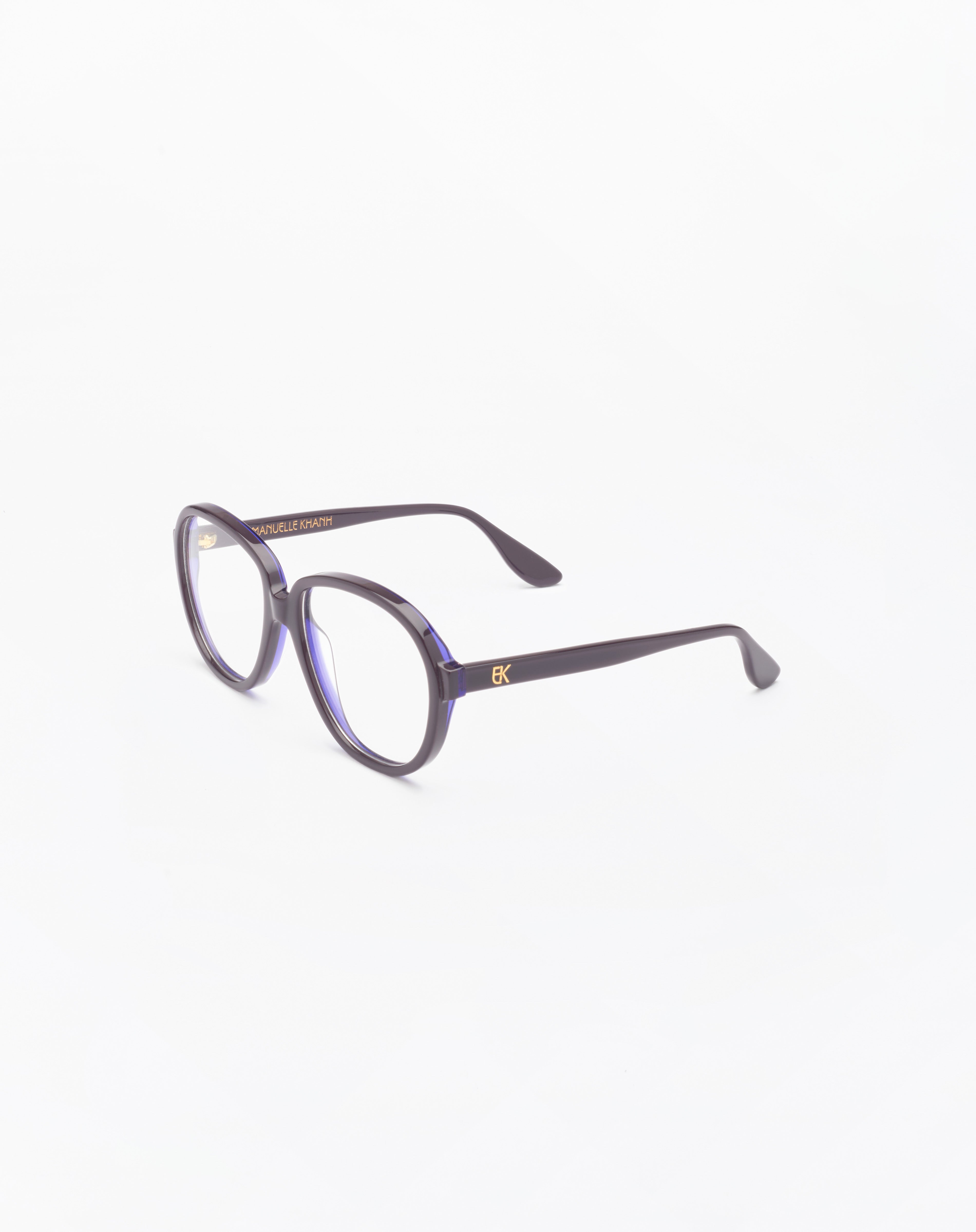 Quotidiennes line - Round acetate frame, handmade in France with an authentic eyewear know-how. Monogram logo piece in gilded metal placed under resin. Acetates are made in France or Italy, depending on the colour.