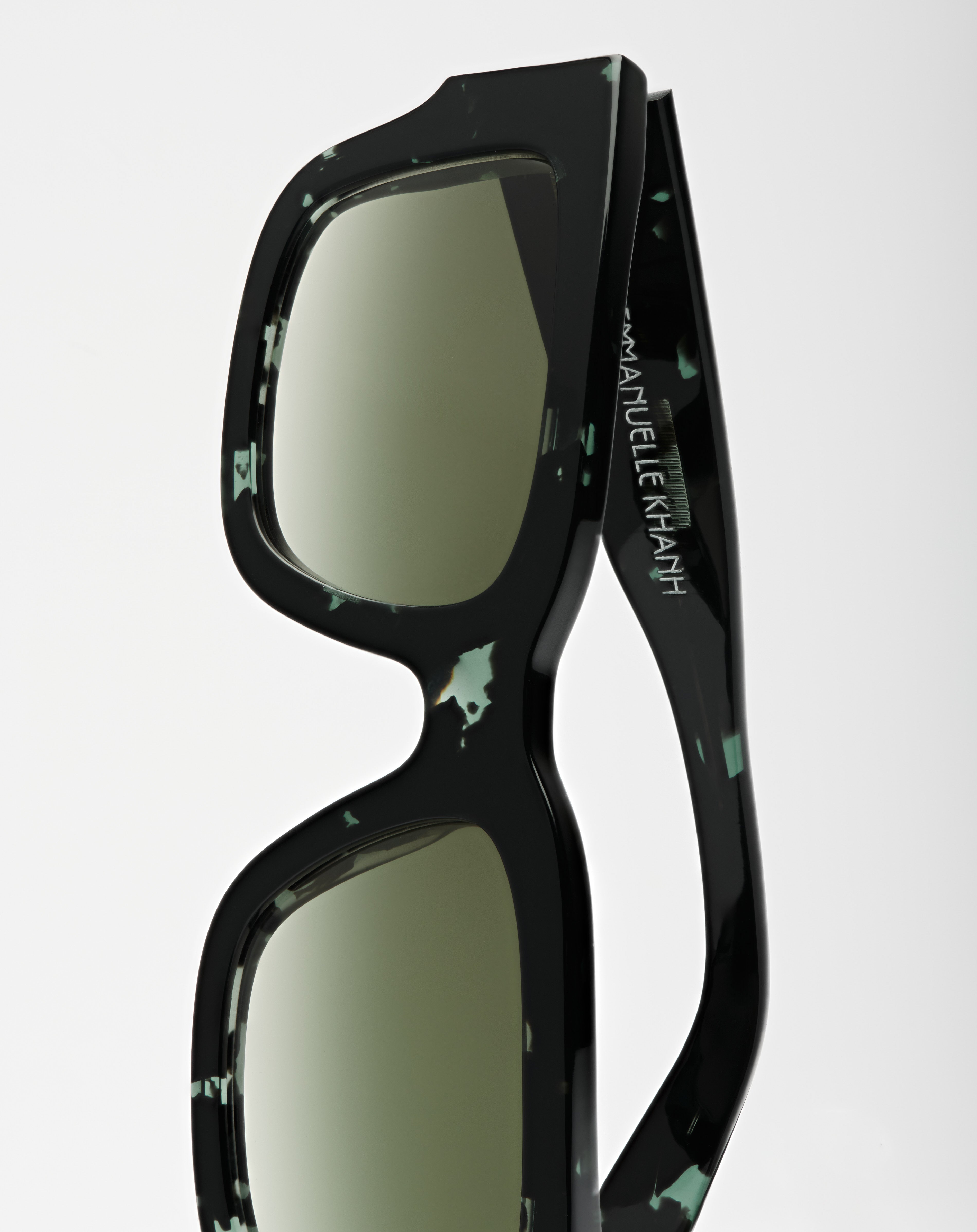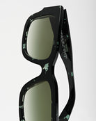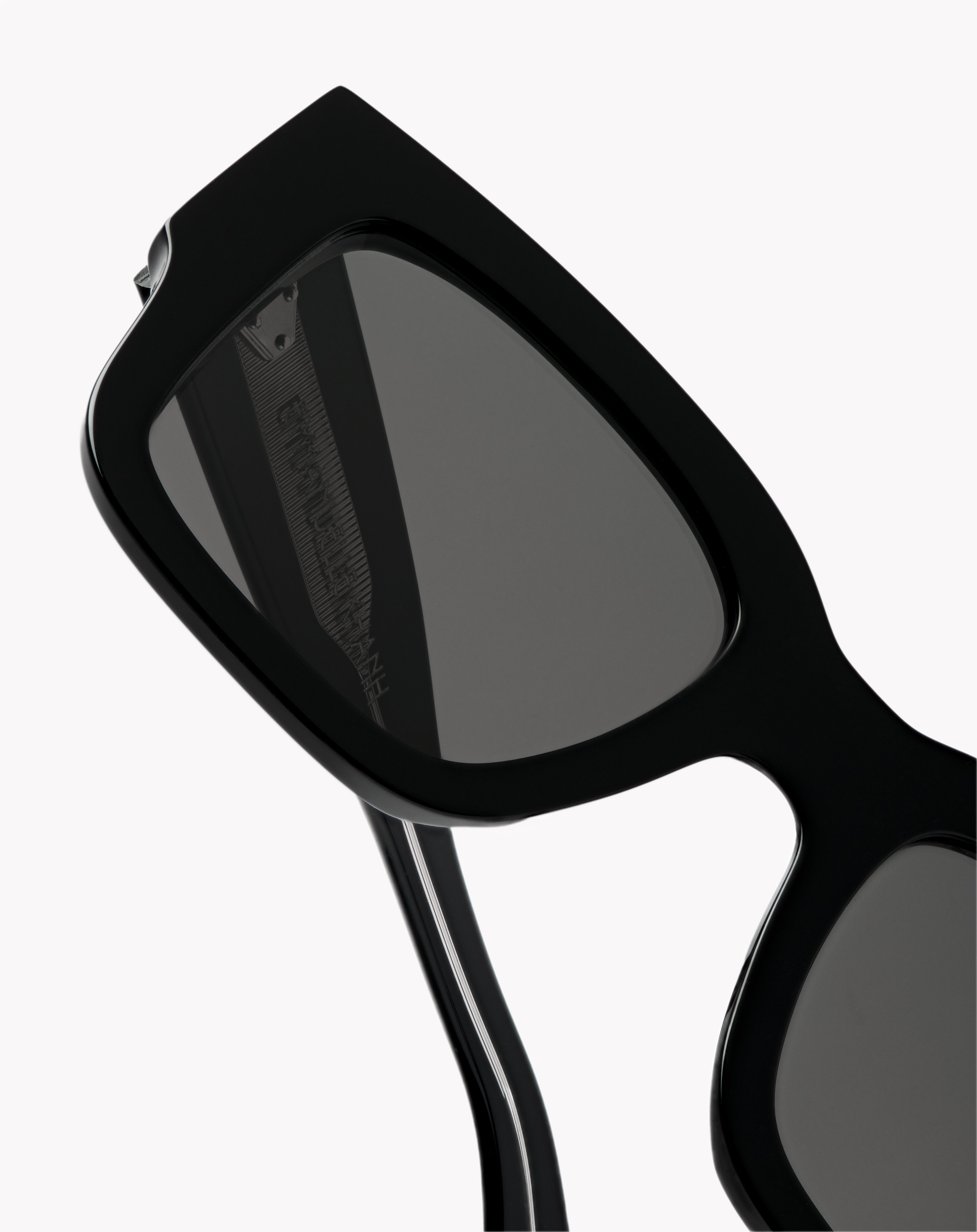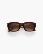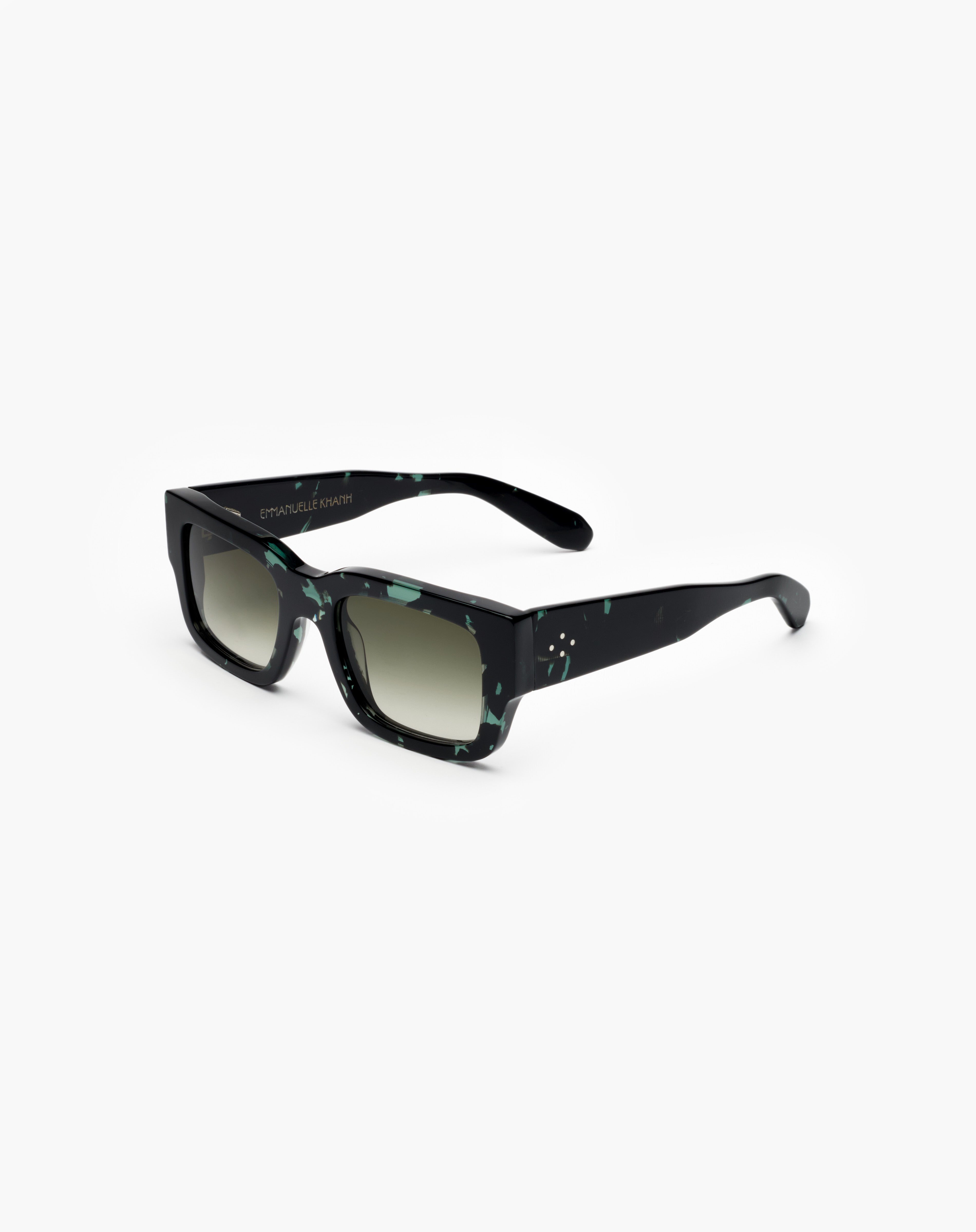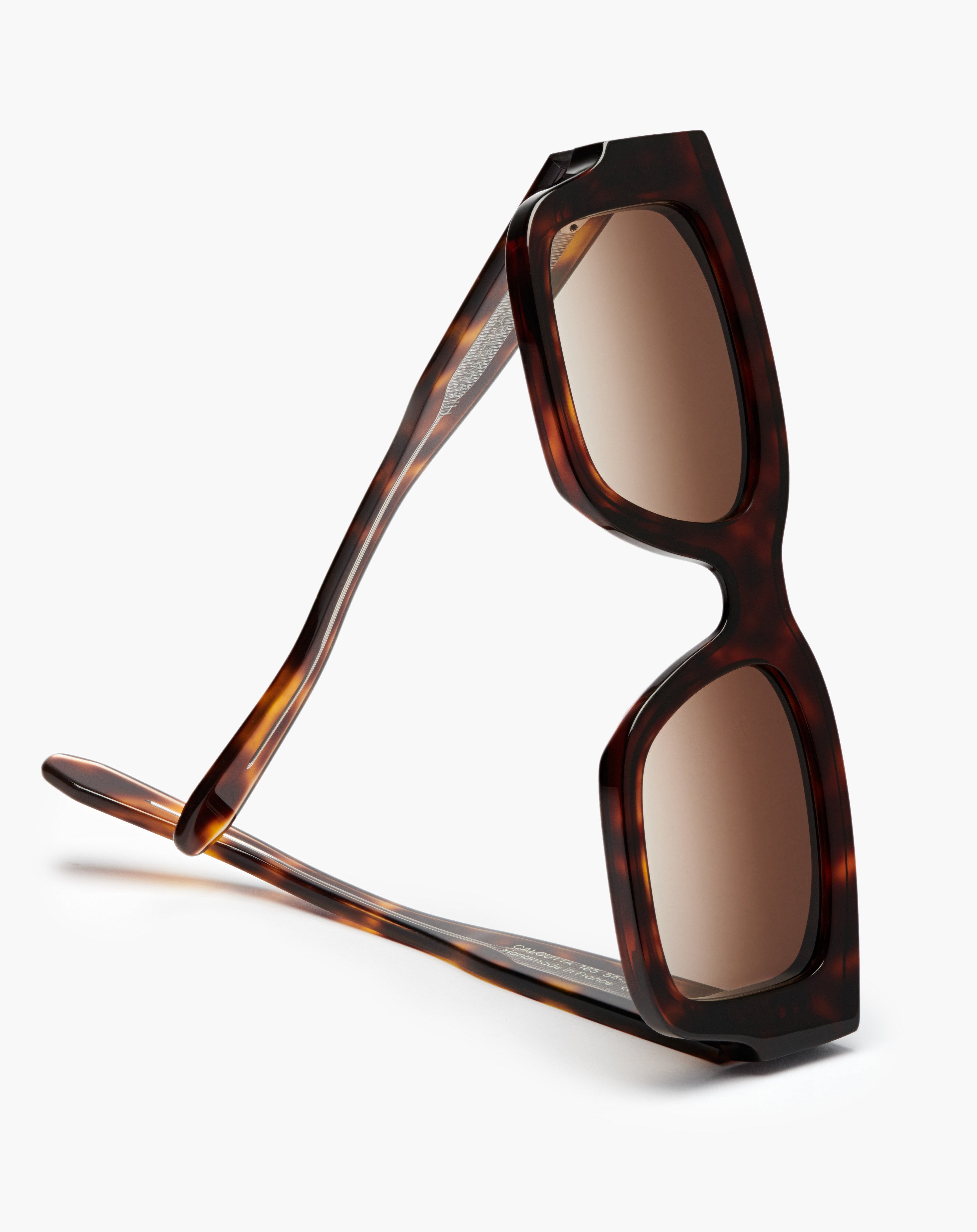 The solar Calcutta is a rectangular frame in acetate, handcrafted in France. Opulent and assertive, these masculine sunglasses are designed with specific pieces in which the mechanical technicality is sublimated by the design.