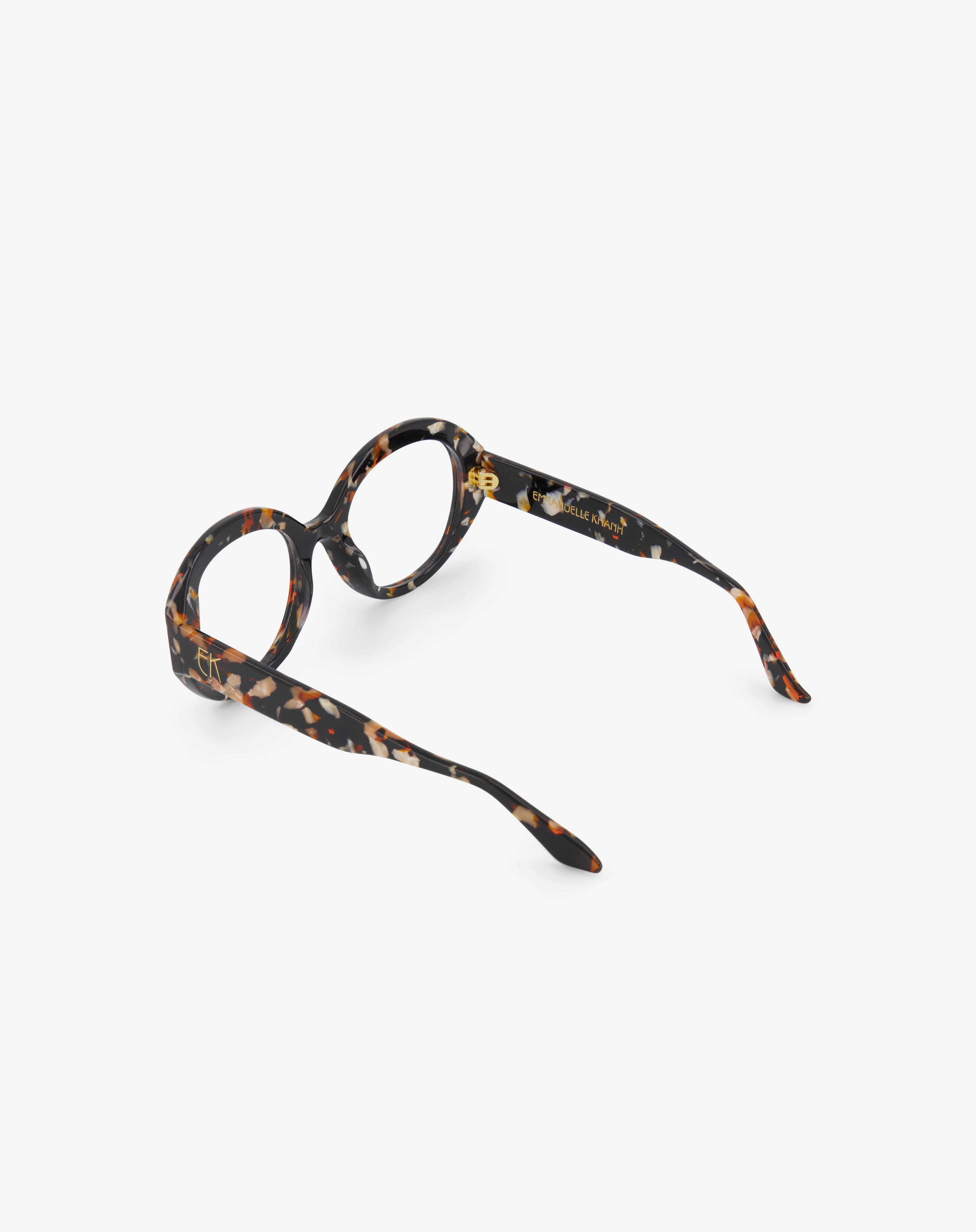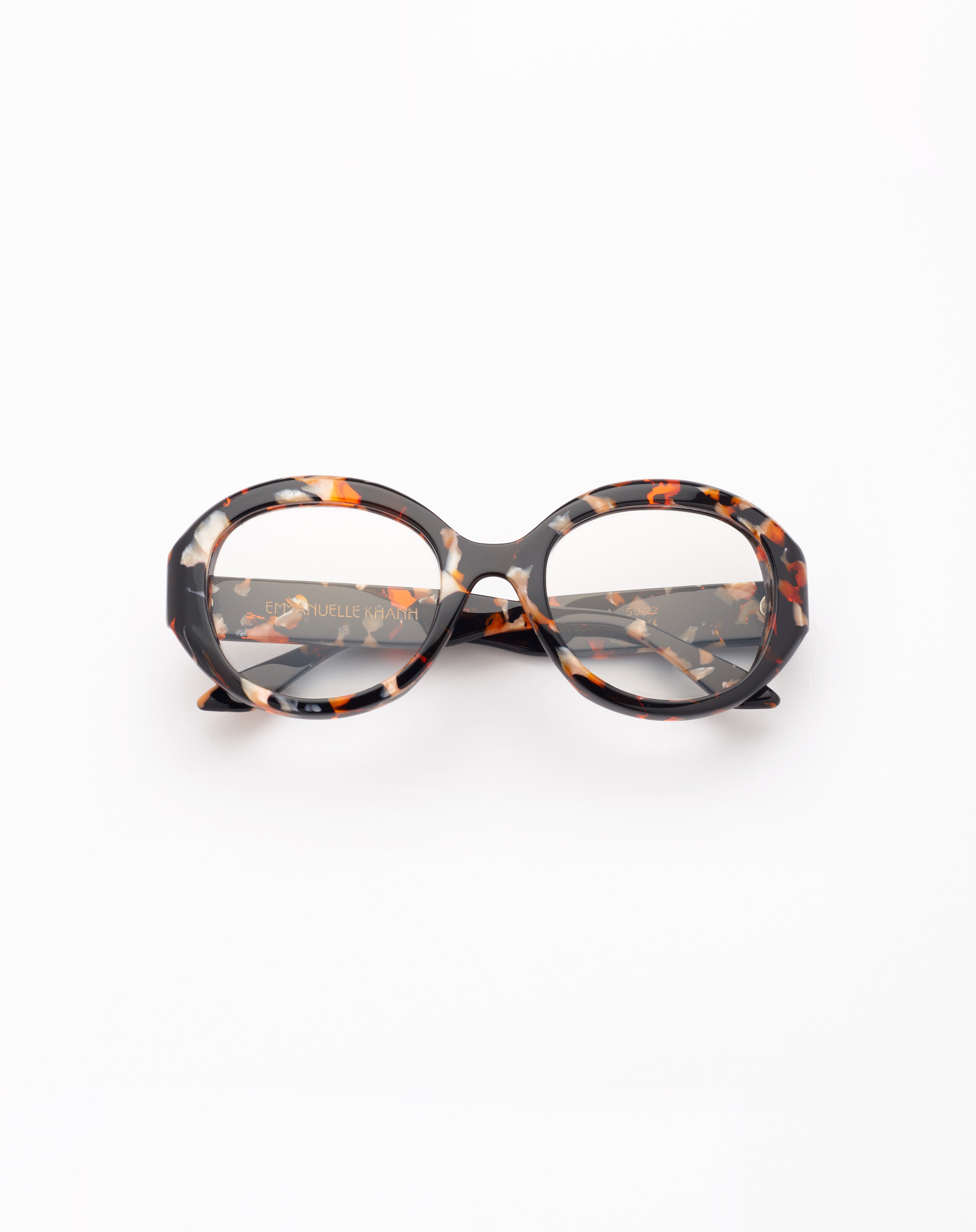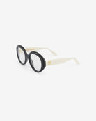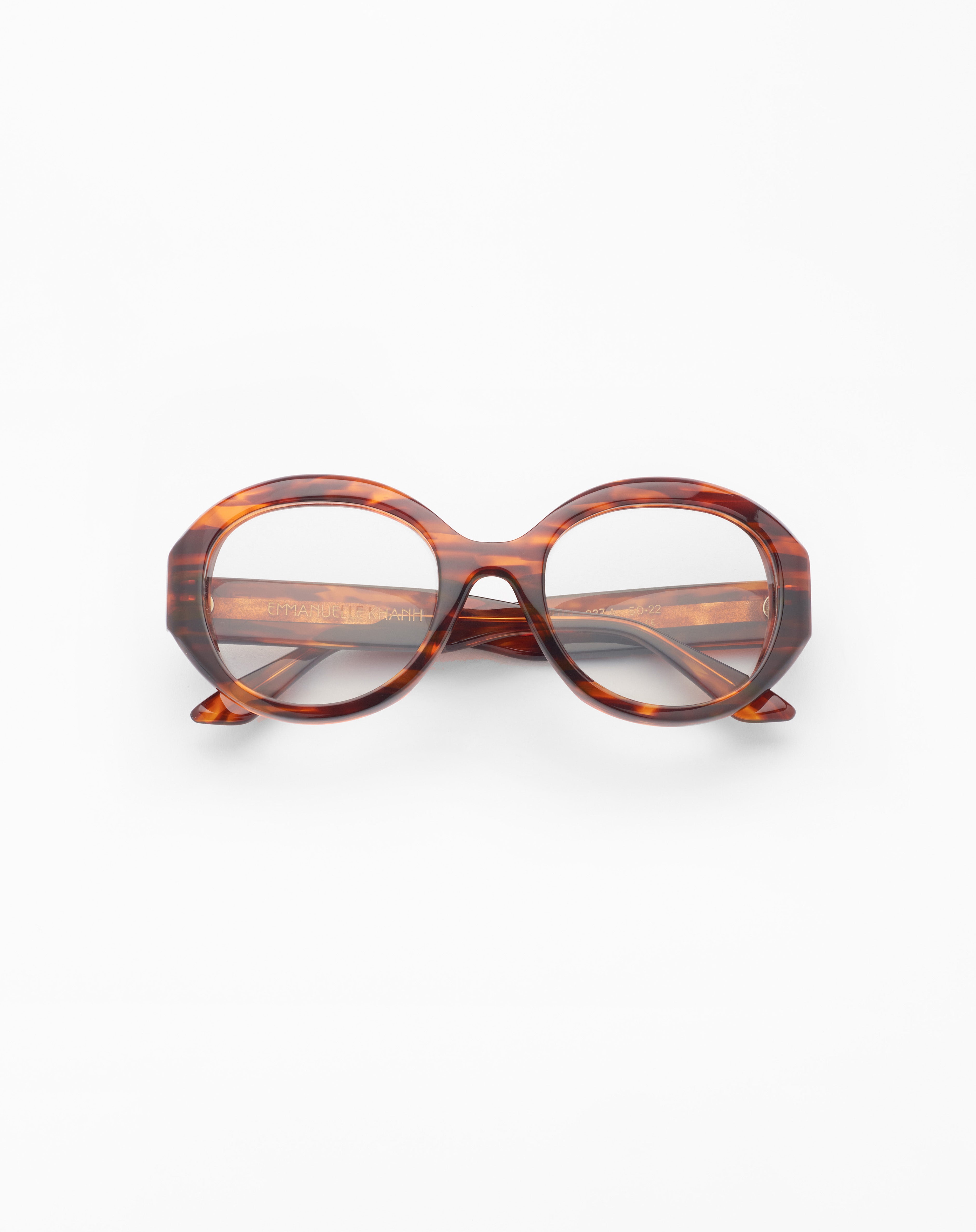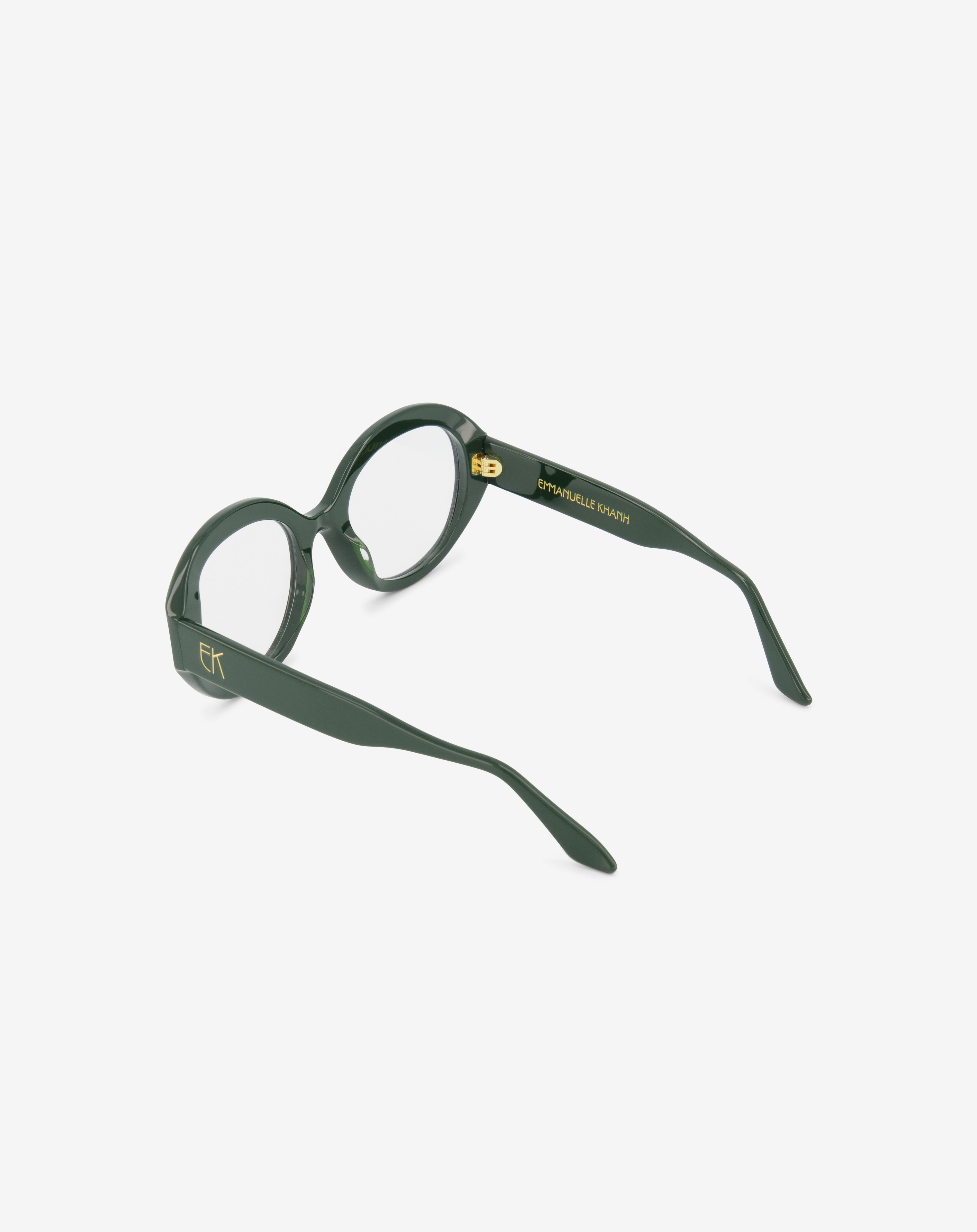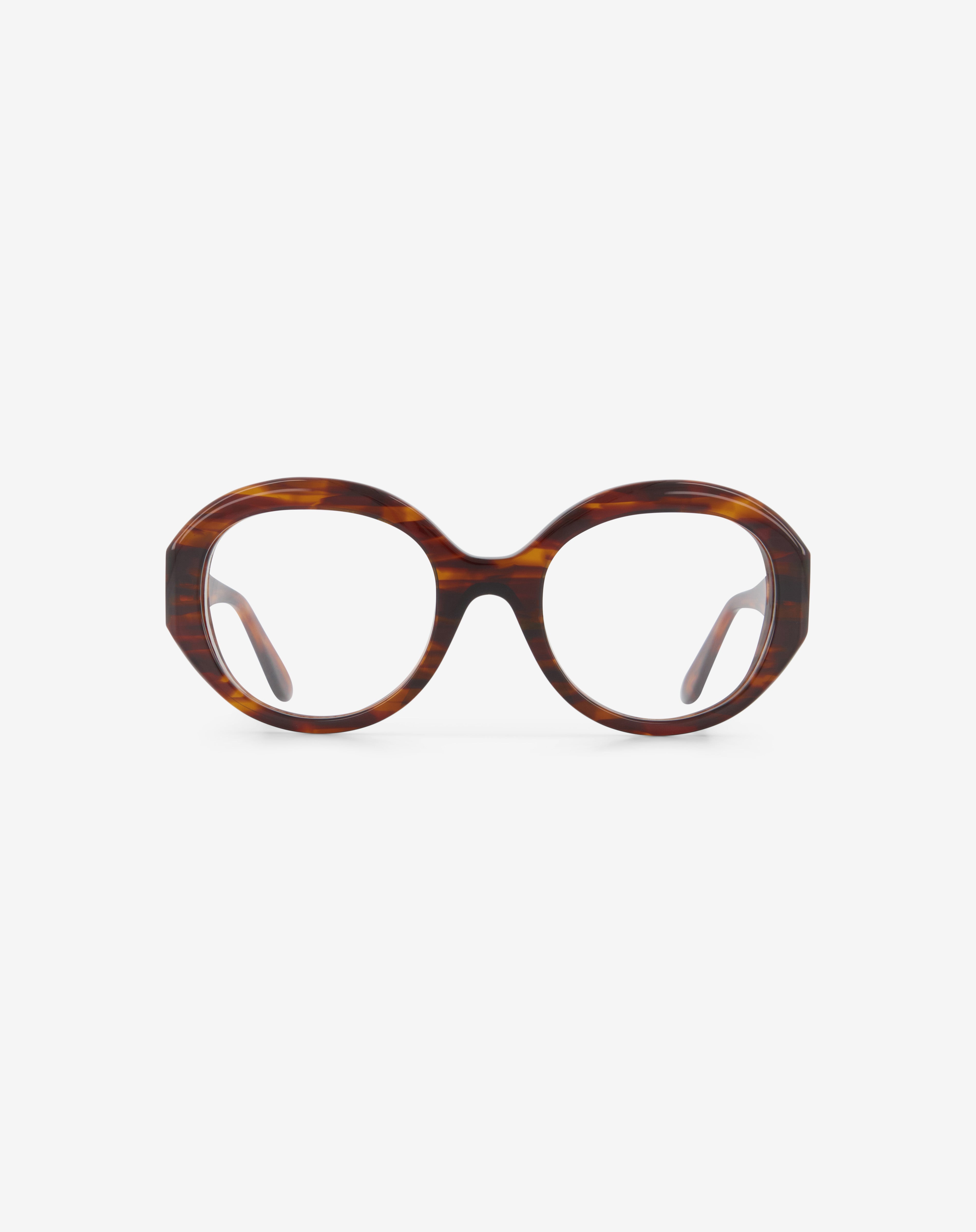 Signature line - Oval acetate frame, handmade in France with an authentic eyewear know-how. Monogram logo piece in gilded metal placed under resin. Acetates are made in France or Italy, depending on the colour.