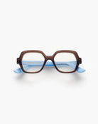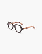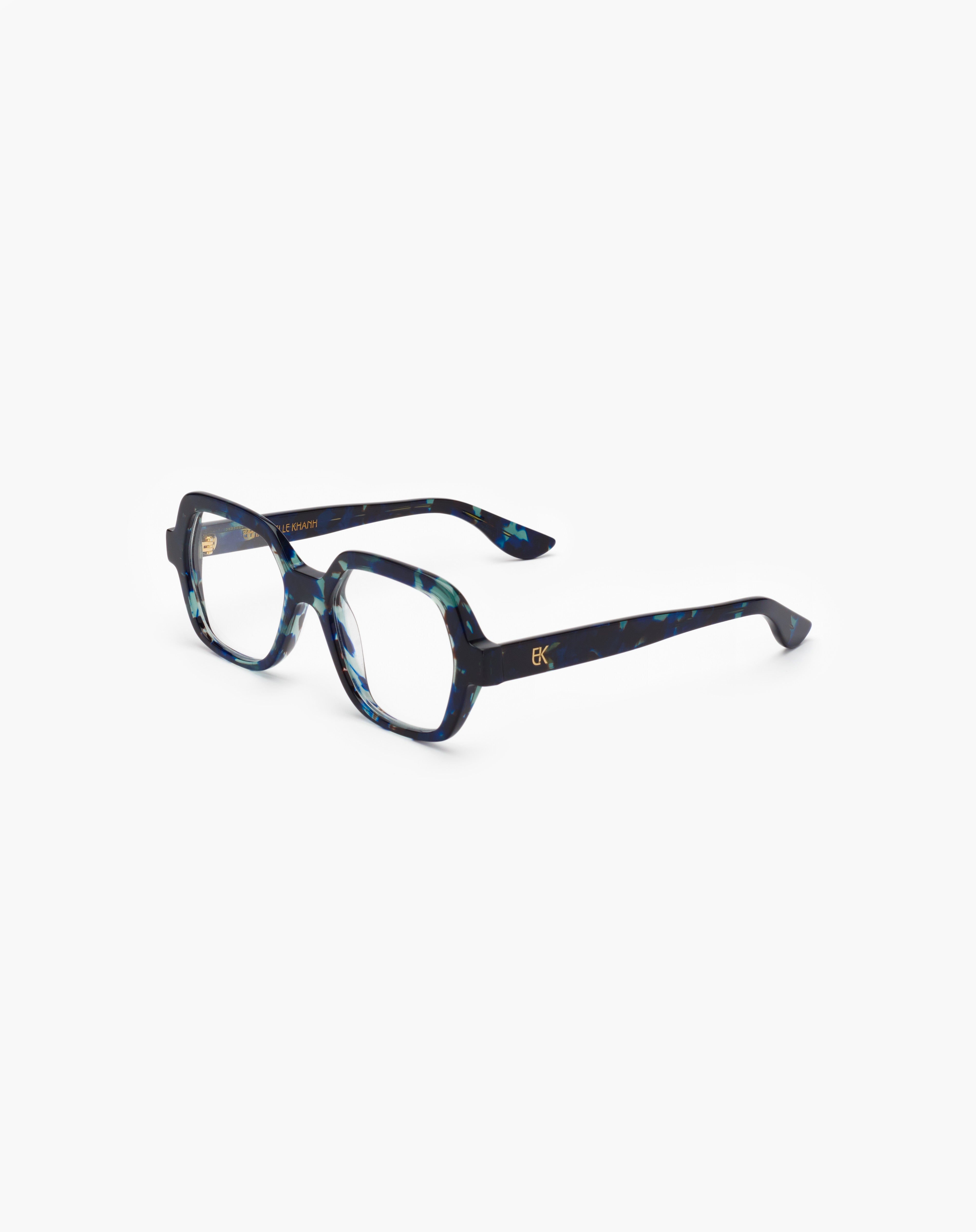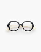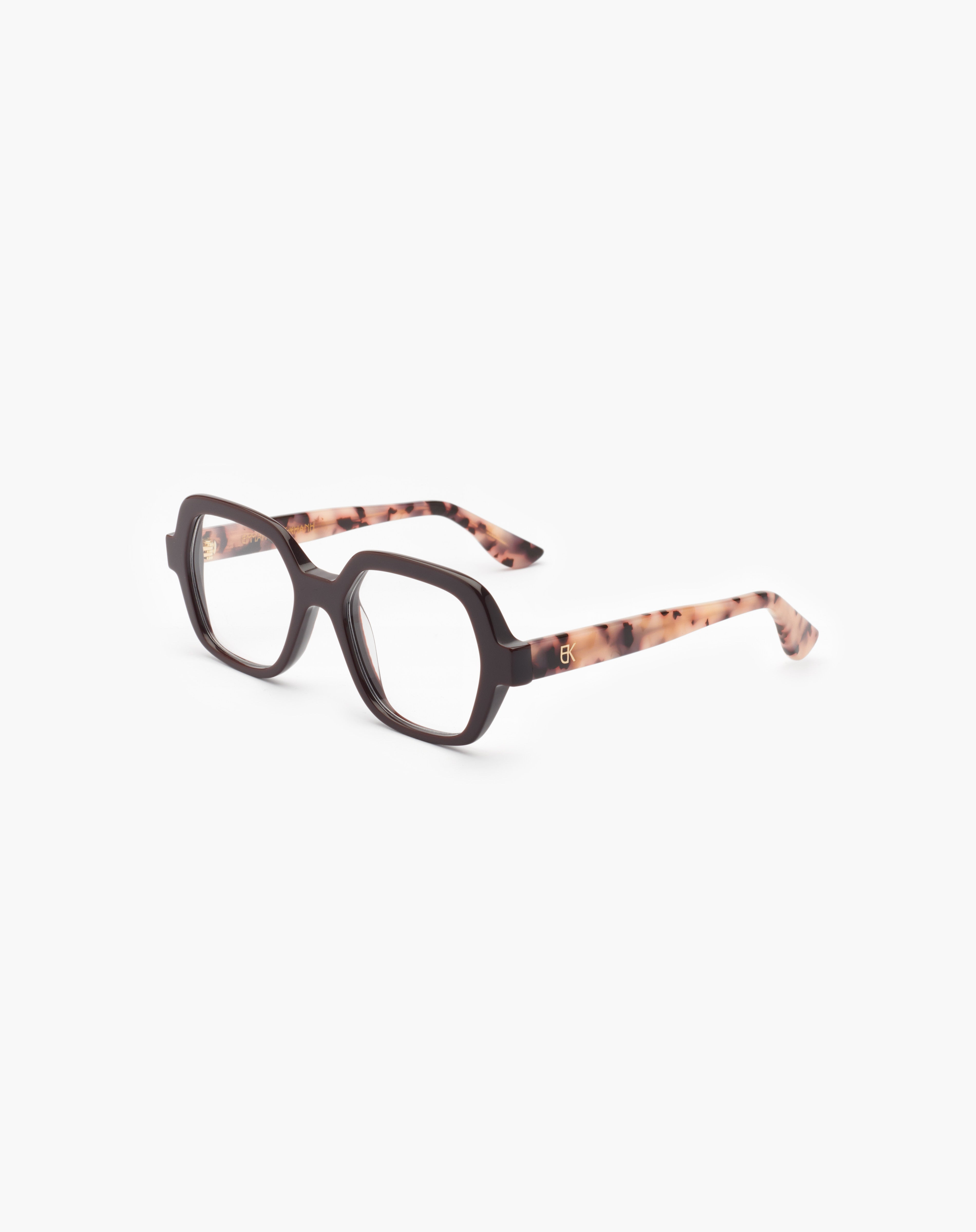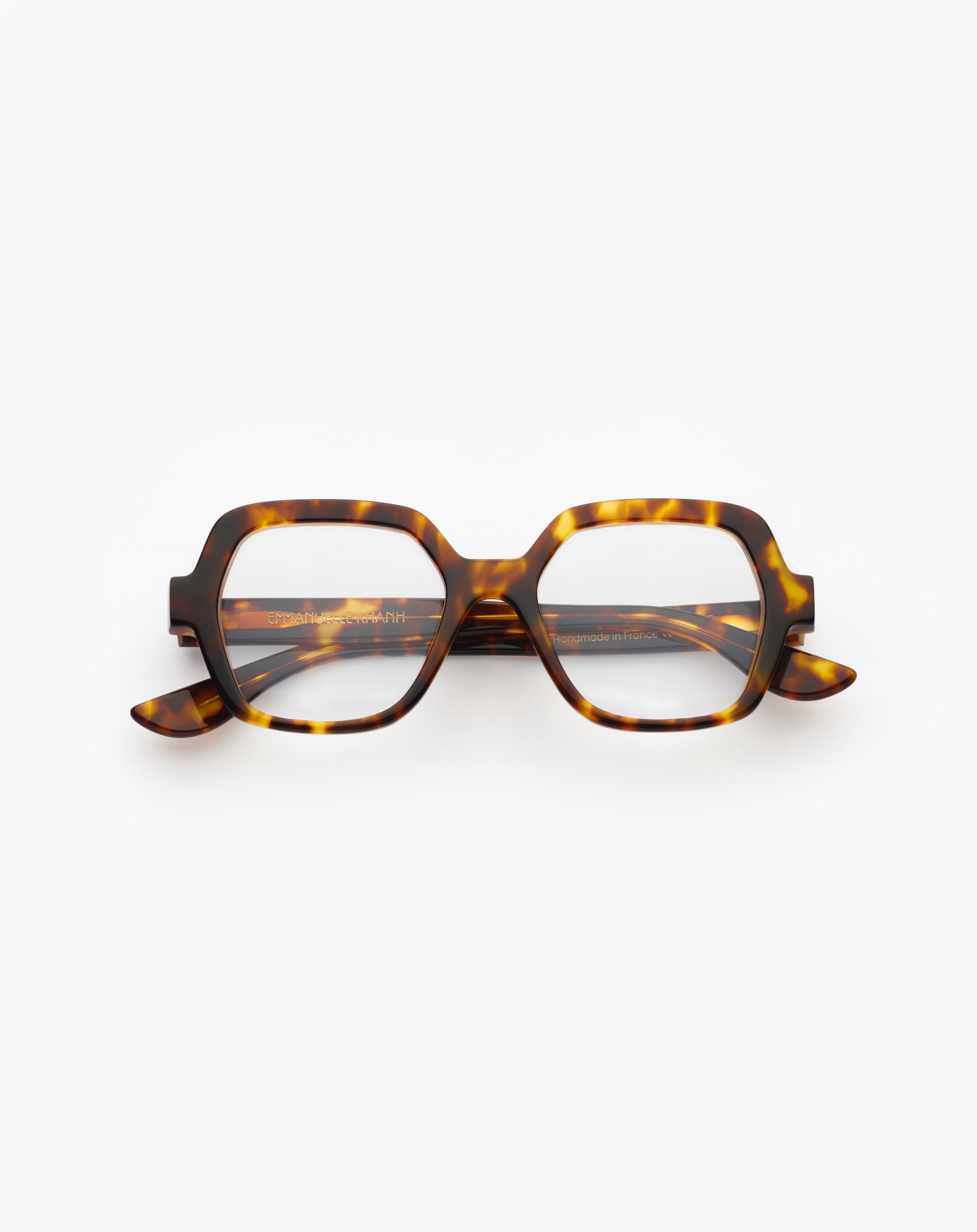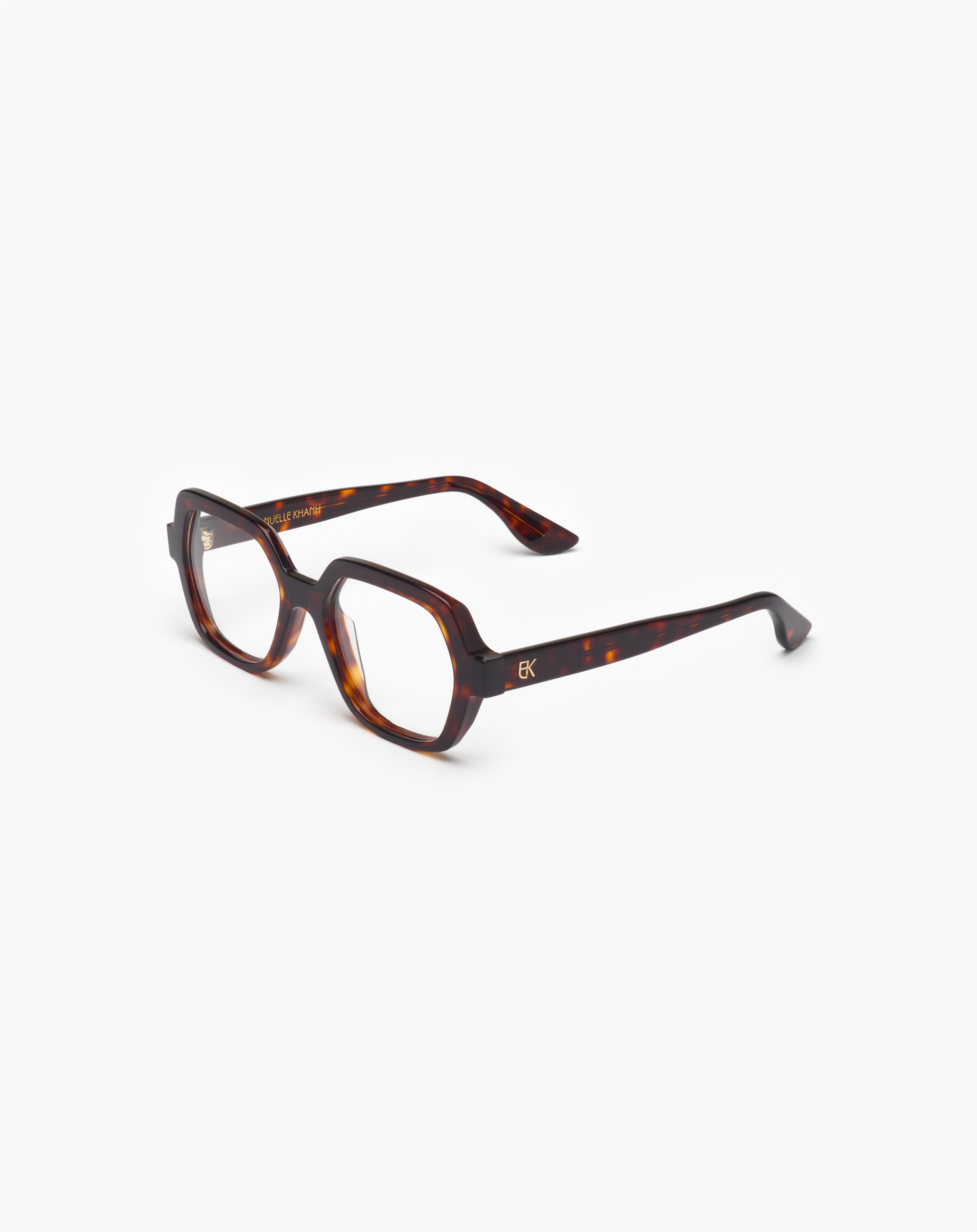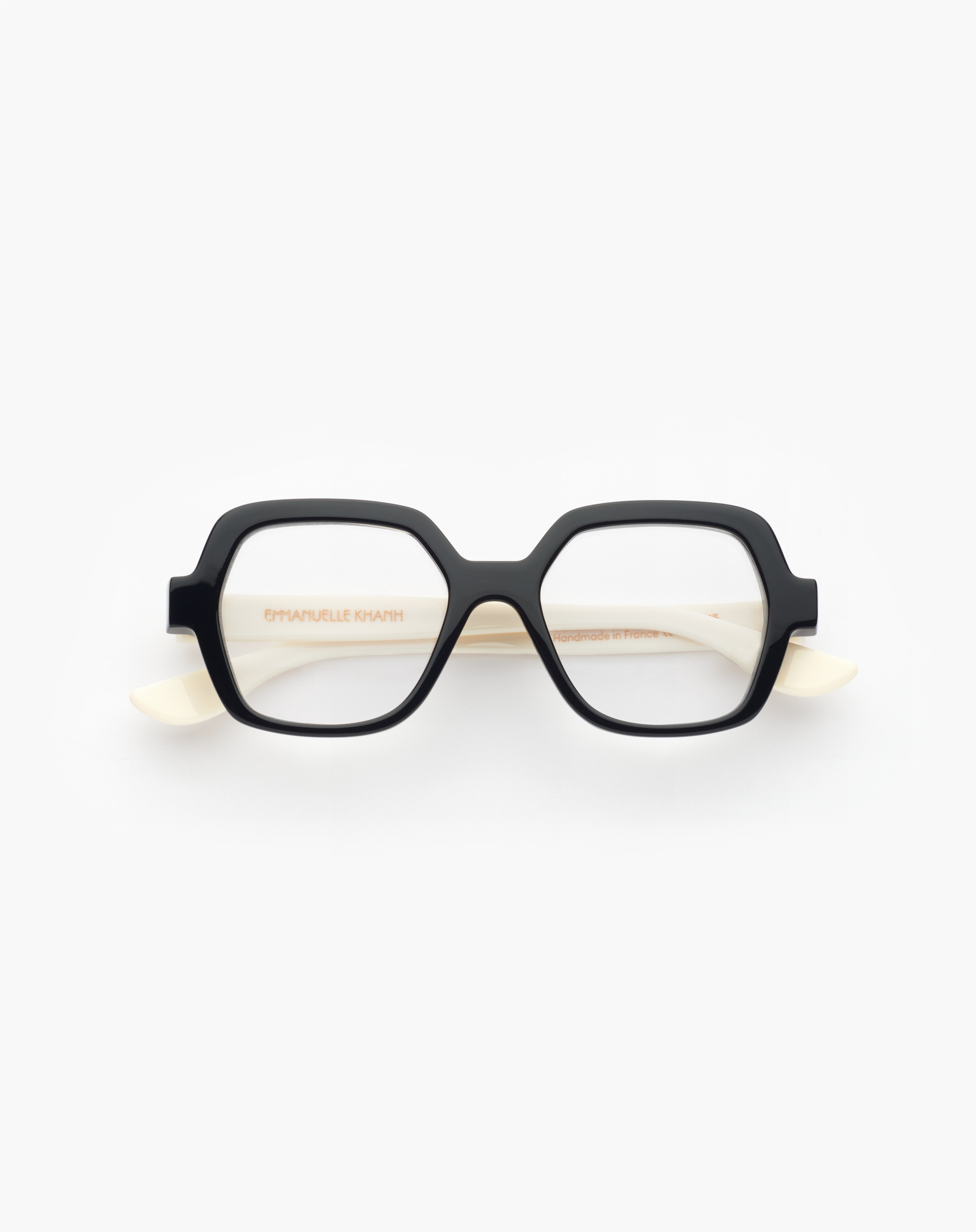 The optical Equinox is a square acetate frame, with a work of interior bevels. A mixed frame ideal for small and medium faces. Monogram logo piece in gold metal placed under resin. Handcrafted in France using authentic eyewear know-how.