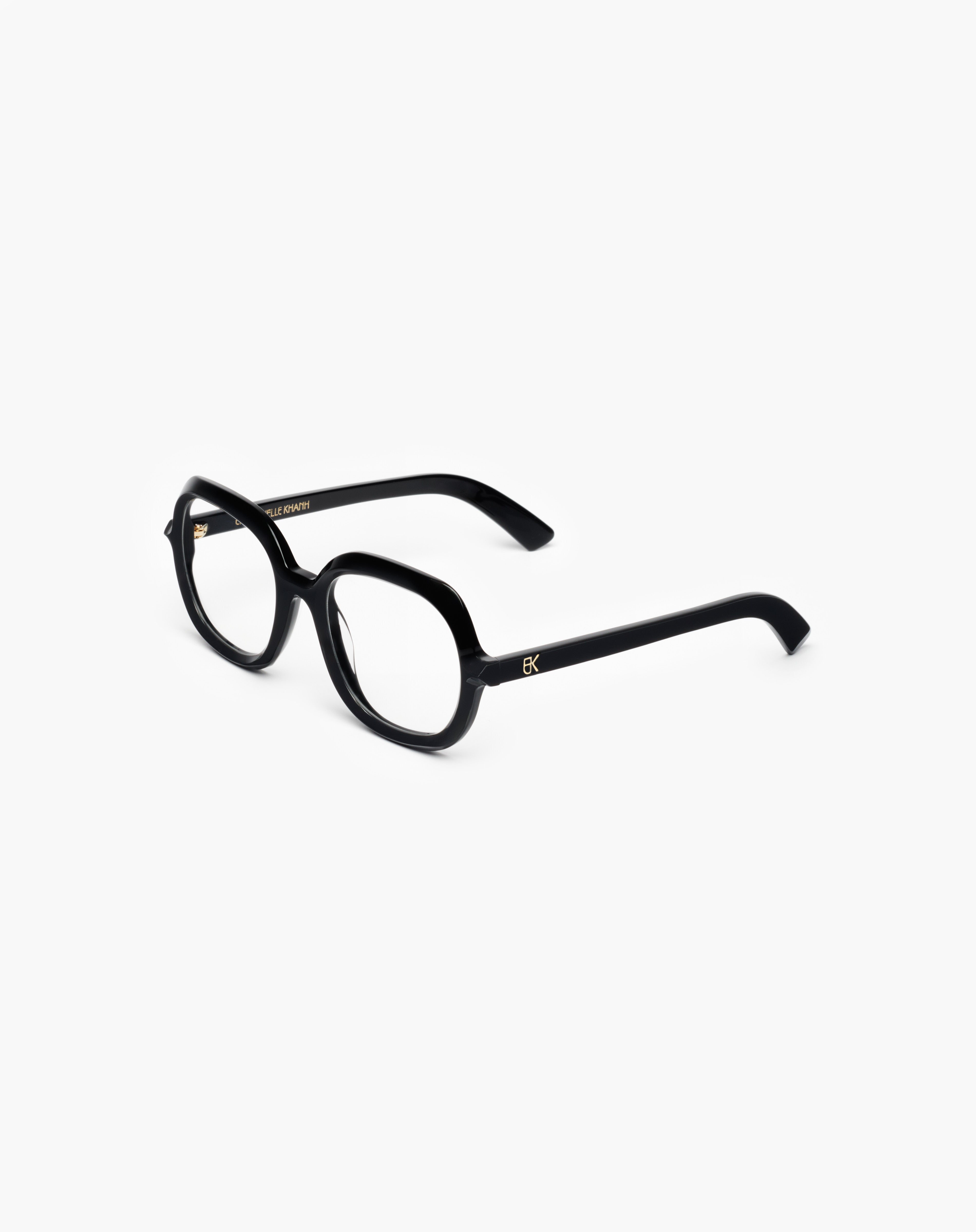 The optical Jeans is a square acetate frame for an oversized woman look, bevelled from the front to the temples. Monogram logo piece in gold metal placed under resin. Handcrafted in France using authentic eyewear know-how.