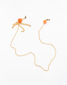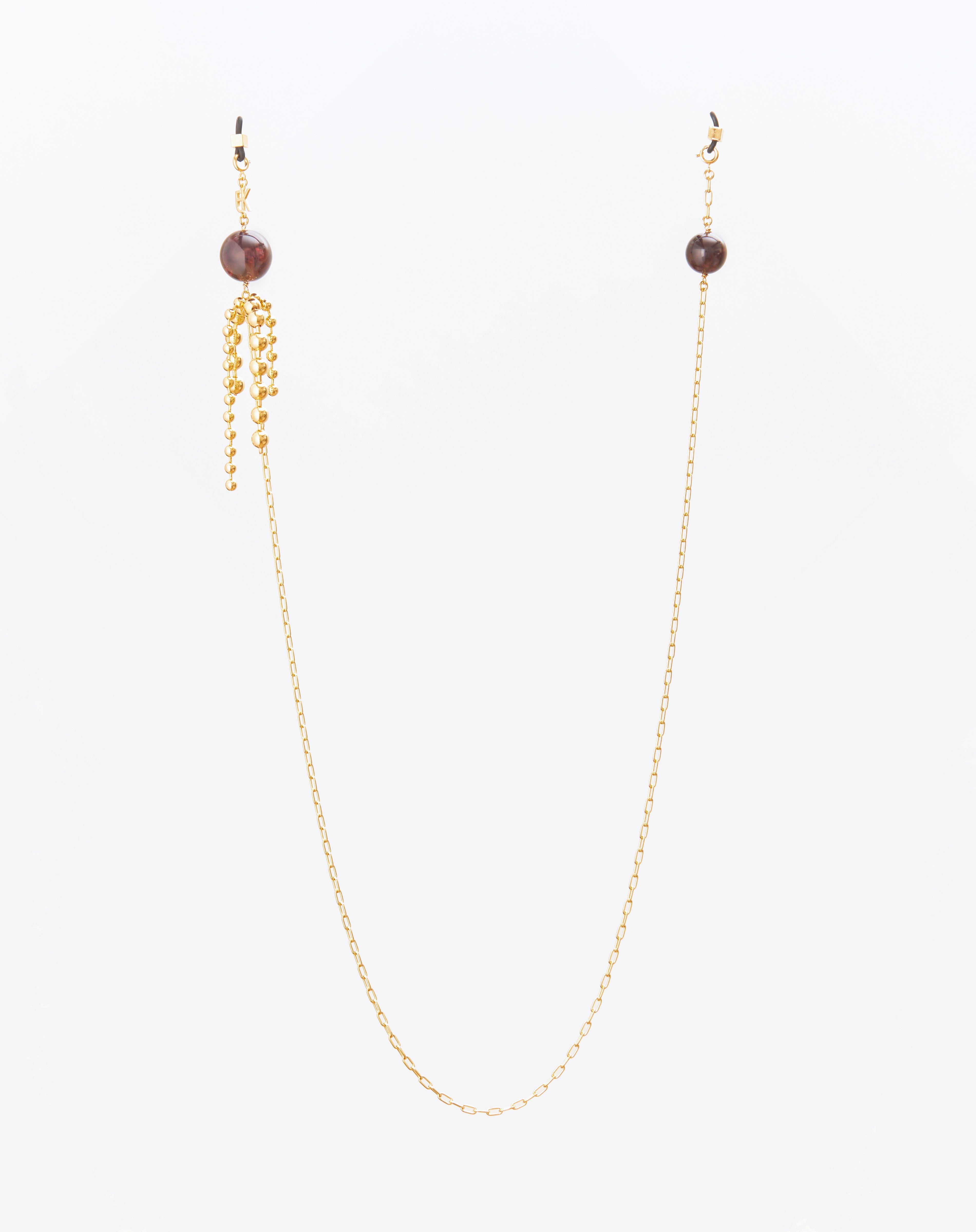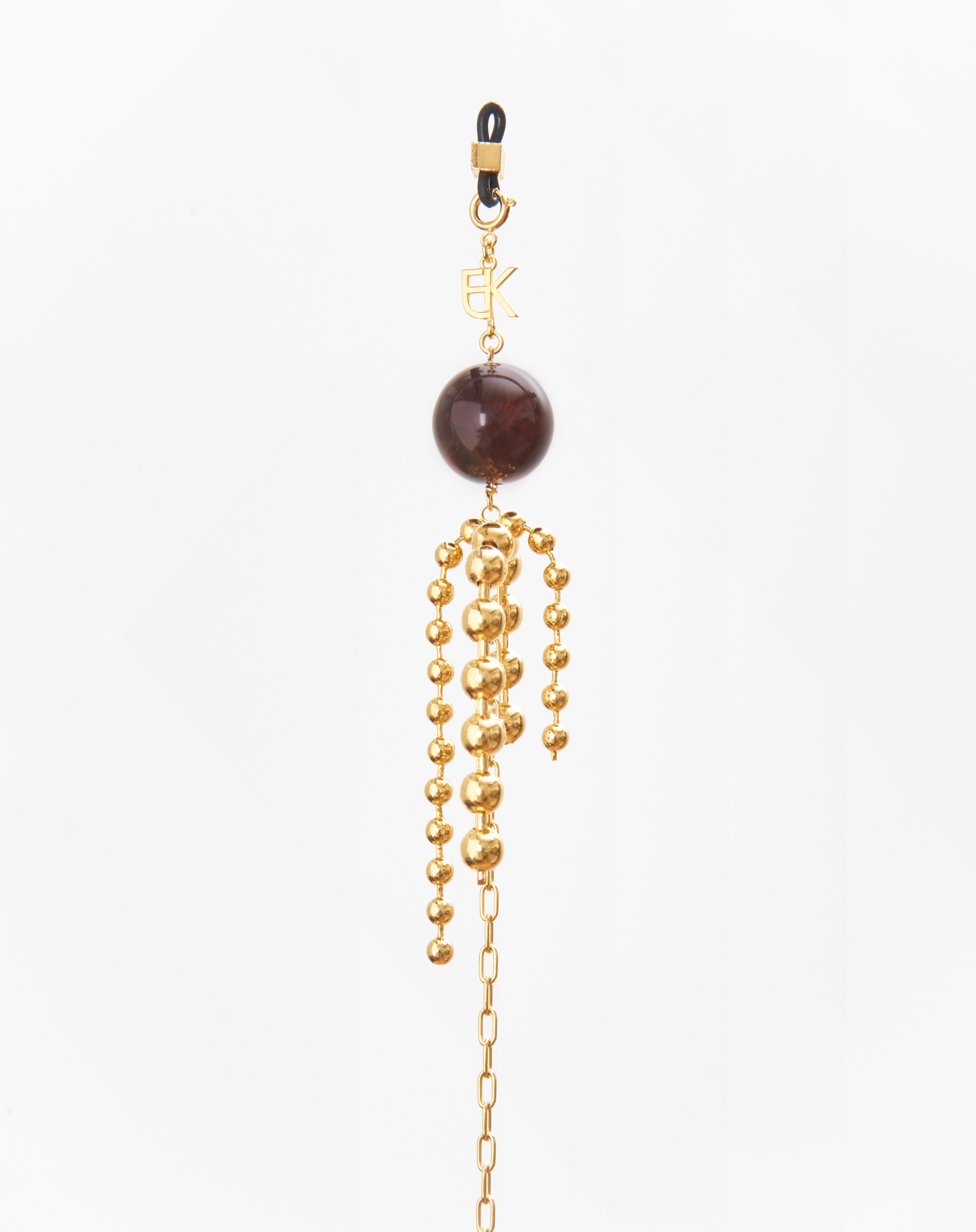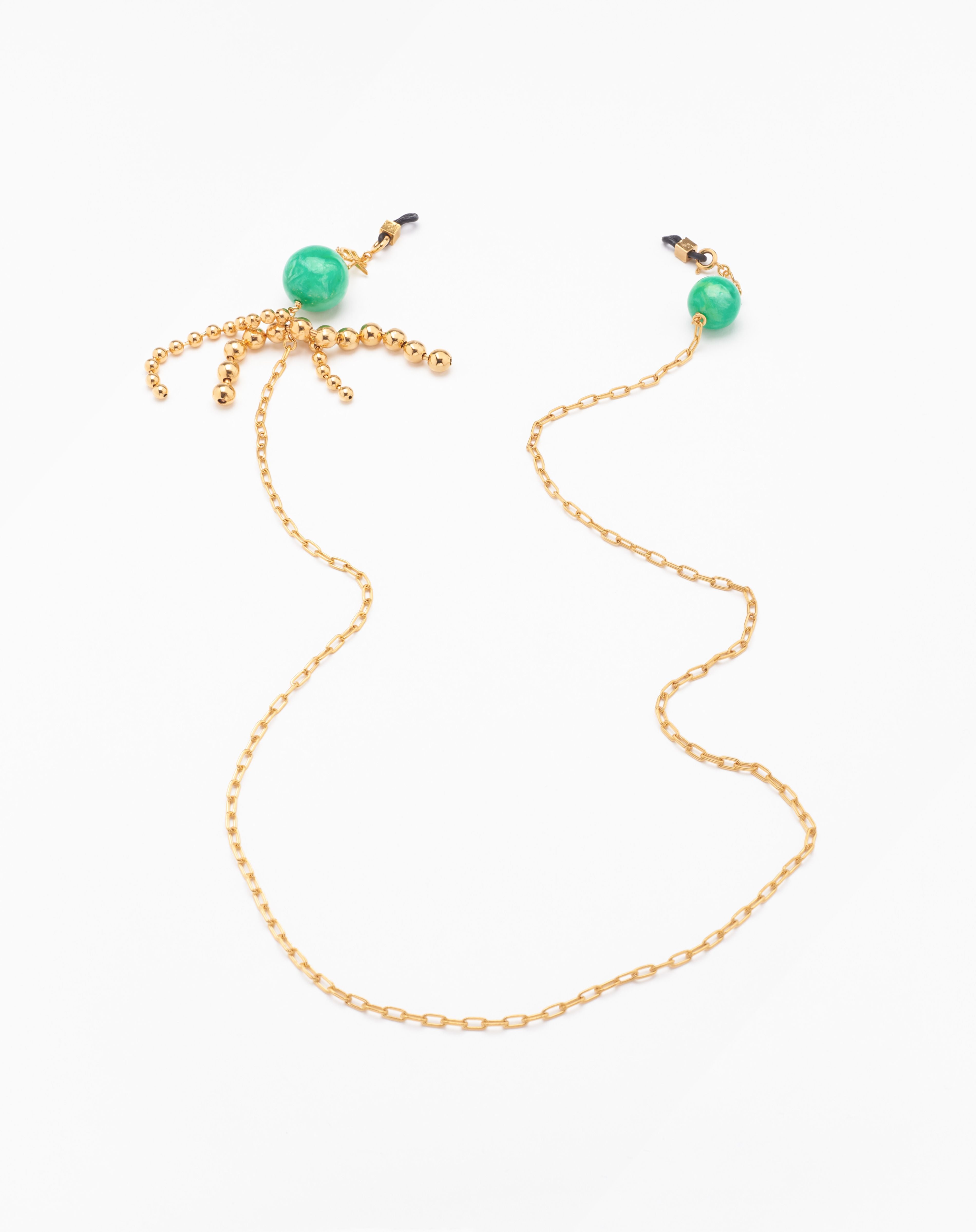 Emmanuelle Khanh imagines an original accesorie mixing a gold plated chain and round beads. Adorned like earrings, this accessory continues to explore a jewel dimension. Chain length: 75cm. Designed and handcrafted in France.