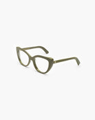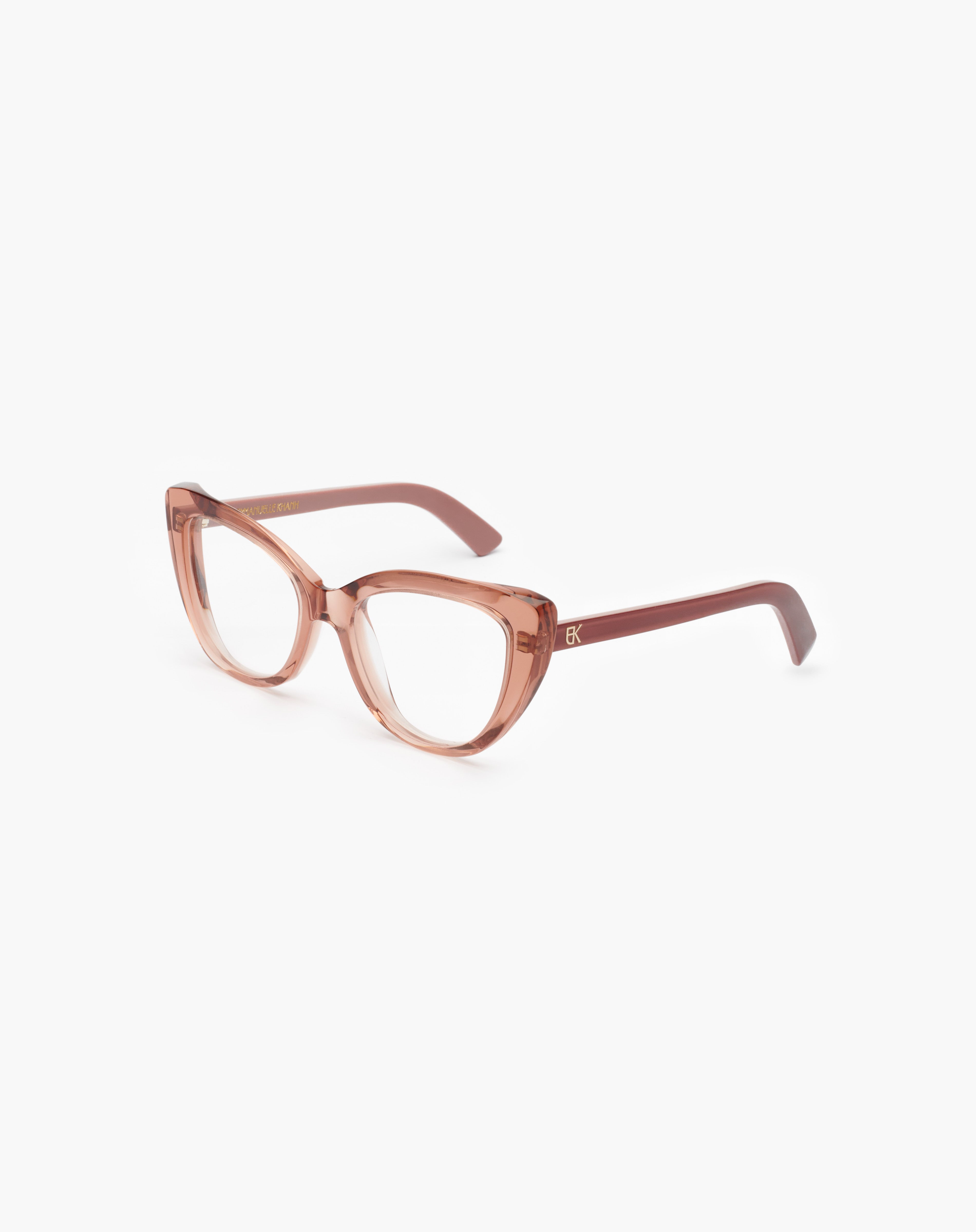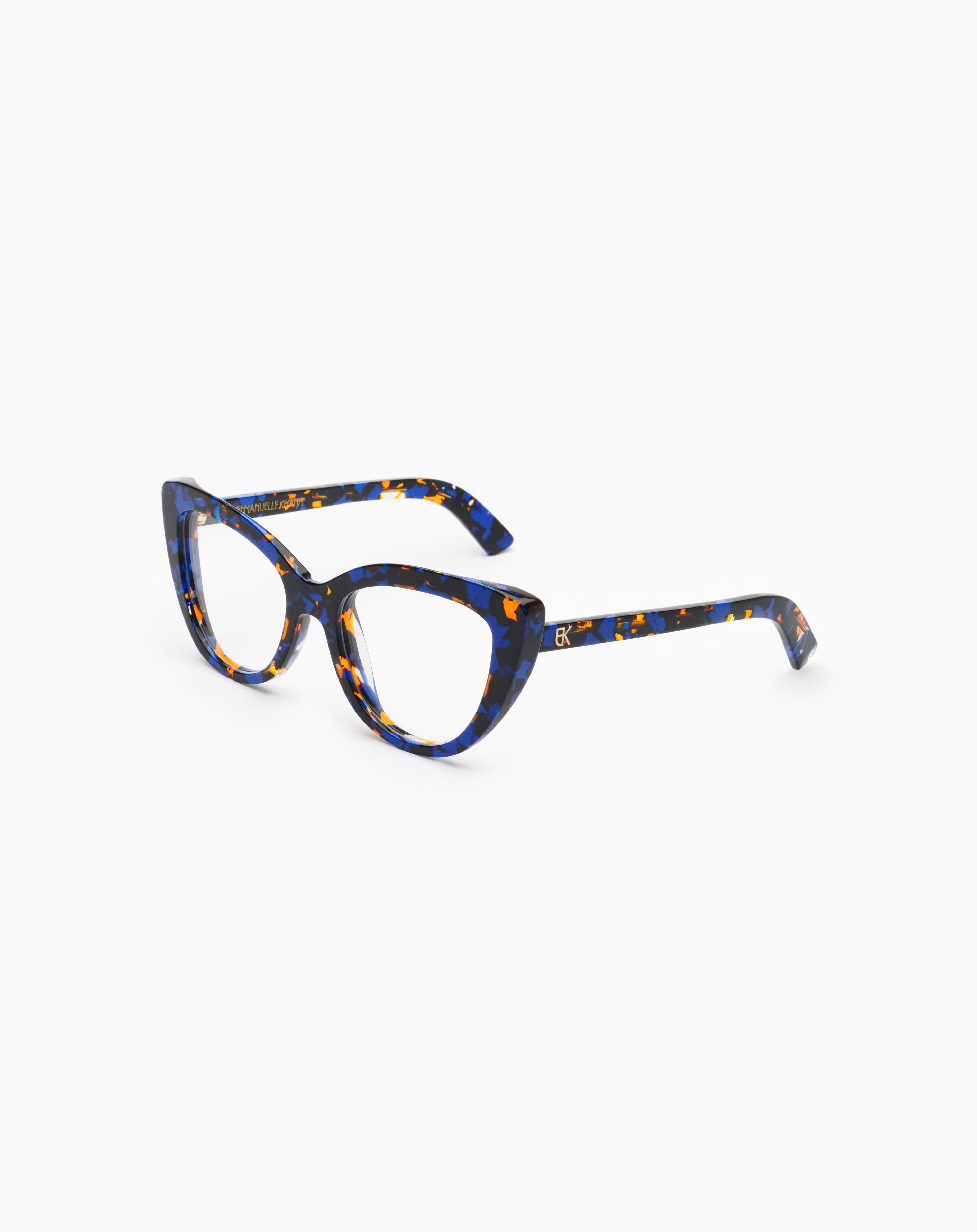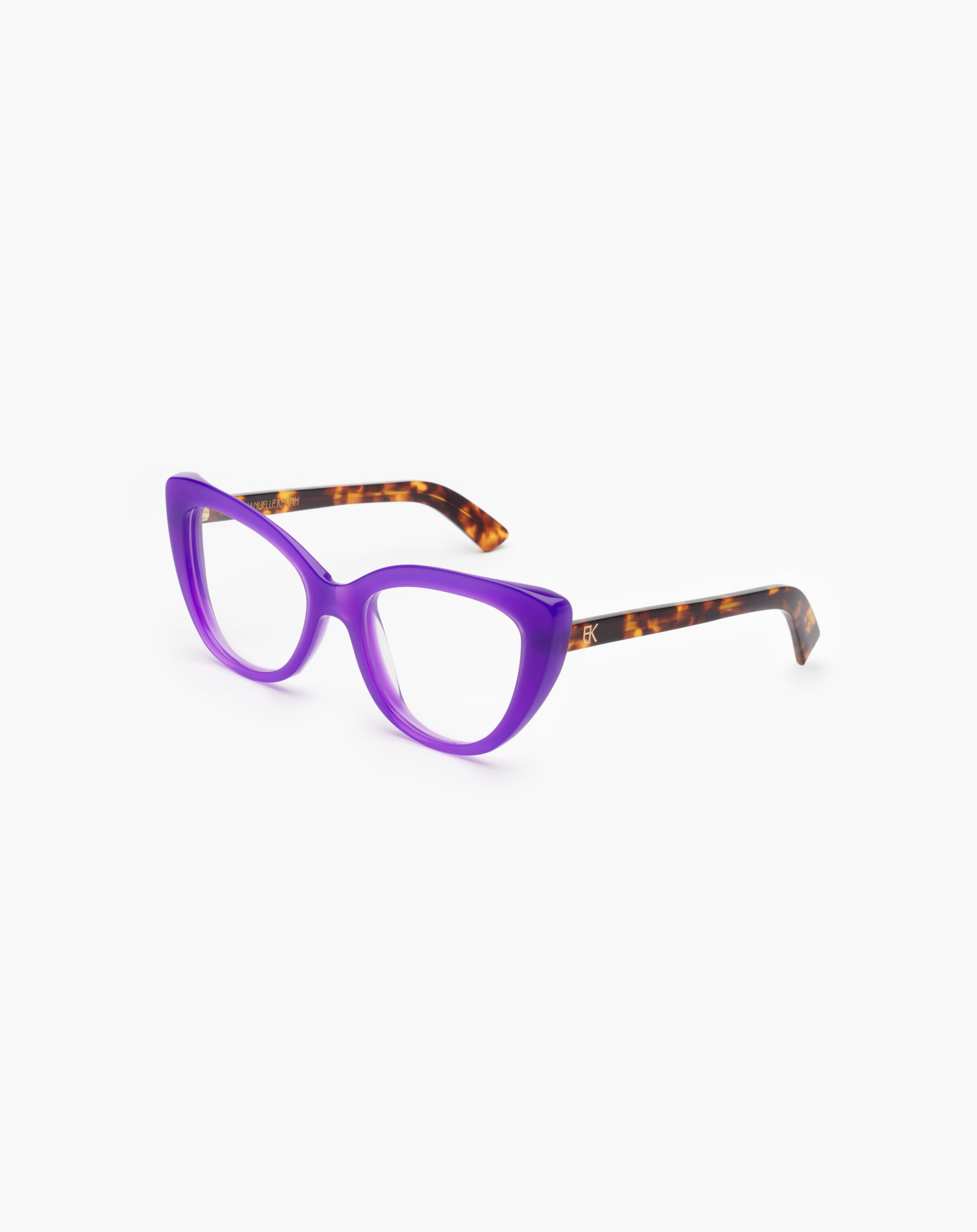 The Domo eyeglasses are crafted from acetate and handmade in France. Featuring bold beveling, the design makes a striking statement. The temples are adorned with a gold metal monogram set beneath resin, offering an elegant and iconic signature touch.