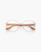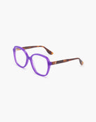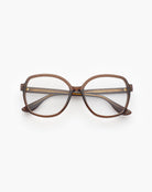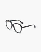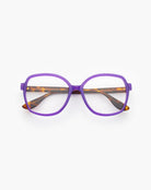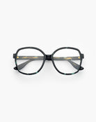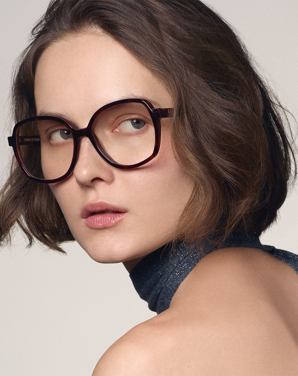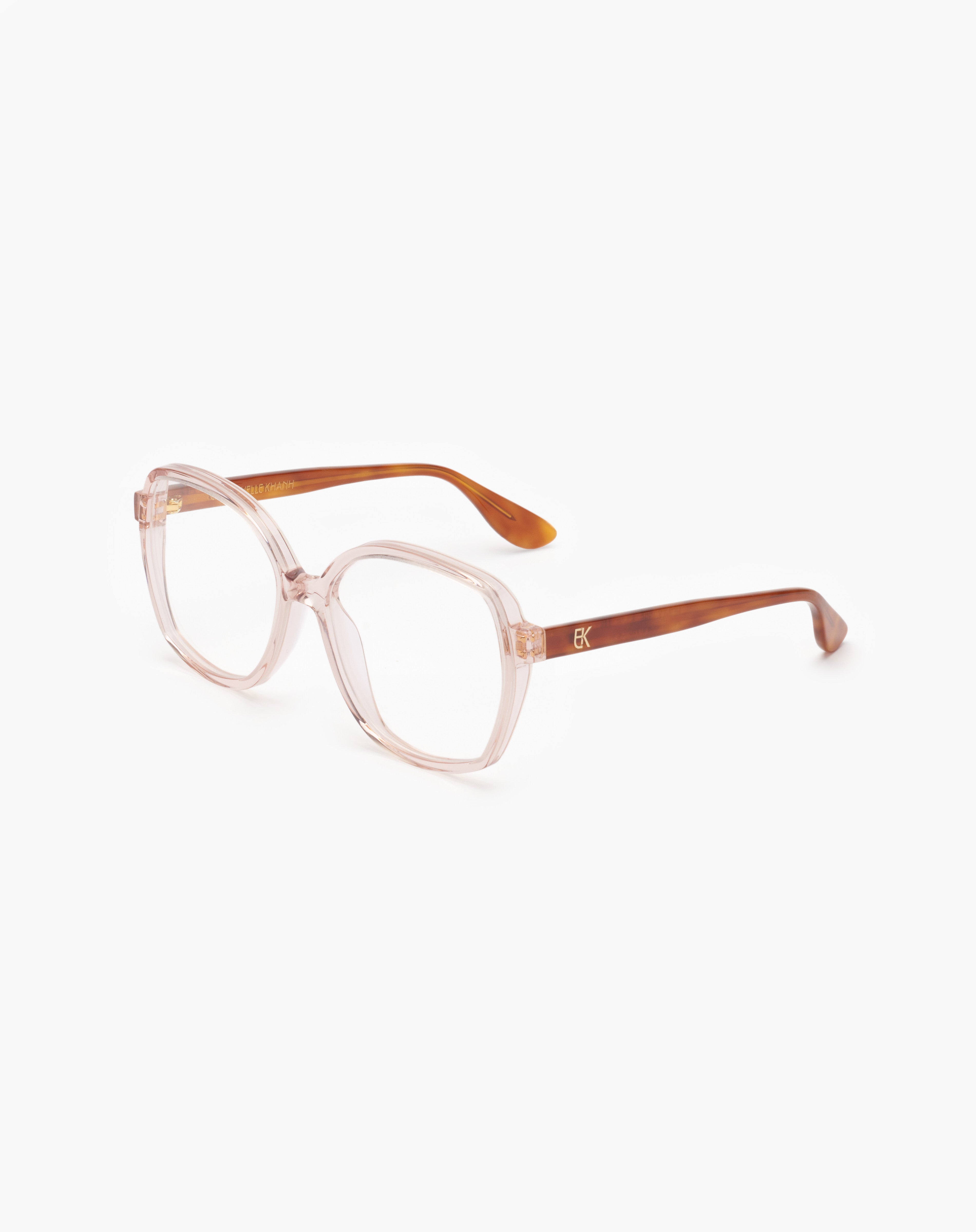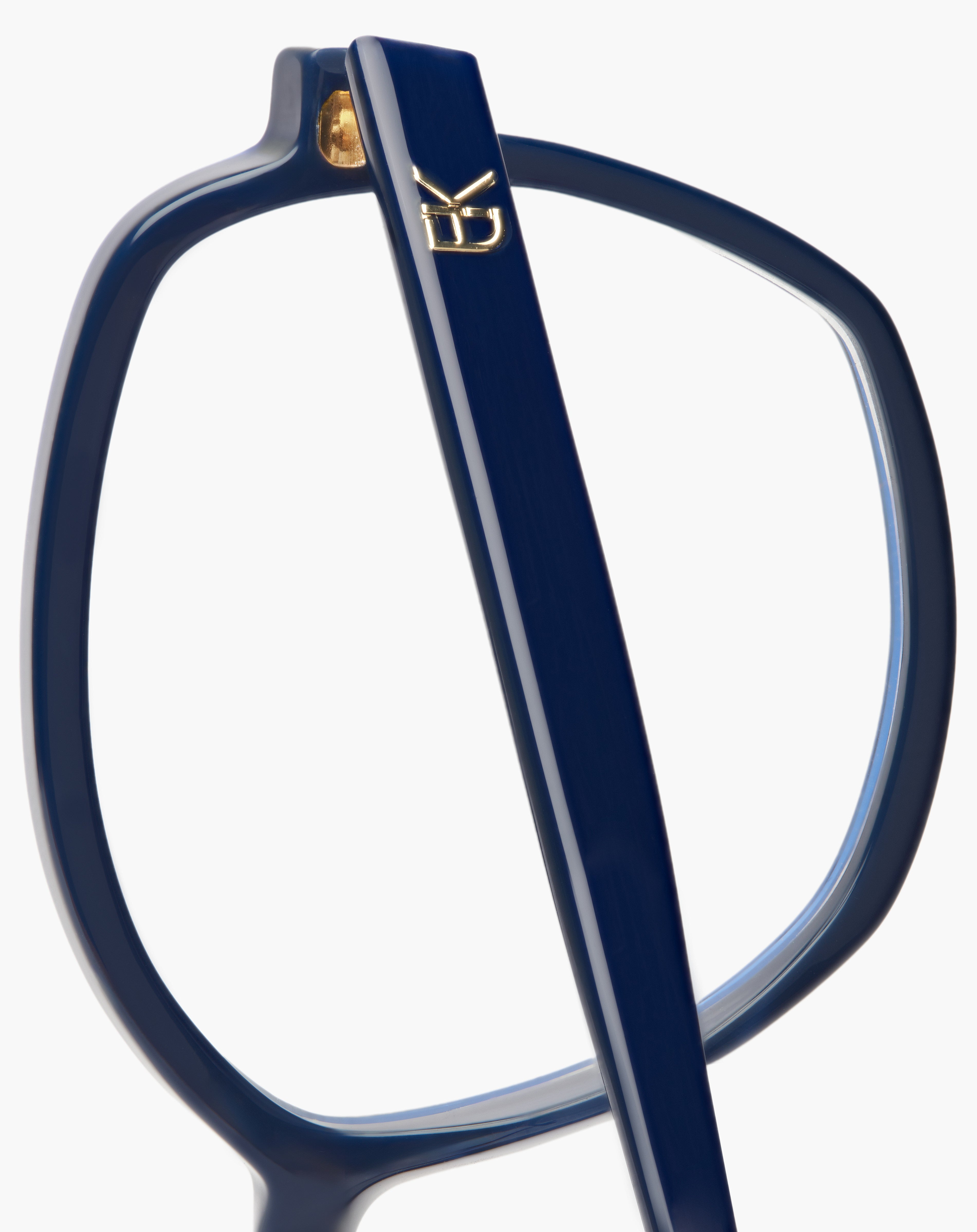 The Honey eyeglasses are crafted from acetate and handmade in France. Featuring bold beveling, the design makes a striking statement. The temples are adorned with a gold metal monogram set beneath resin, offering an elegant and iconic signature touch.