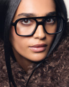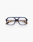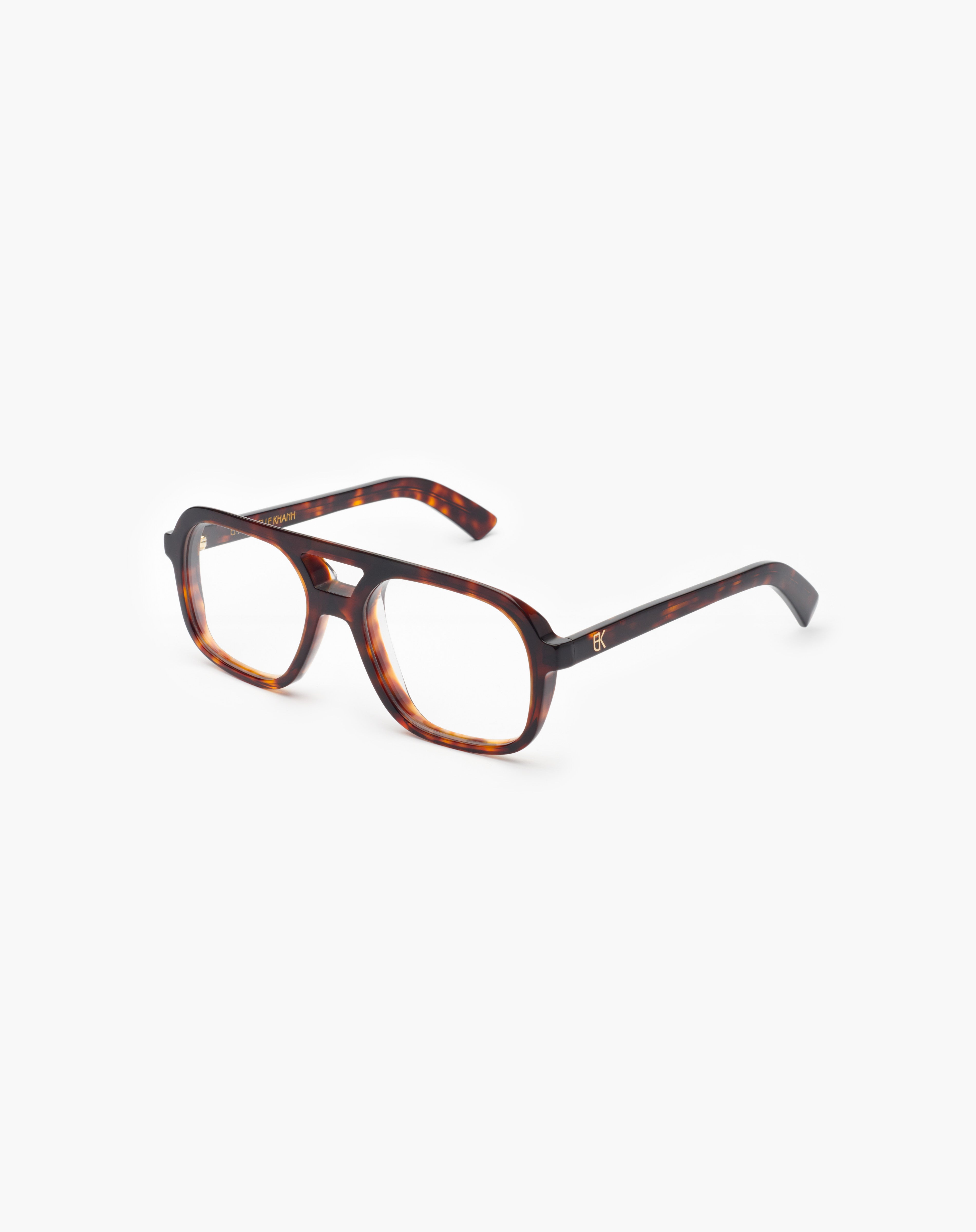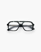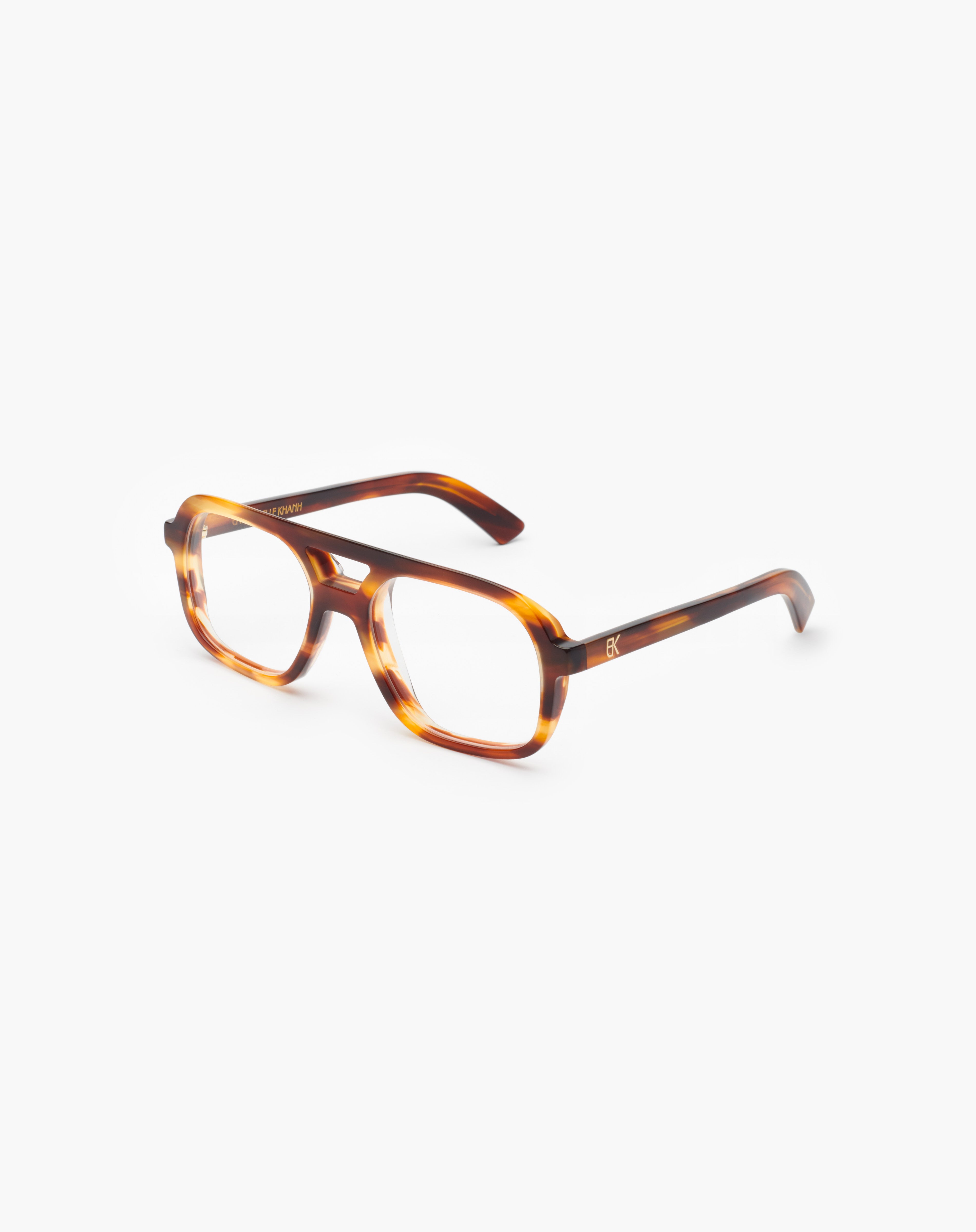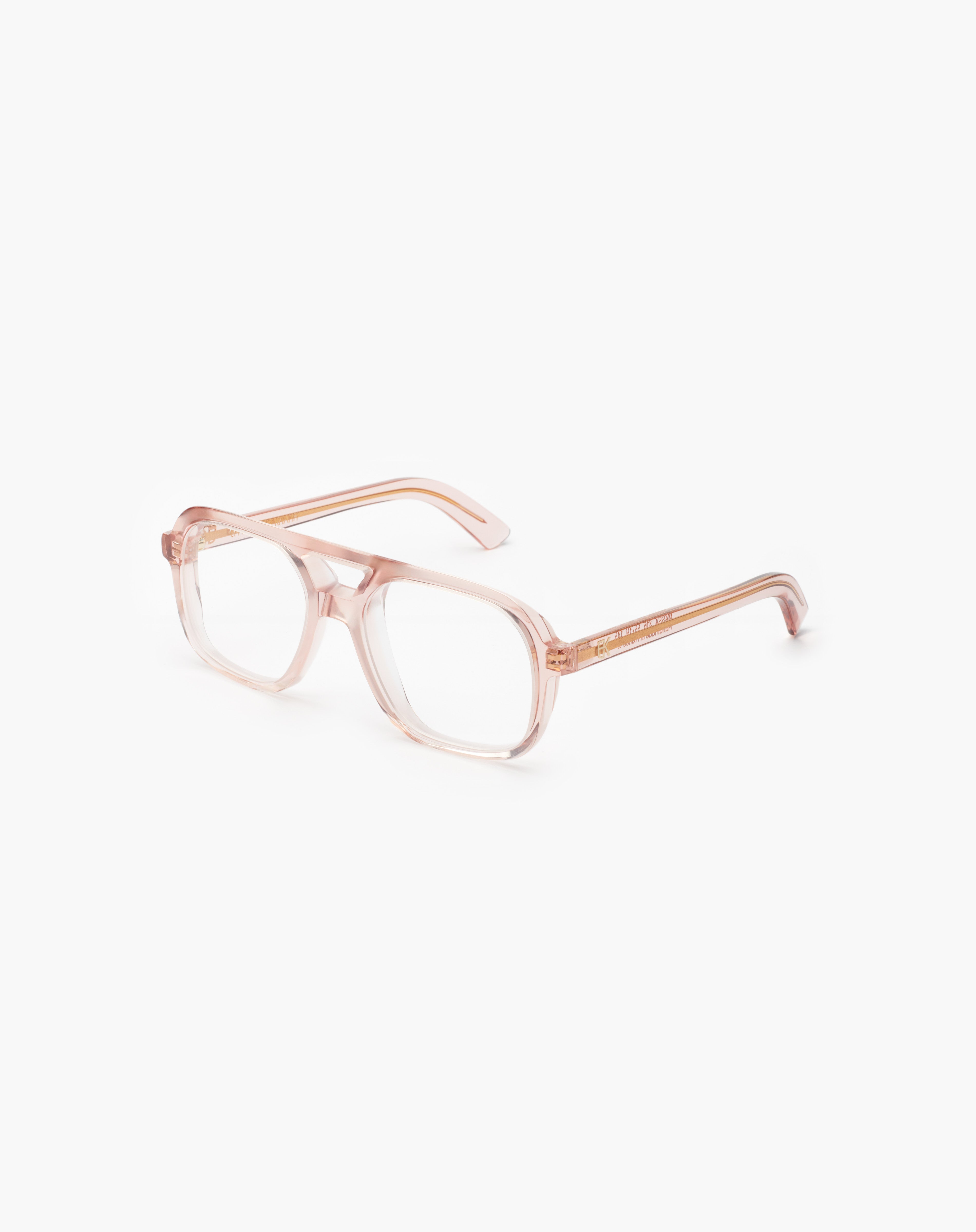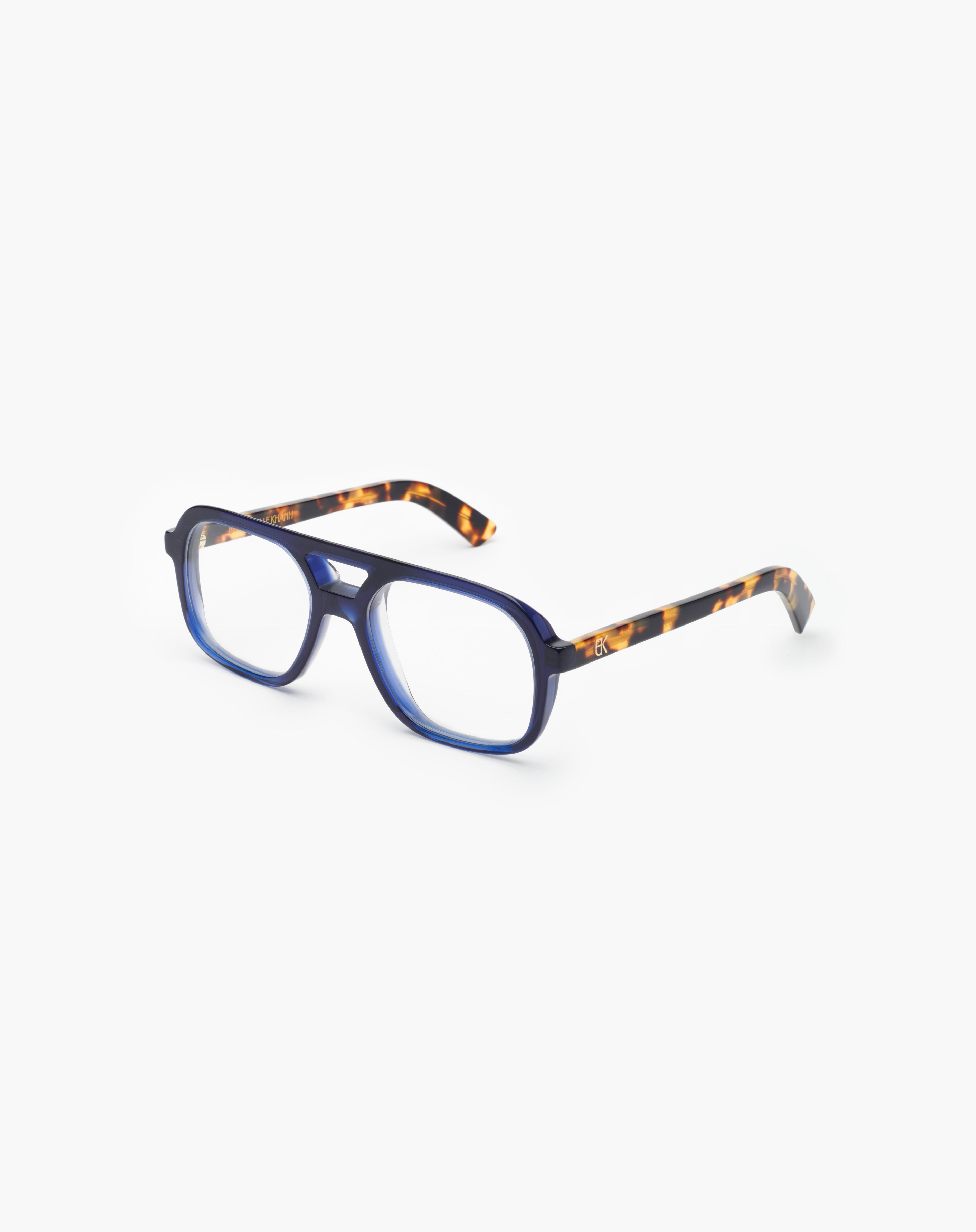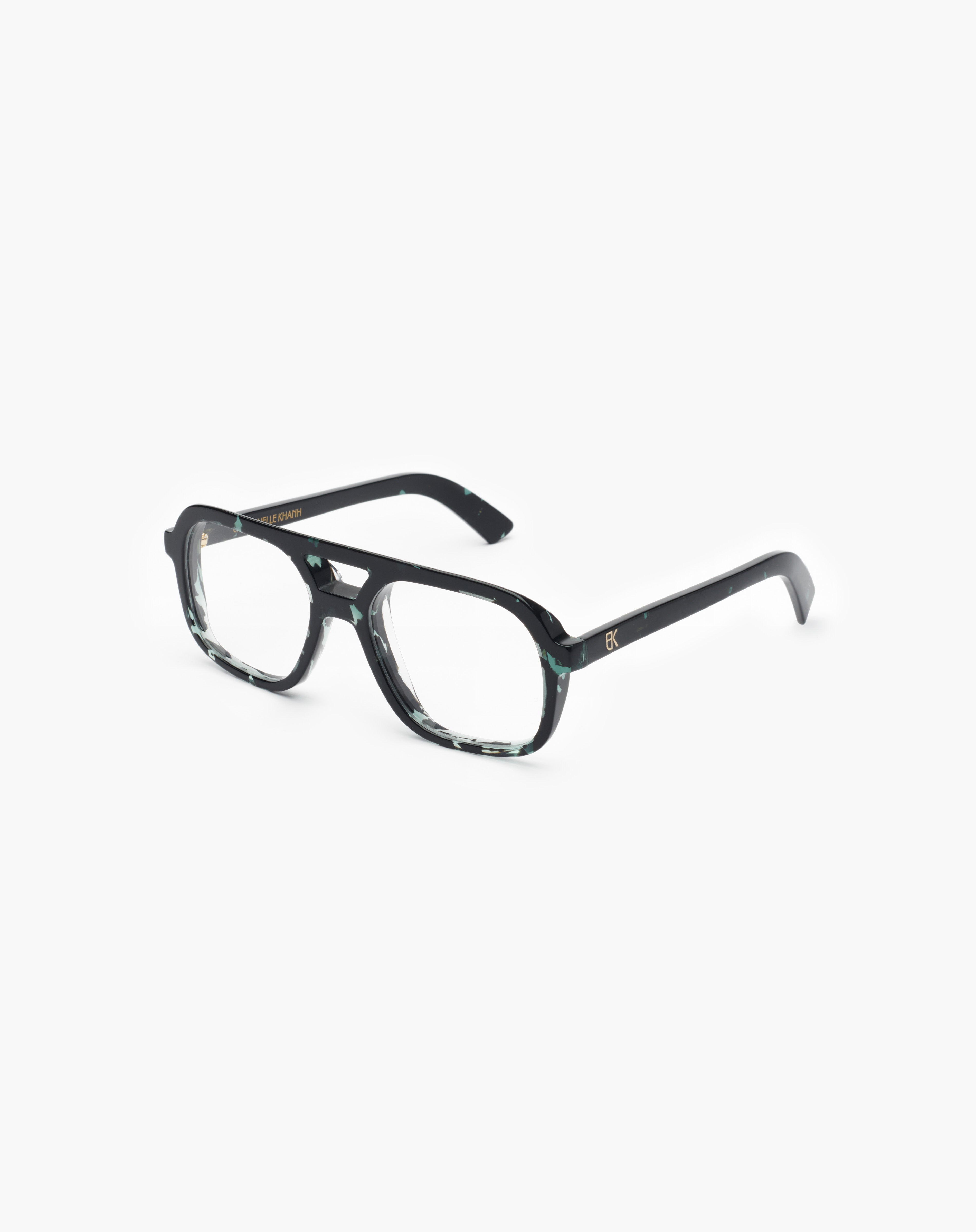 The Massa eyeglasses are crafted from acetate and handmade in France. Featuring bold beveling, the design makes a striking statement. The temples are adorned with a gold metal monogram set beneath resin, offering an elegant and iconic signature touch.