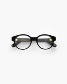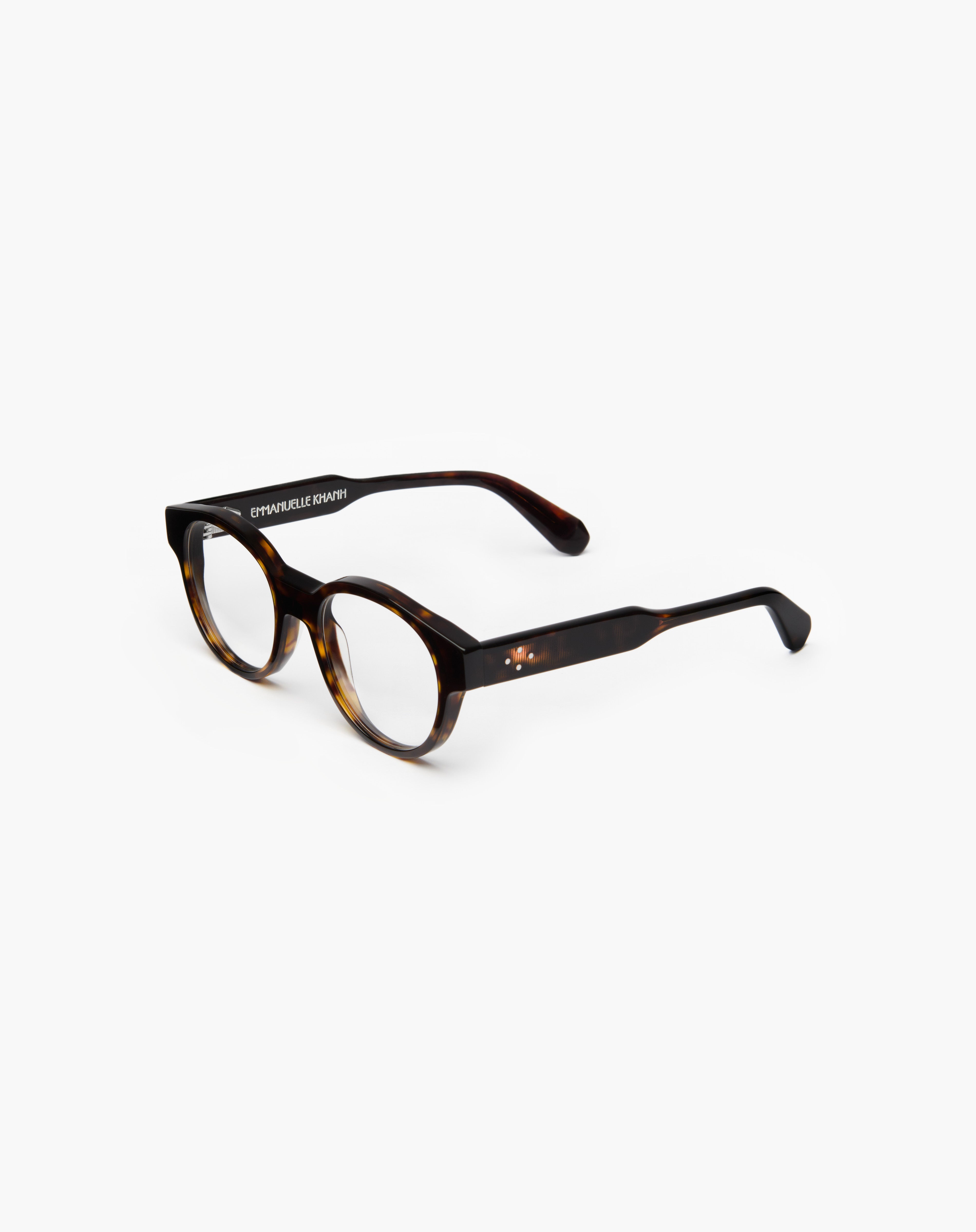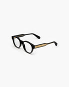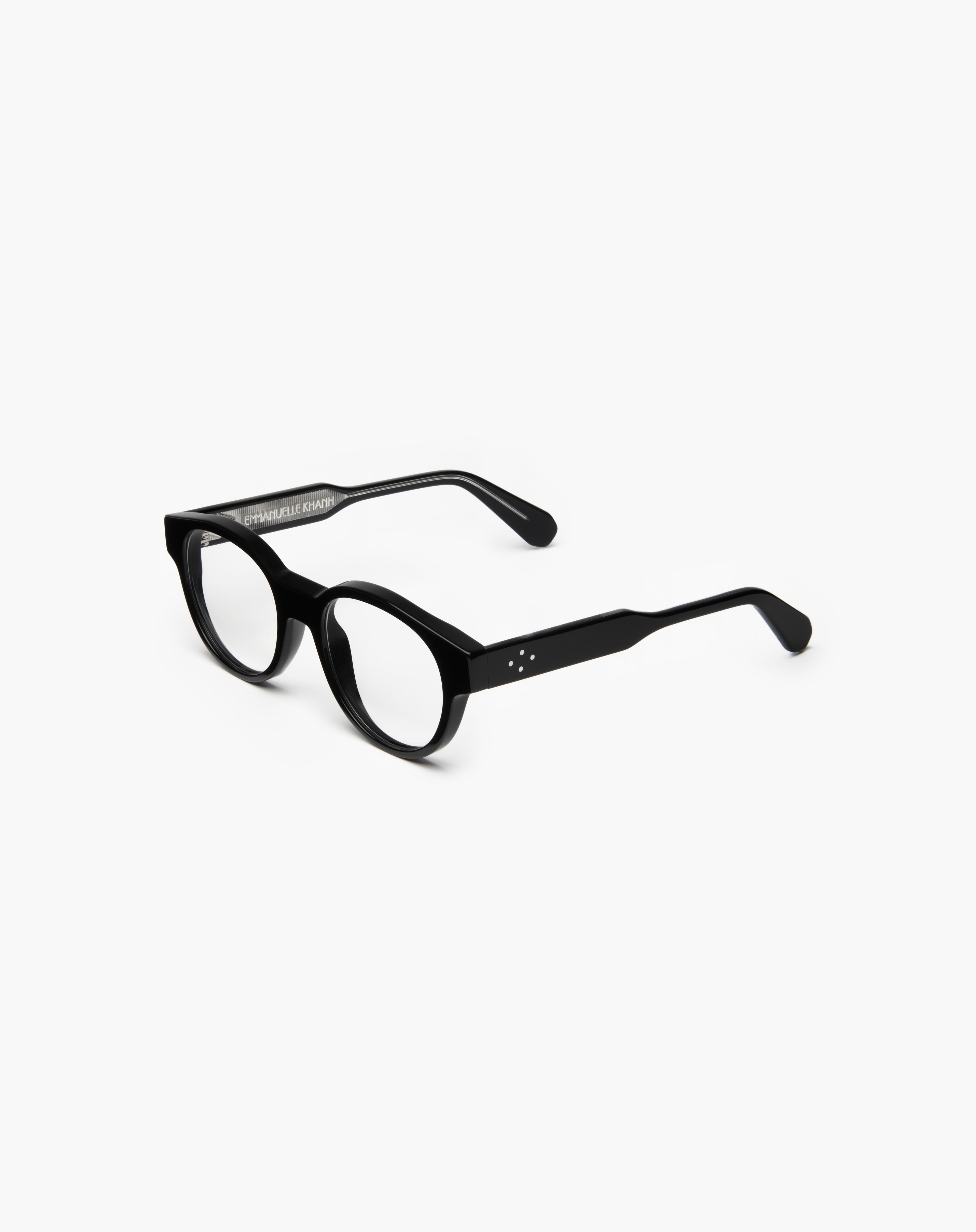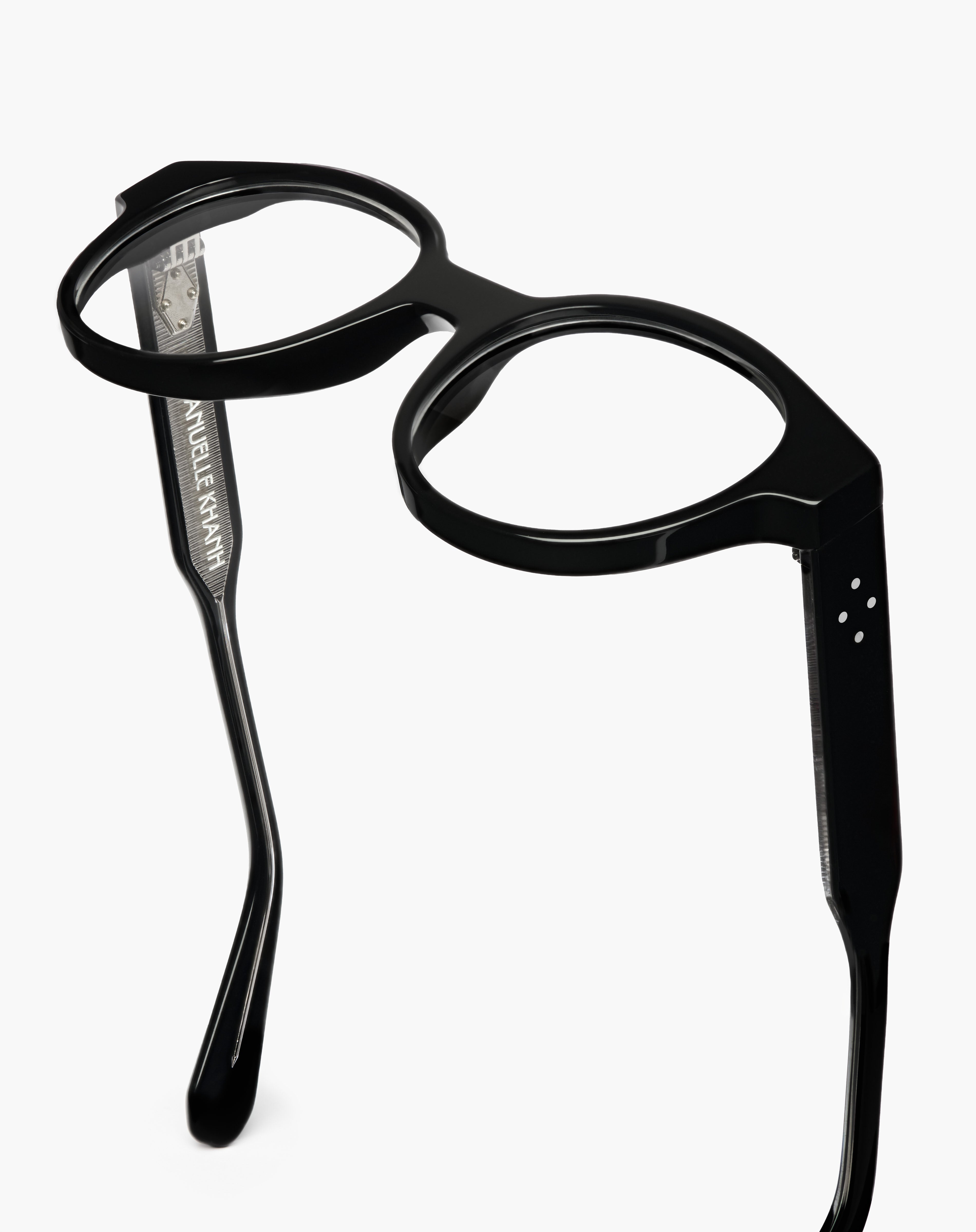 The STORM optical frame is a round acetate frame from the mens collection, handcrafted in France. With a sleek and classic finish, this frame is a staple piece with unique flair, featuring signature rivets and a forged metallic pattern along the temples.