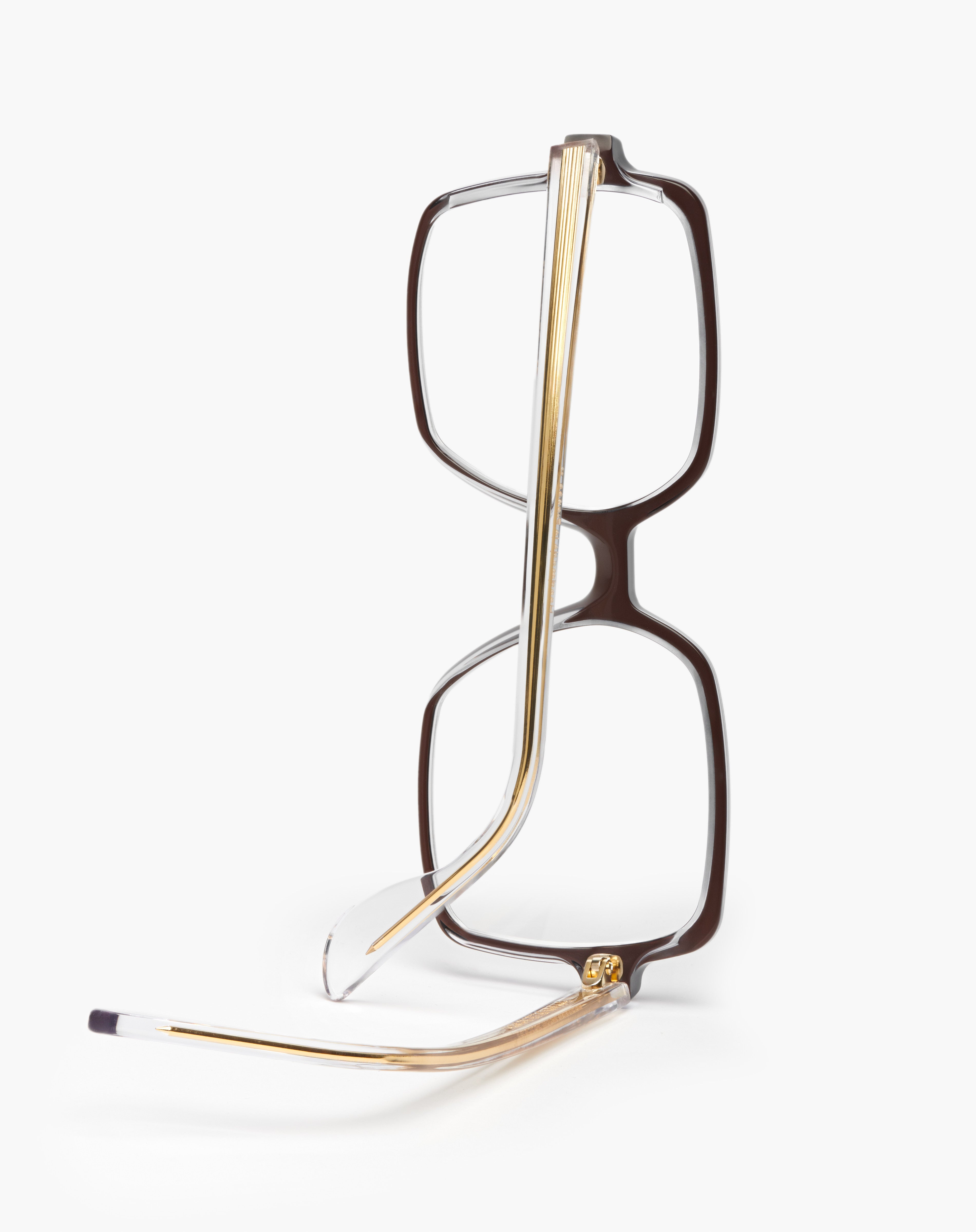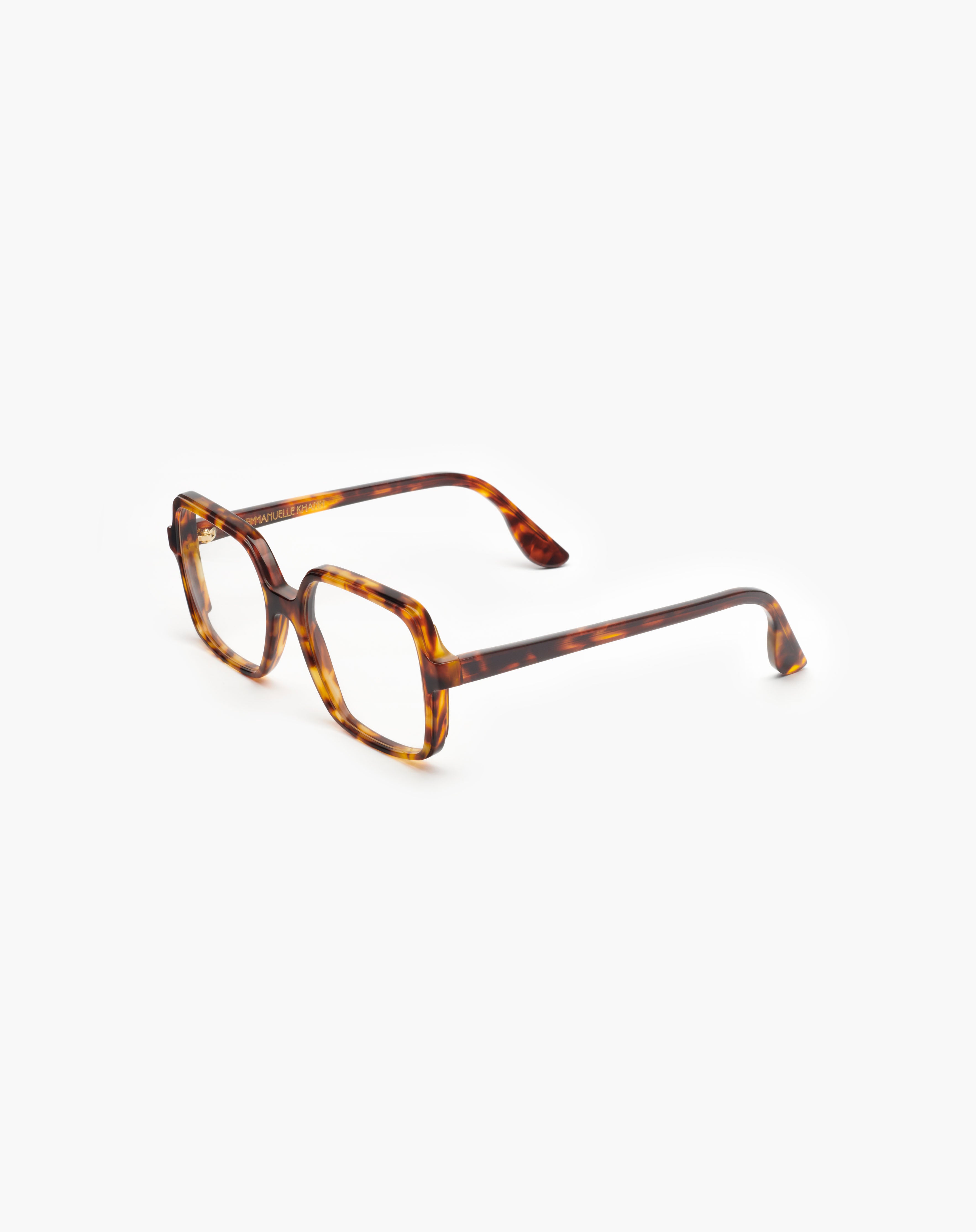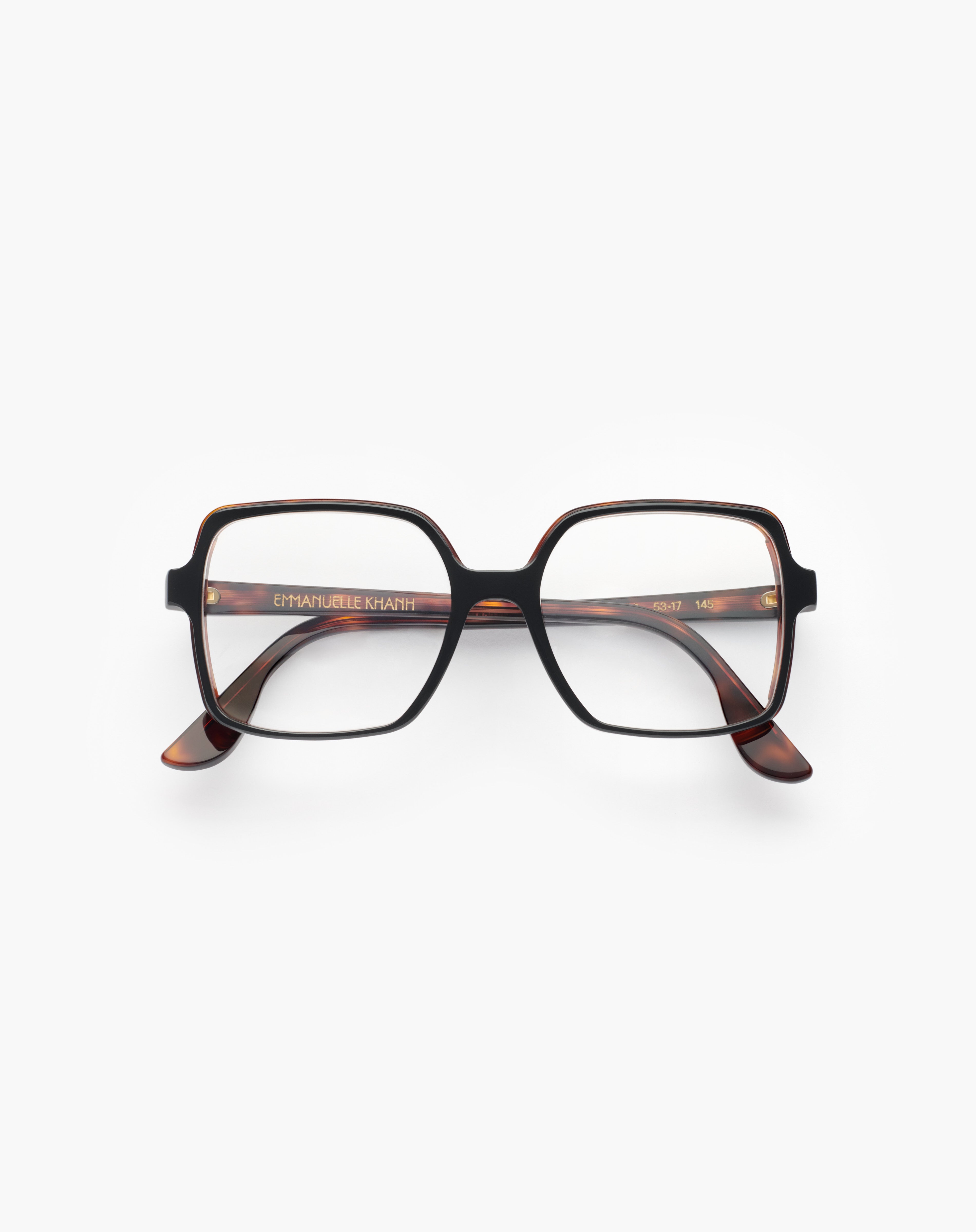 The SWEET optical frame is a square acetate frame, handcrafted in France. Delicate and elegant, these frames play with transparency and light through materials like metallic gold galvanized temples, tinted crystals, and tortoiseshell.