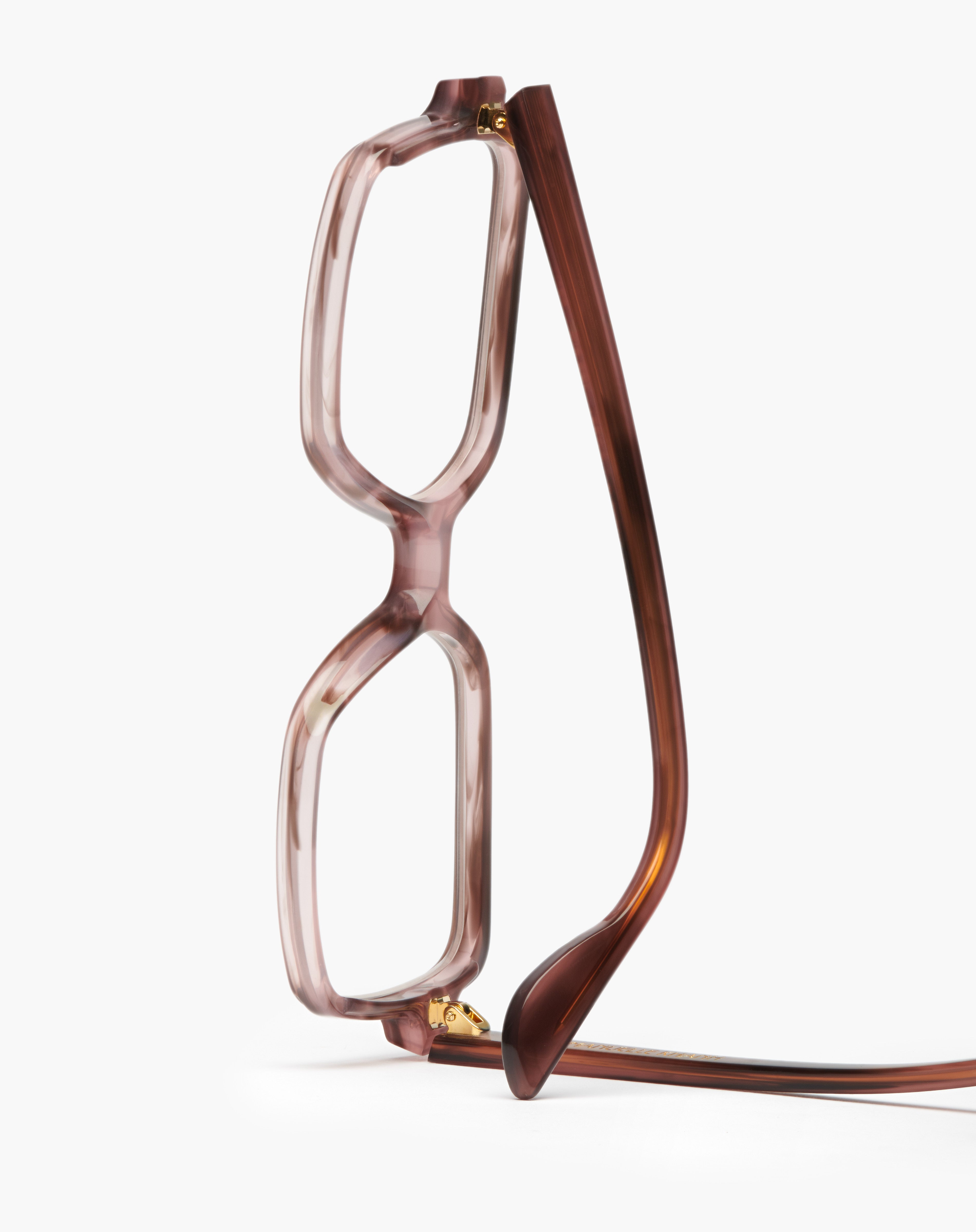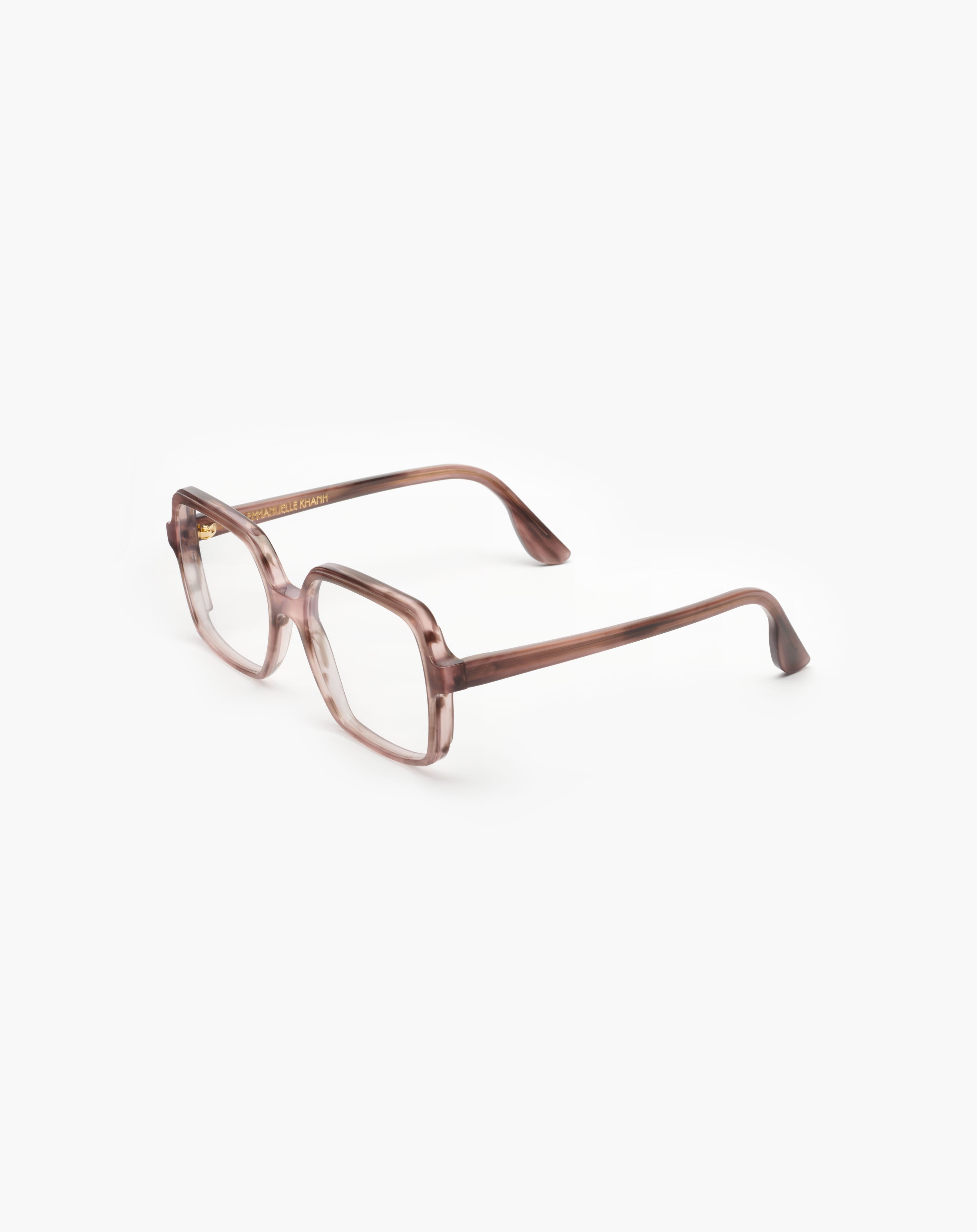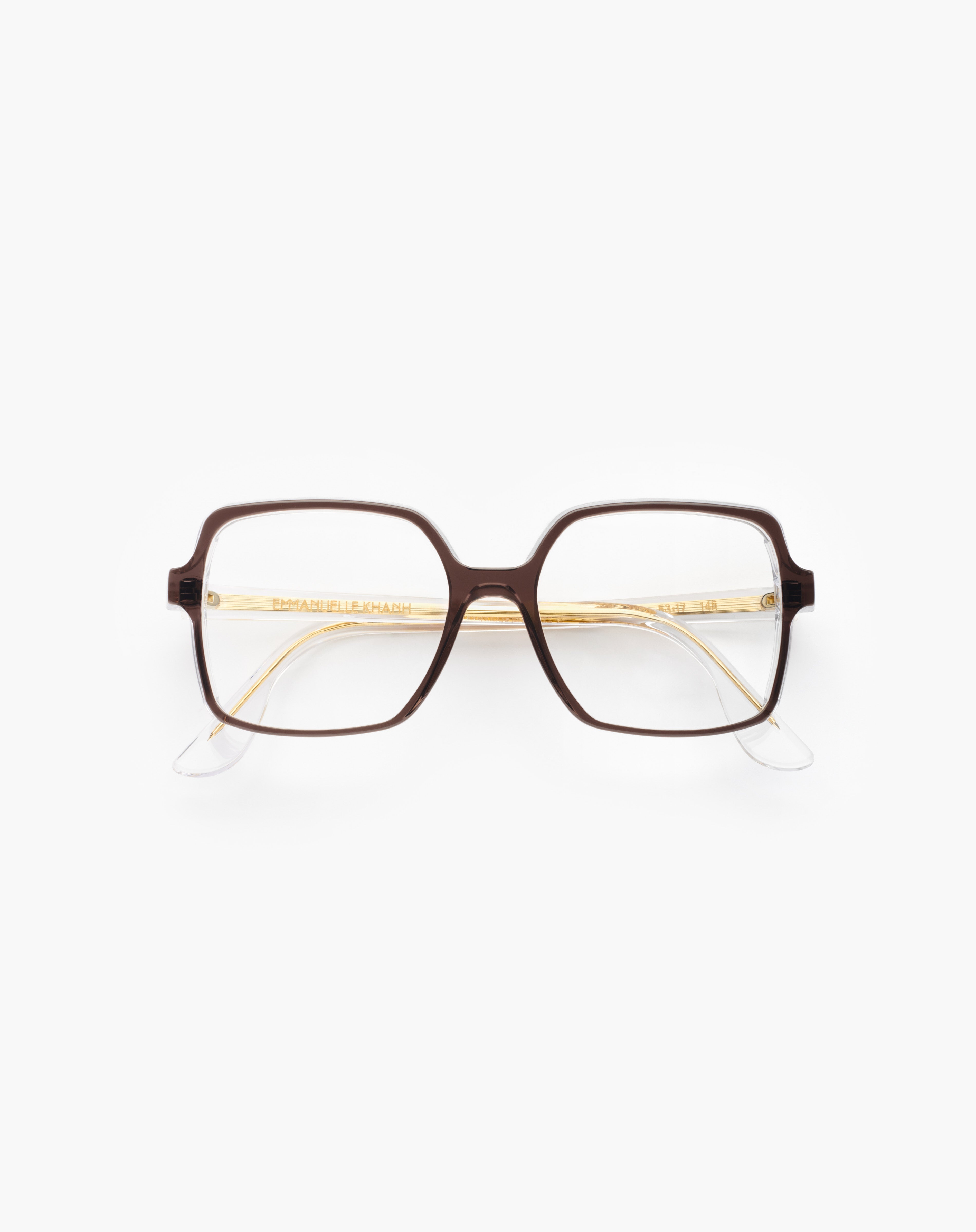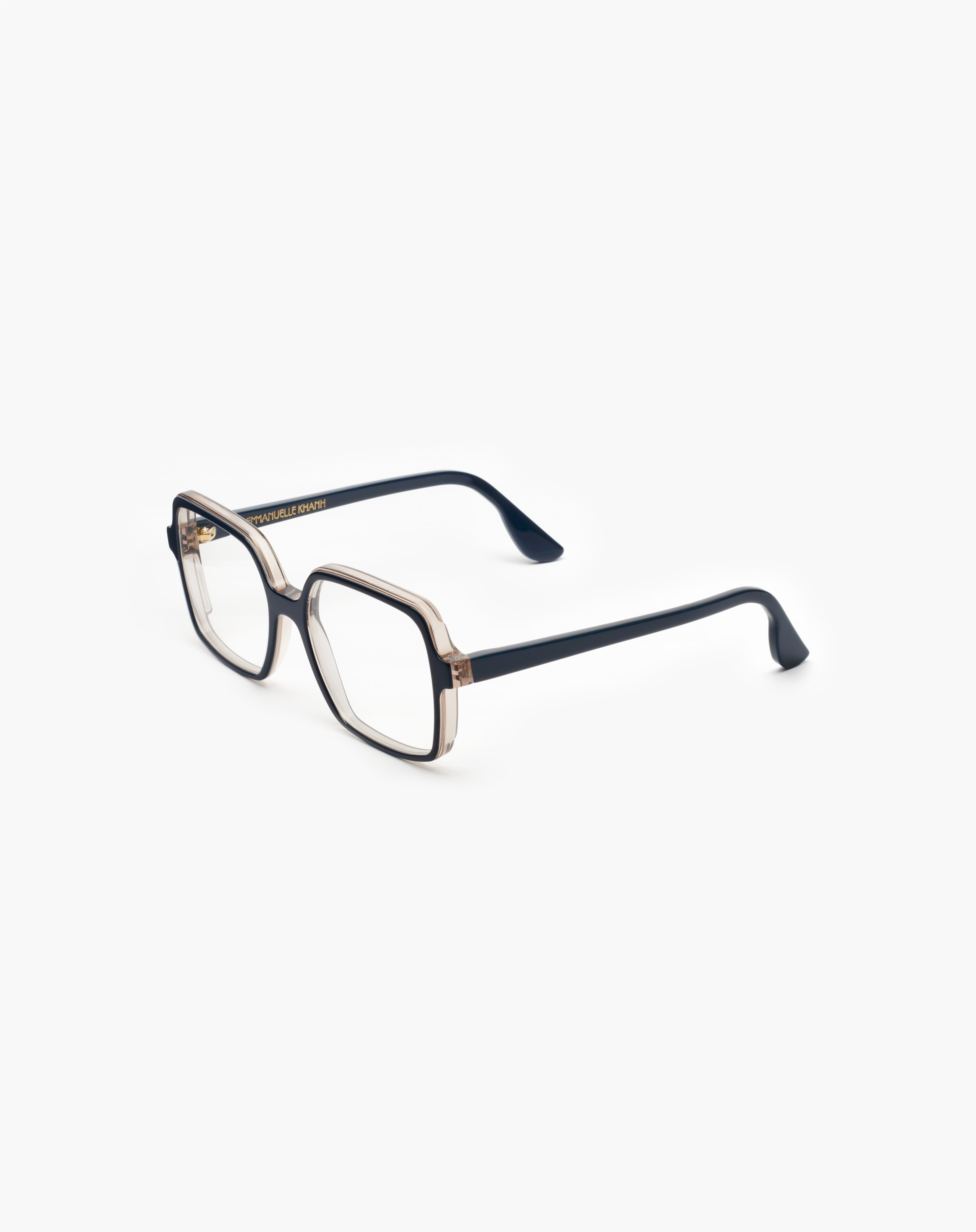 The SWEET optical frame is a square acetate frame, handcrafted in France. Delicate and elegant, these frames play with transparency and light through materials like metallic gold galvanized temples, tinted crystals, and tortoiseshell.