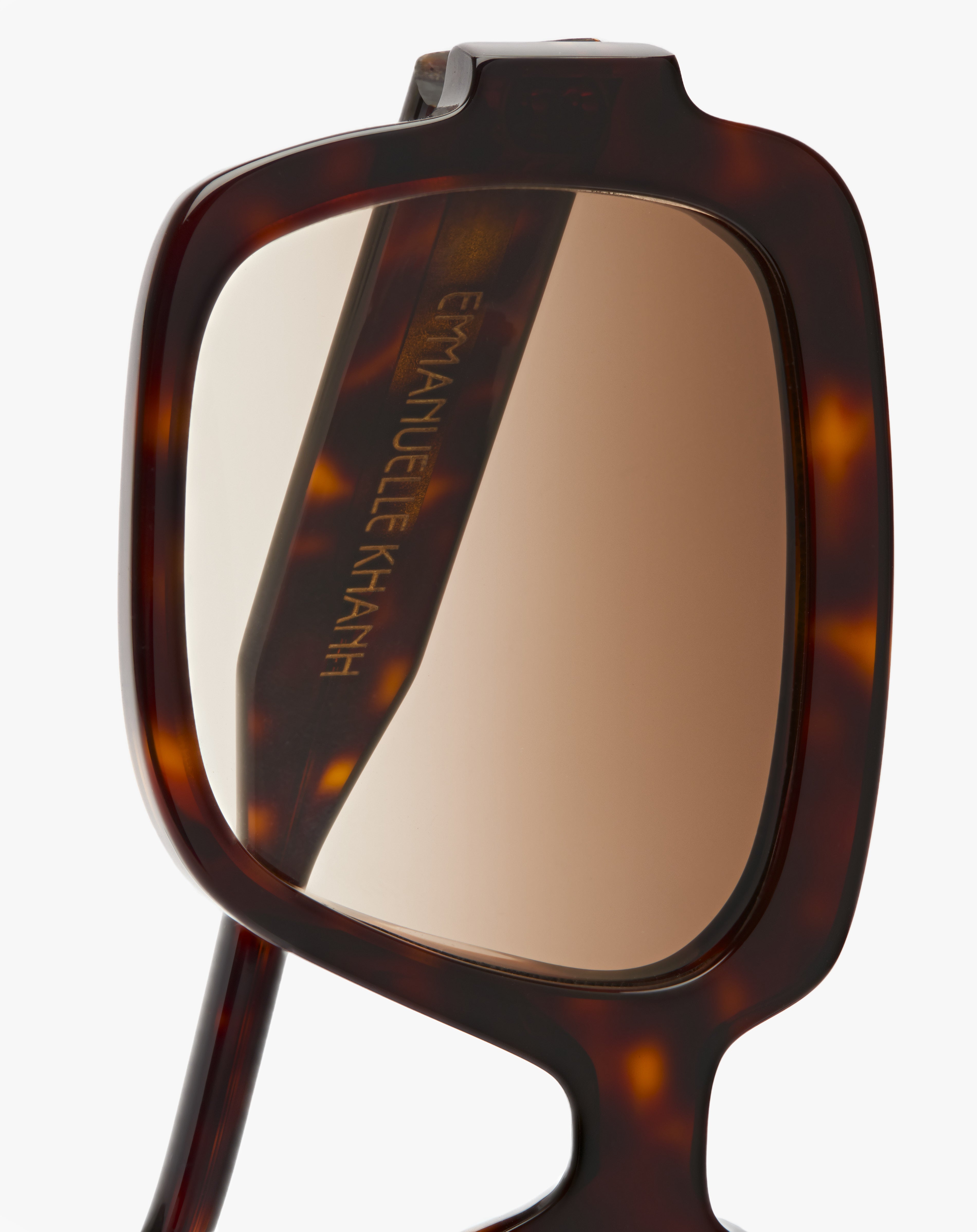 Créatives Line Rectangular acetate frame, handmade in France with an authentic eyewear know-how. Monogram logo piece in gilded metal placed under resin. Acetates and lenses are made in France or Italy, depending on the colour.
