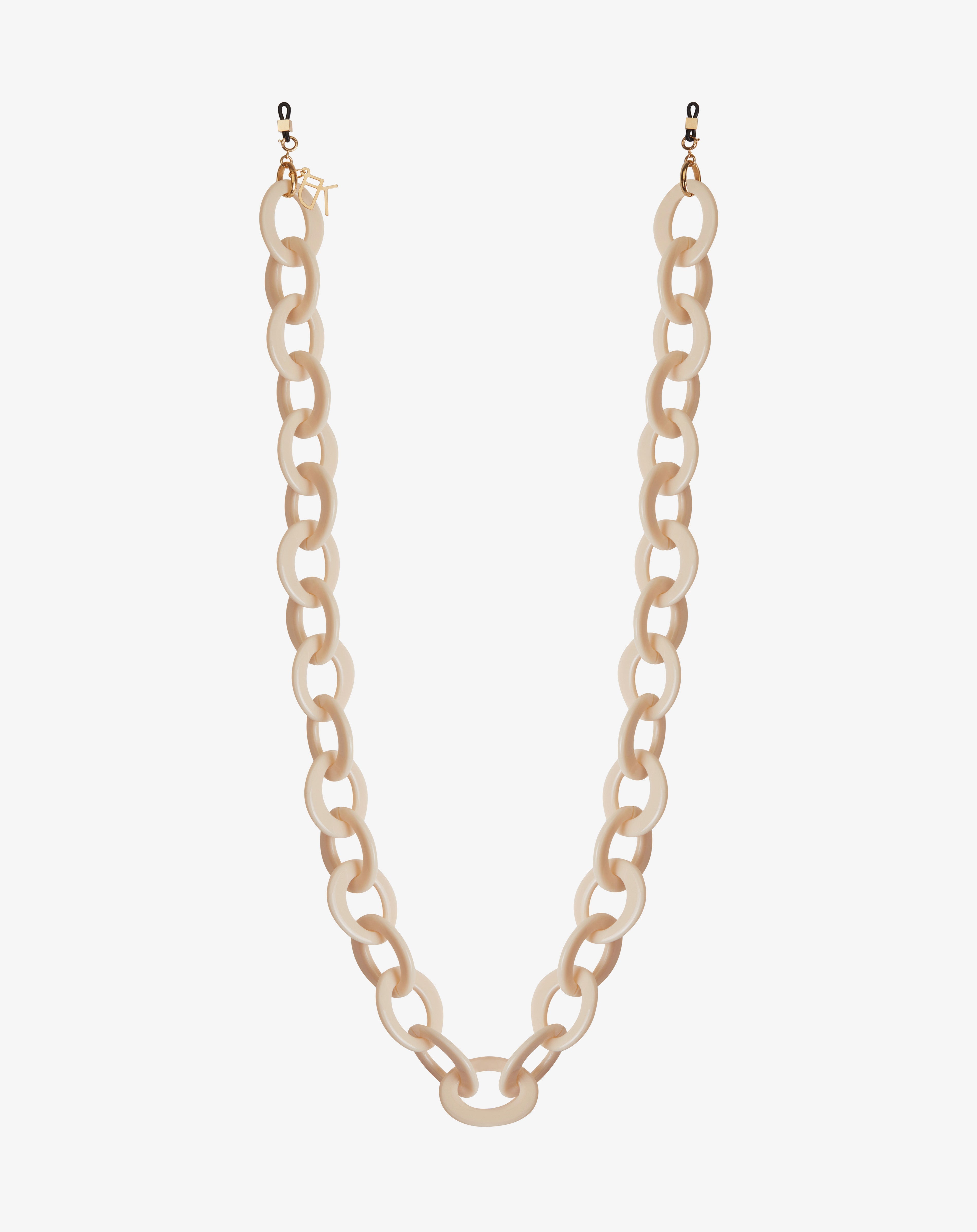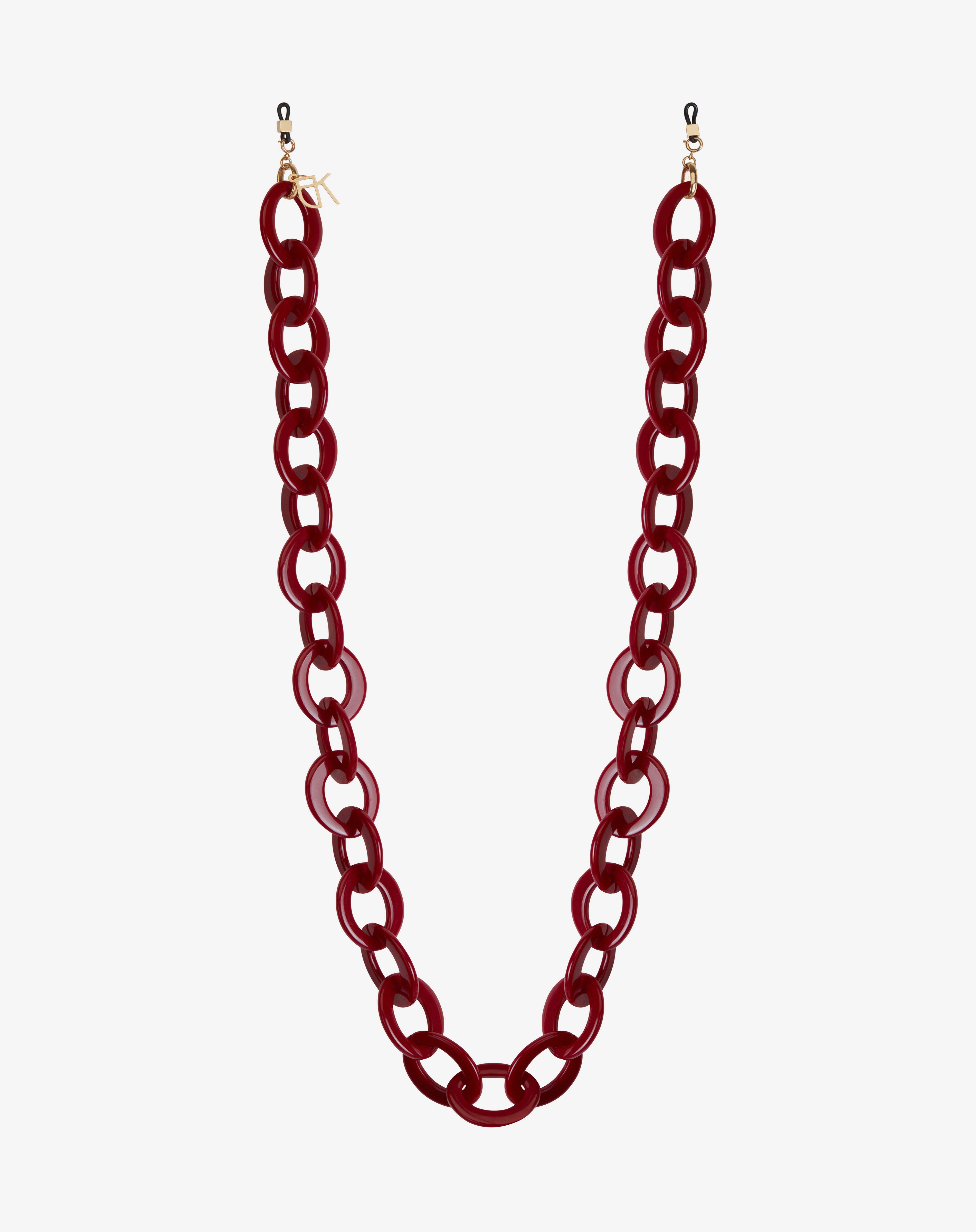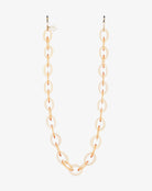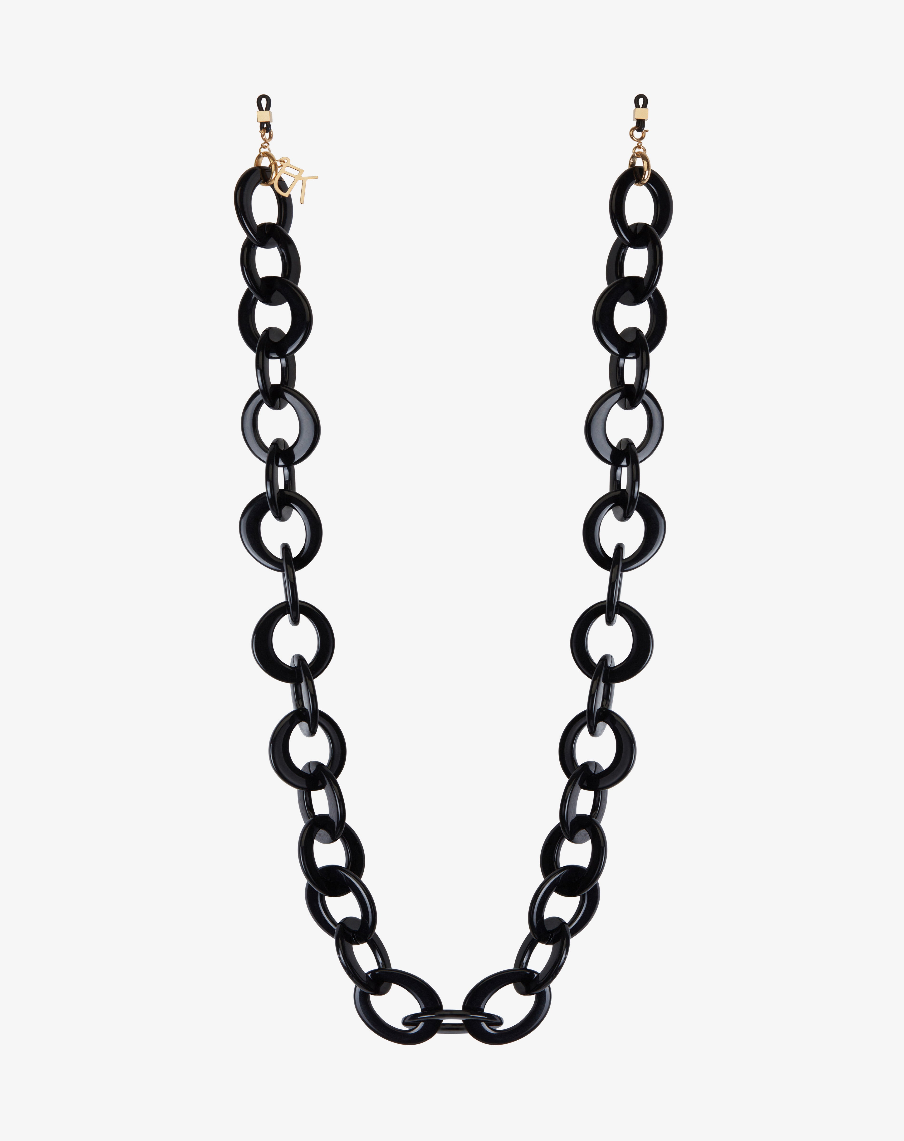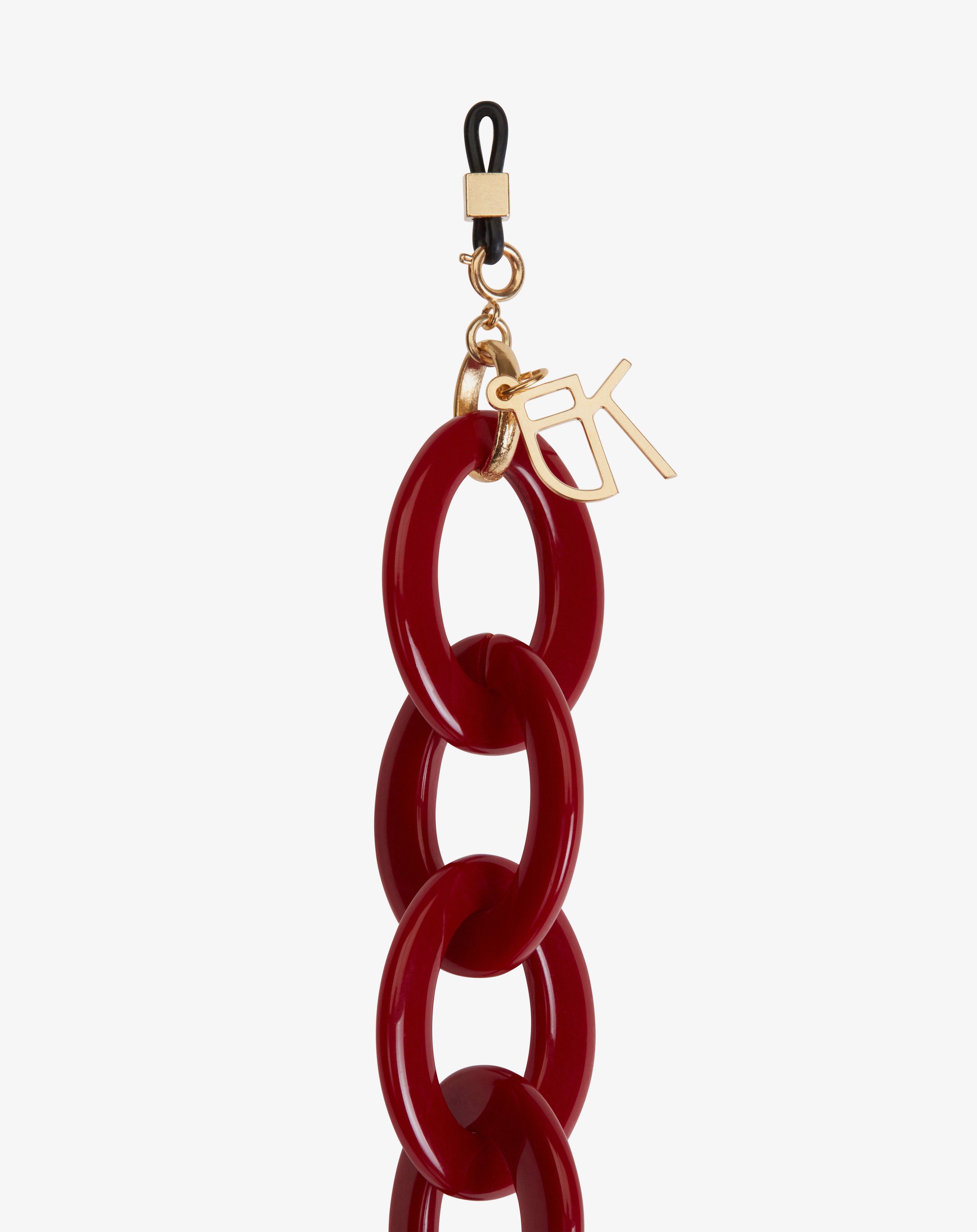 Emmanuelle Khanh imagine une chaînette inédite et généreuse. Une chaînette précieuse, aux couleurs intemporelles et pleines. L'Ovale allie les volumes de l'acrylique à la finesse du laiton doré à l'or fin. Décorée du logo iconique de la Maison, elle crée immédiatement un look fort, mode, audacieux. Longueur de la chaînette : 95 cm. Dessinée en France et fabriquée main en Italie.