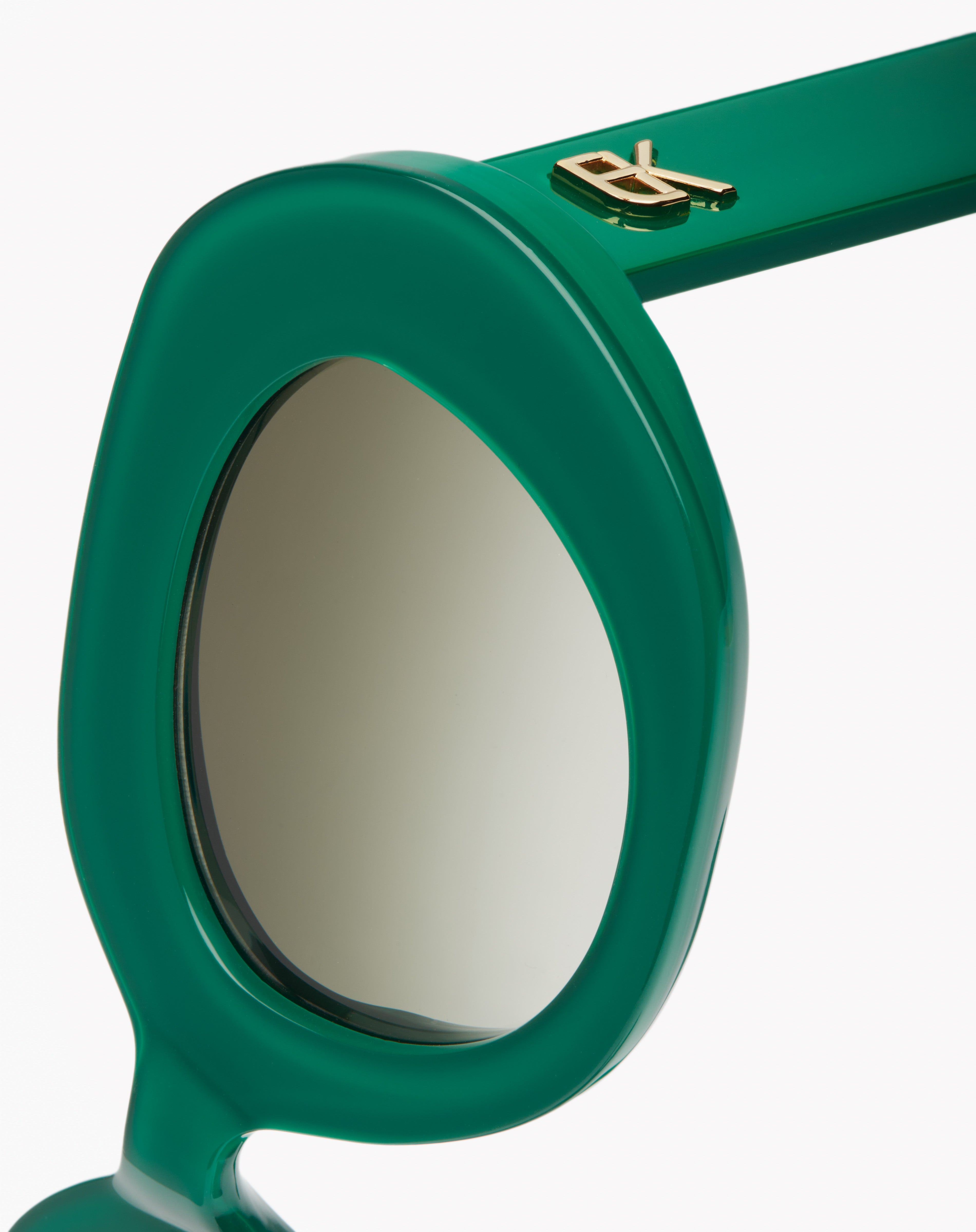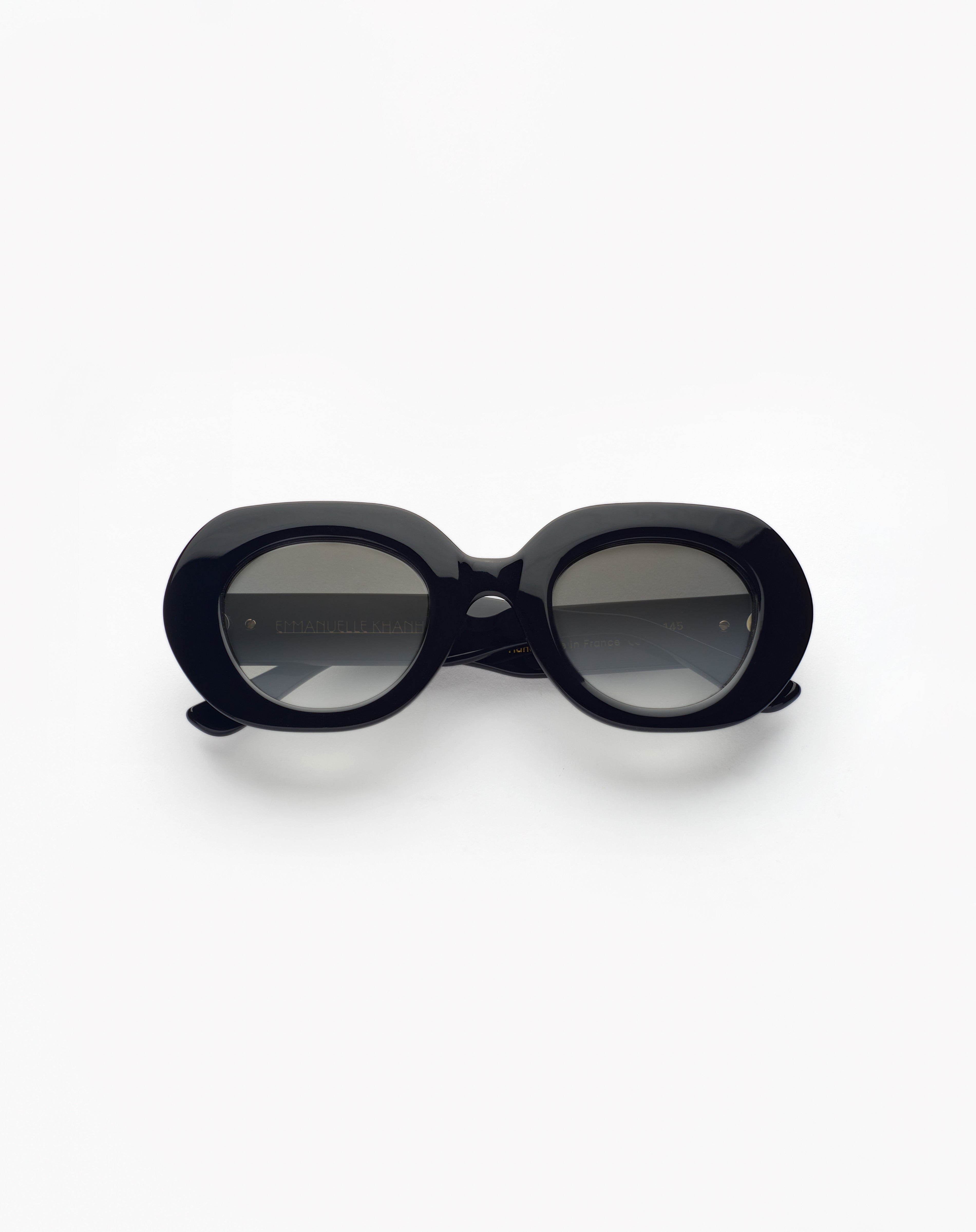 Monture en acétate ovale, fabriquée main en France d'un savoir-faire lunetier authentique. Ligne Initiales Pièce logo monogramme 3D small plaquée or 18 carats. Les acétates et les verres sont fabriqués en France ou en Italie, selon le coloris.