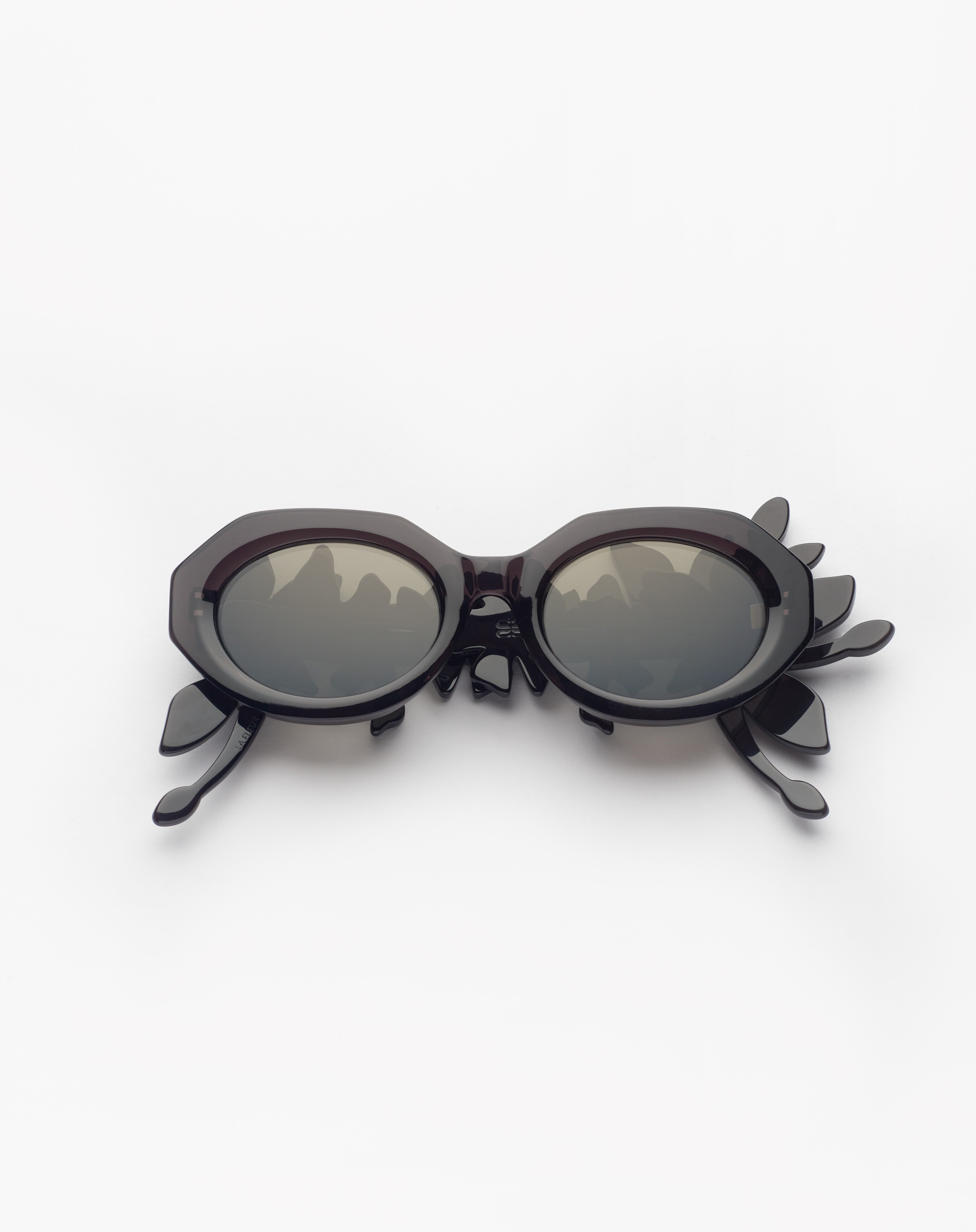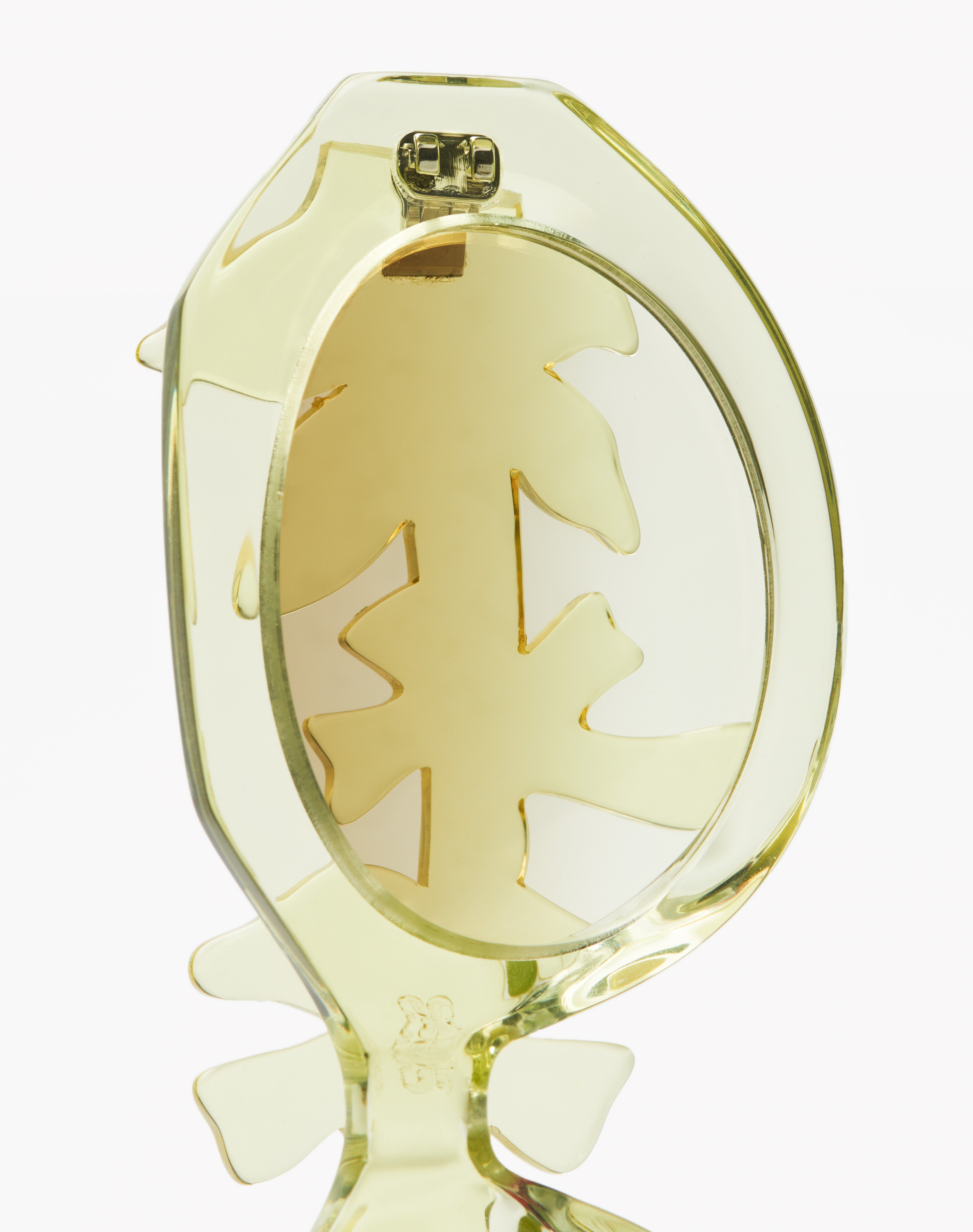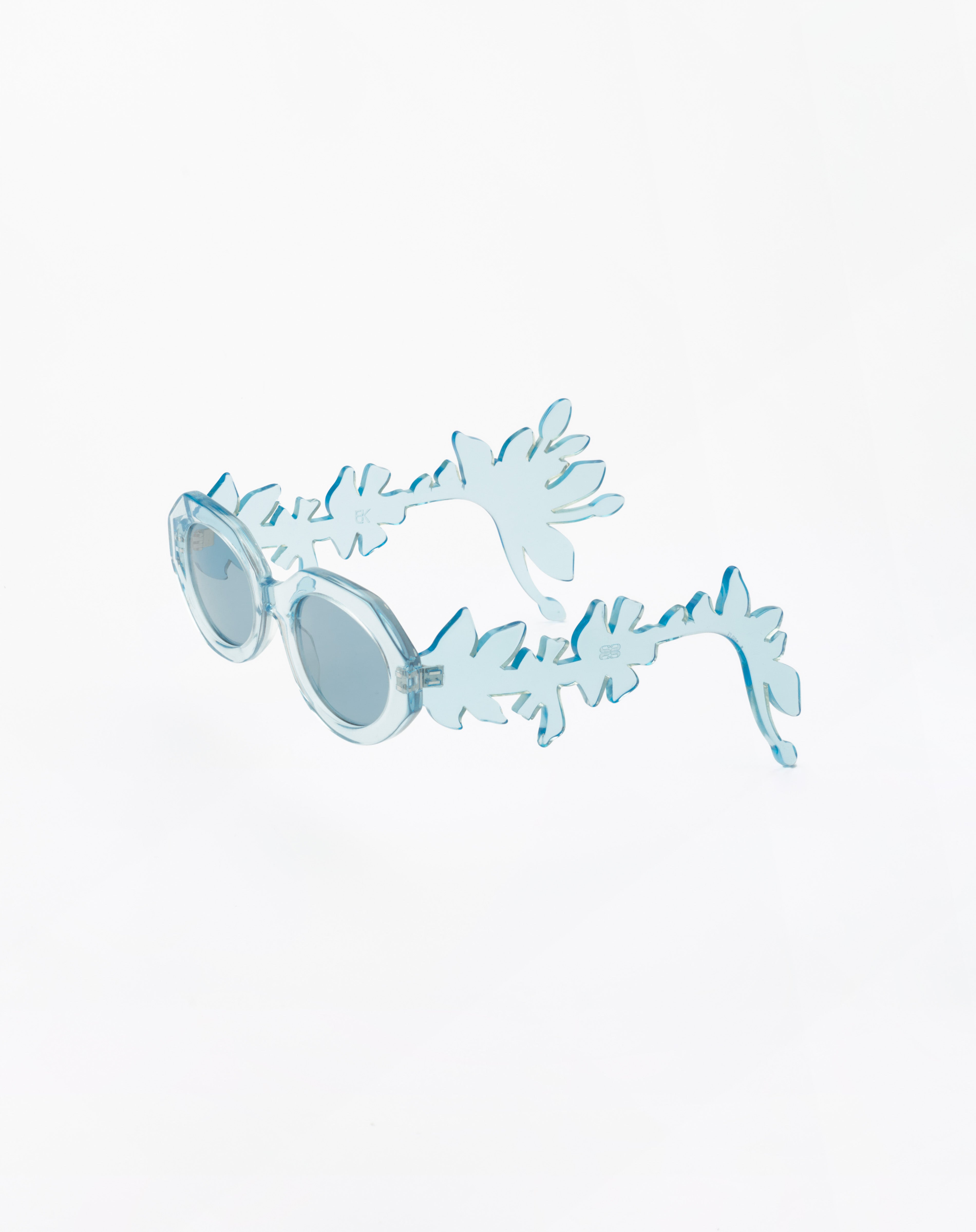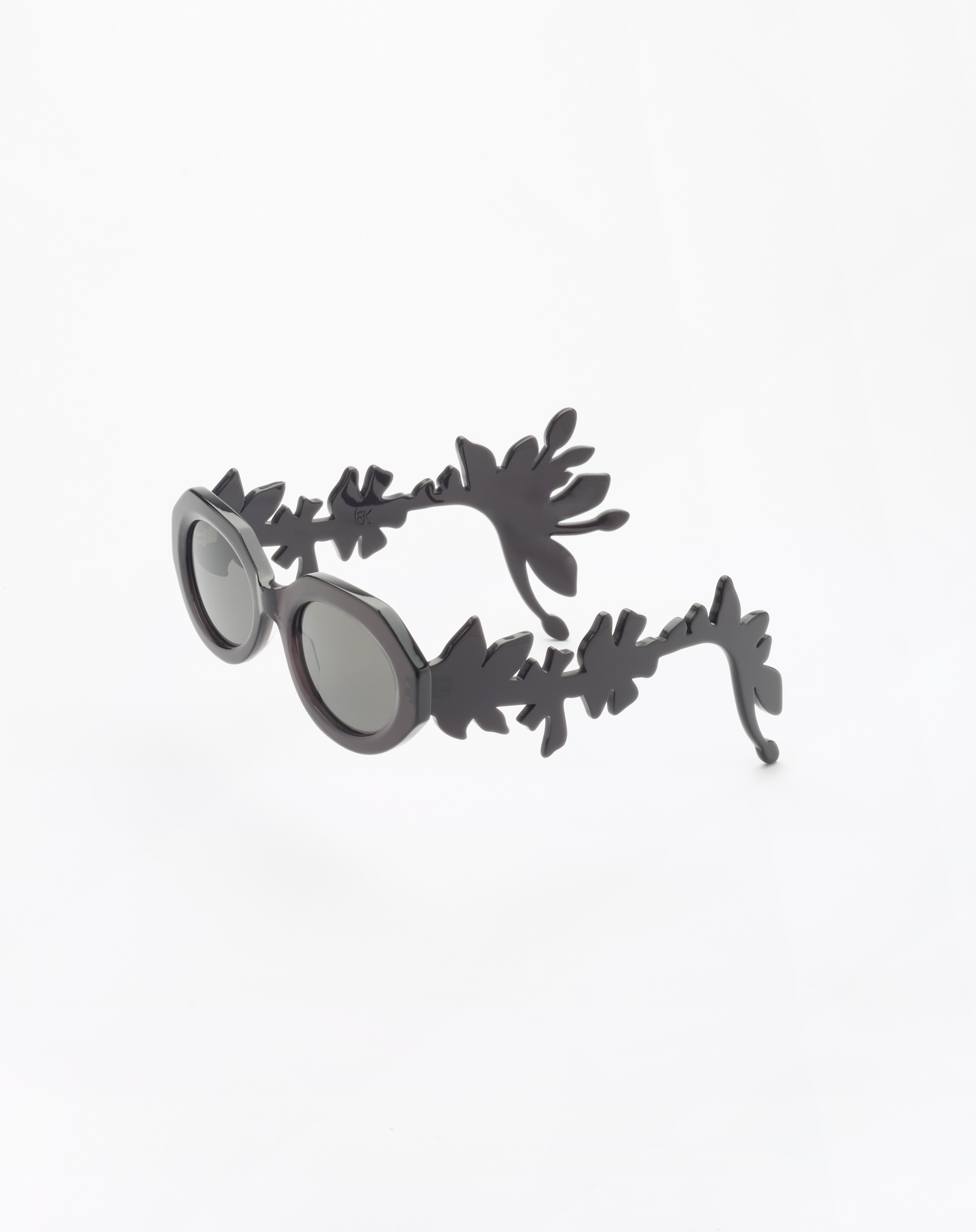 Monture en acétate ovale, fabriquée main en France d'un savoir-faire lunetier authentique. Collaboration Emmanuelle Khanh x Maitrepierre Branches Fleur asymétriques gravées des monogrammes des deux Maisons. Les acétates et les verres sont fabriqués en France ou en Italie, selon le coloris.