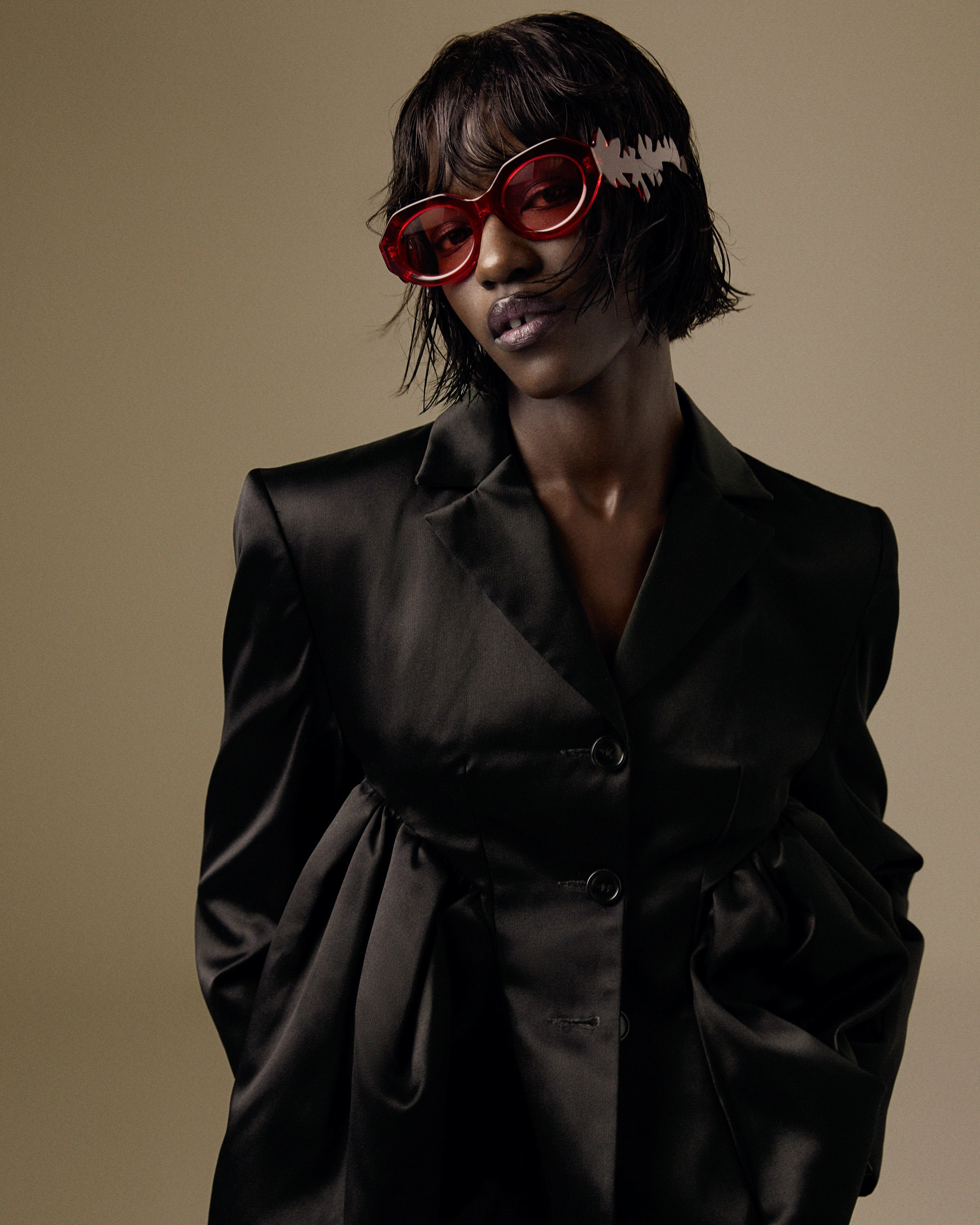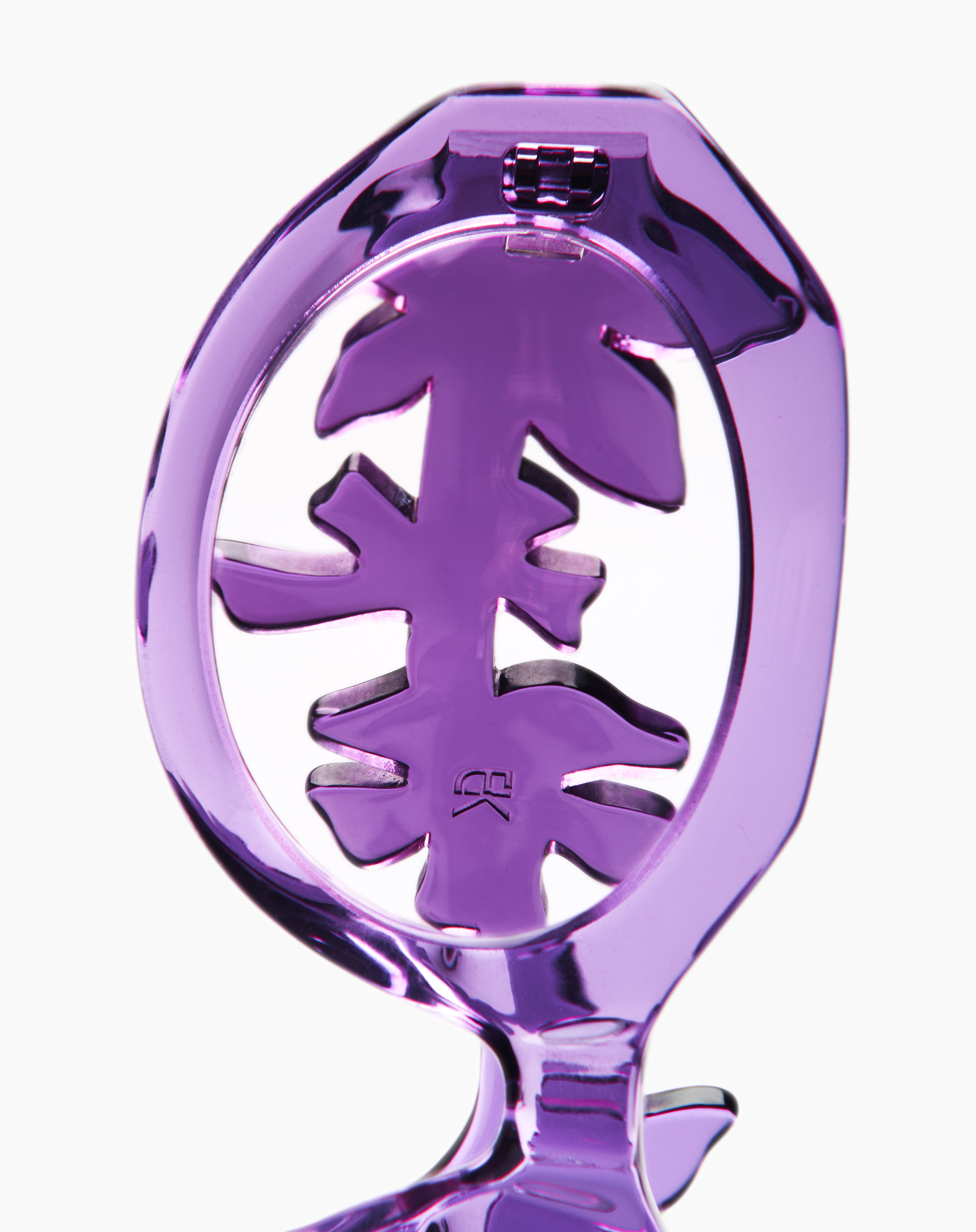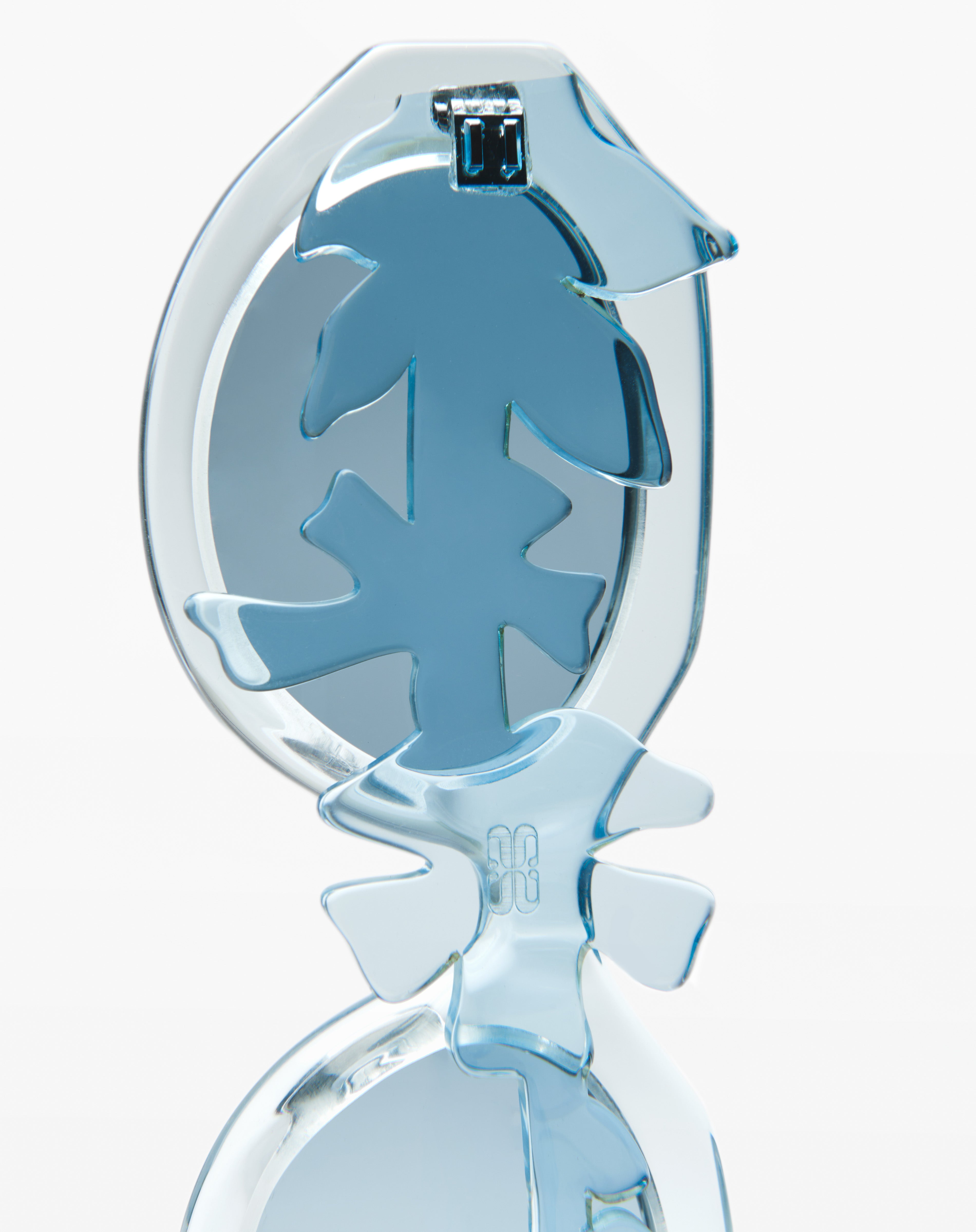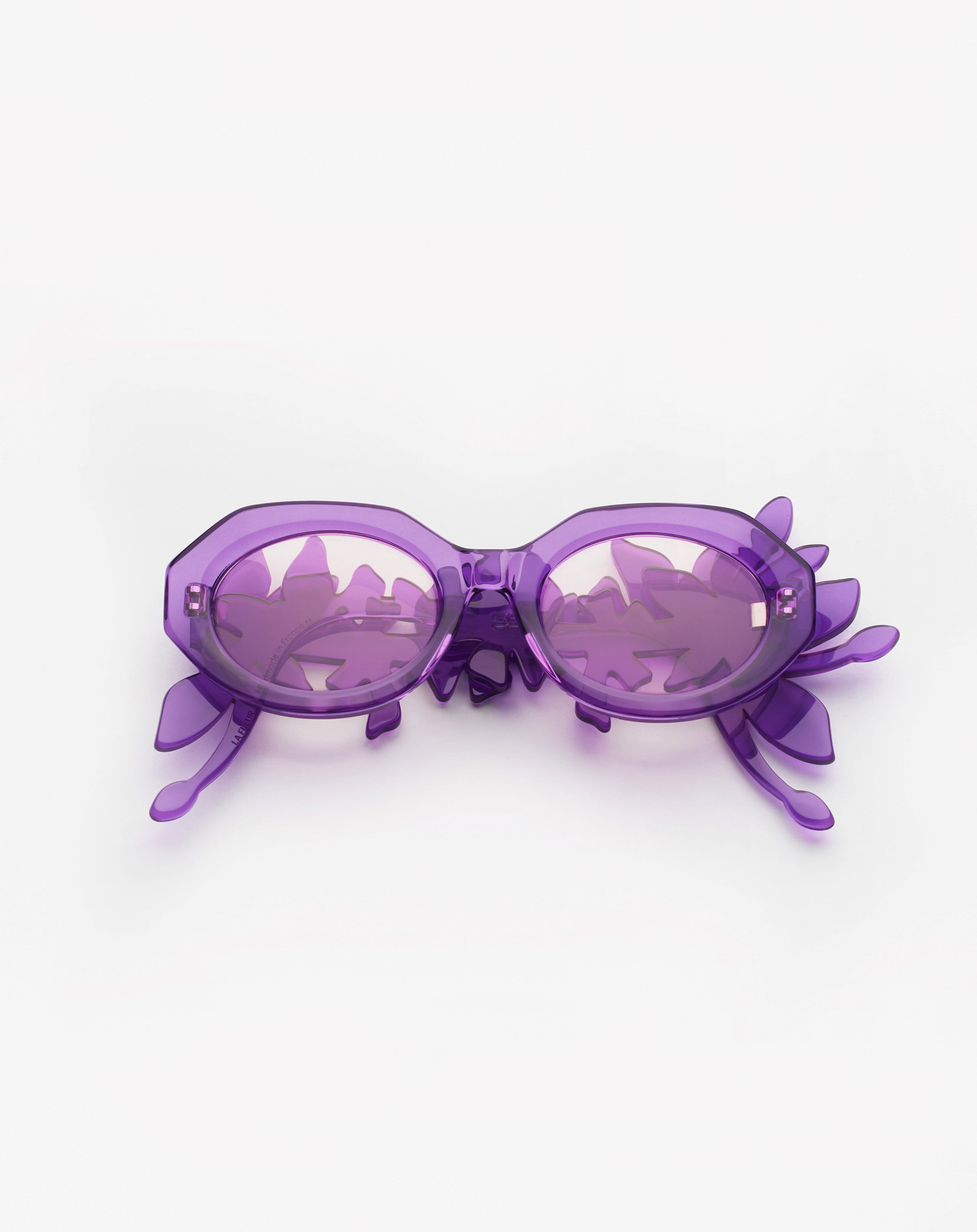 Monture en acétate ovale, fabriquée main en France d'un savoir-faire lunetier authentique. Collaboration Emmanuelle Khanh x Maitrepierre Branches Fleur asymétriques gravées des monogrammes des deux Maisons. Les acétates et les verres sont fabriqués en France ou en Italie, selon le coloris.