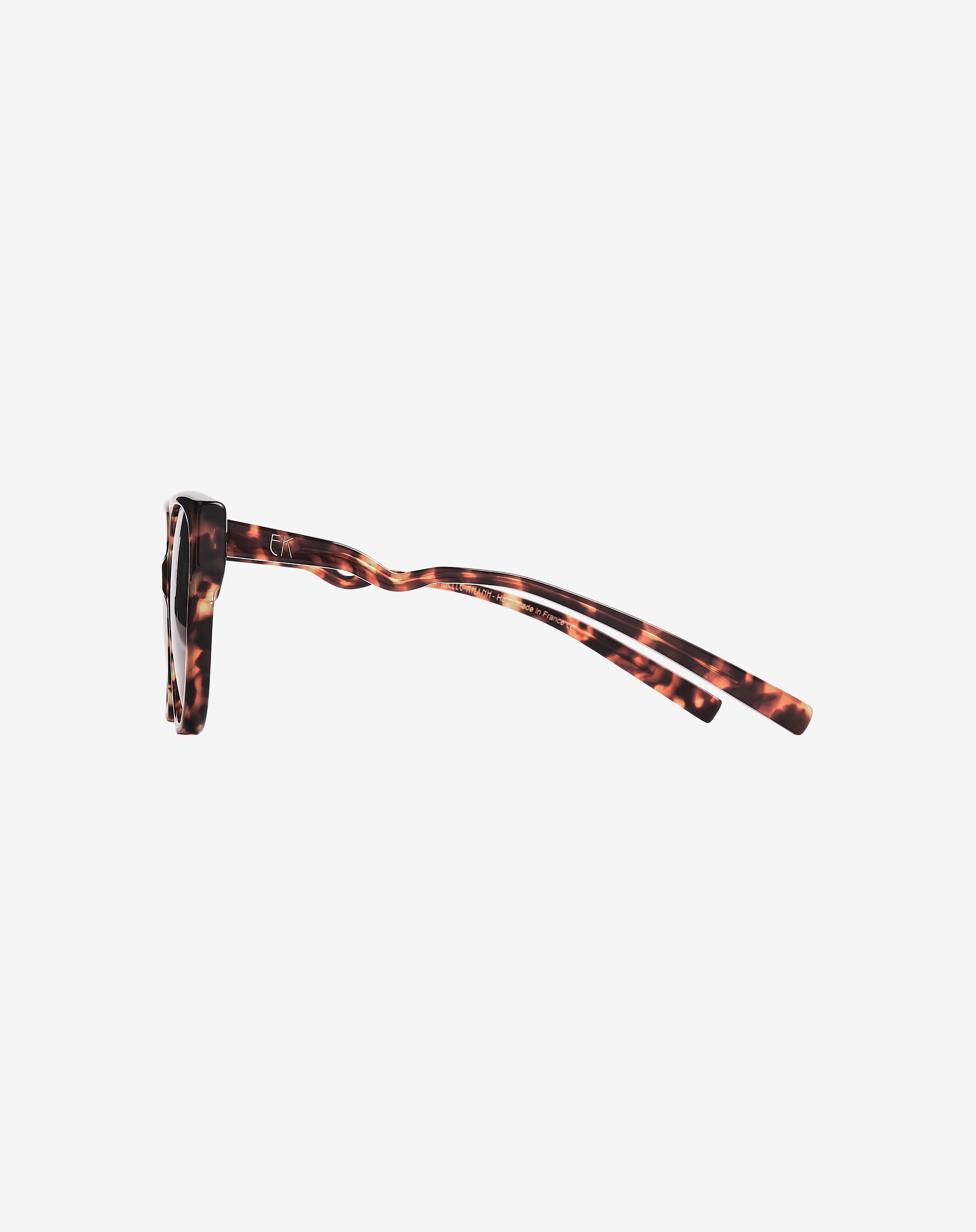 Ligne Signature - Monture en acétate carrée, fabriquée main en France d'un savoir-faire lunetier authentique. Pièce logo monogramme en métal doré posé sous résine. Les acétates et les verres sont fabriqués en France ou en Italie, selon le coloris.